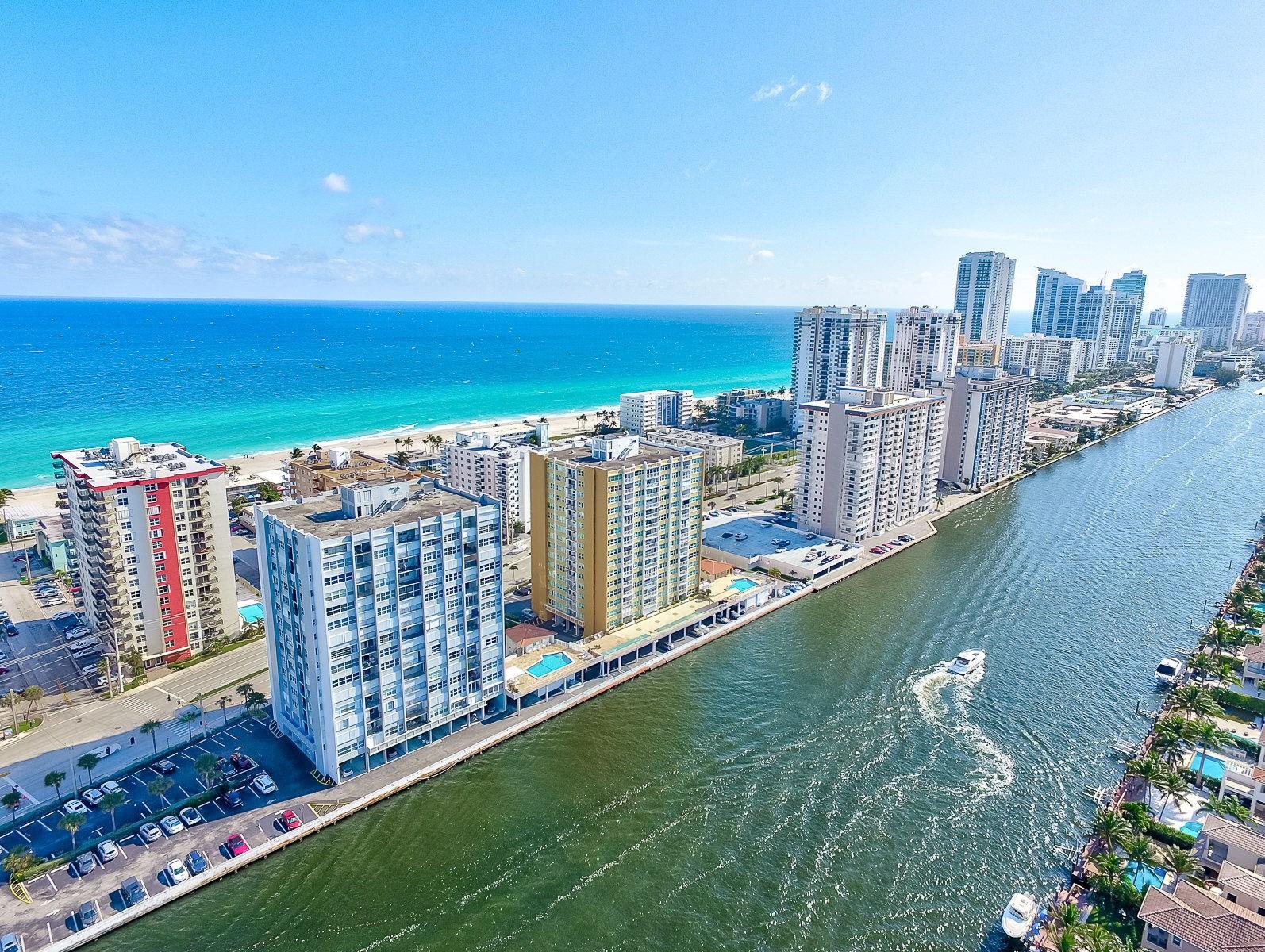 HUGE REDUCTION! Incredible opportunity in the heart of Hollywood Beach! This spacious unit sits directly on the Intracoastal, with endless water views in this terrific building with only 8 units per floor and ready for the new owner to make it their own. Desirable location close to the renowned Hollywood Boardwalk, easy access to the airport, surrounded by restaraunts and a short distance directly to beach. The building is undergoing their 50 year re-certification and repairs, so will be done for the next owner. The building provides a small excercise room, community room and sauna. Monthly maint fee includes the cable charge. Refer to attachements for important documents. Knowing new owner will need a full renovation, OWNERS HAVE PRICED THIS TO SELL!