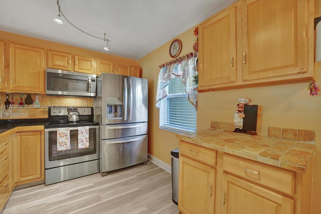 Motivated seller! Remodeled, new furniture. 2 miles to the ocean. Comfort & elegance greet you as you walk in the door. Open kitchen has wood cabinets, granite counters & stainless steel appliances. All impact windows & doors. New flooring throughout, brand new furniture can be included, freshly painted, lots of closet space, walk-in showers, crown molding, pocket doors. Parking right at your doorstep. Walking path to pool & BBQ. Short walk to Publix grocery store, banks, shopping. Close to beaches/Dania Jai-Alai/casinos/malls/golf/tennis/pickleball/air & sea ports/Downtown Hollywood/Las olas. Monthly maintenance $475. One owner/resident must be 55 or older, per condo rules. Own 3 years to lease. 40 year inspection complete. Close to Broadwalk. NO ASSESSMENTS PLANNED FOR 2026!