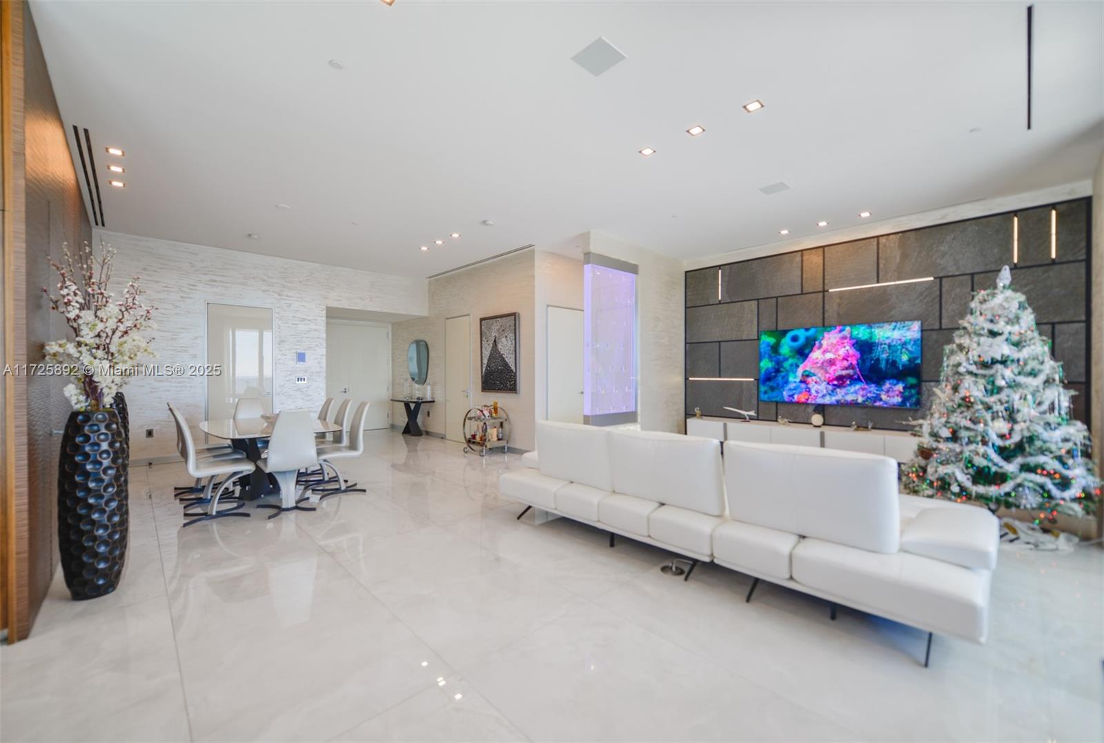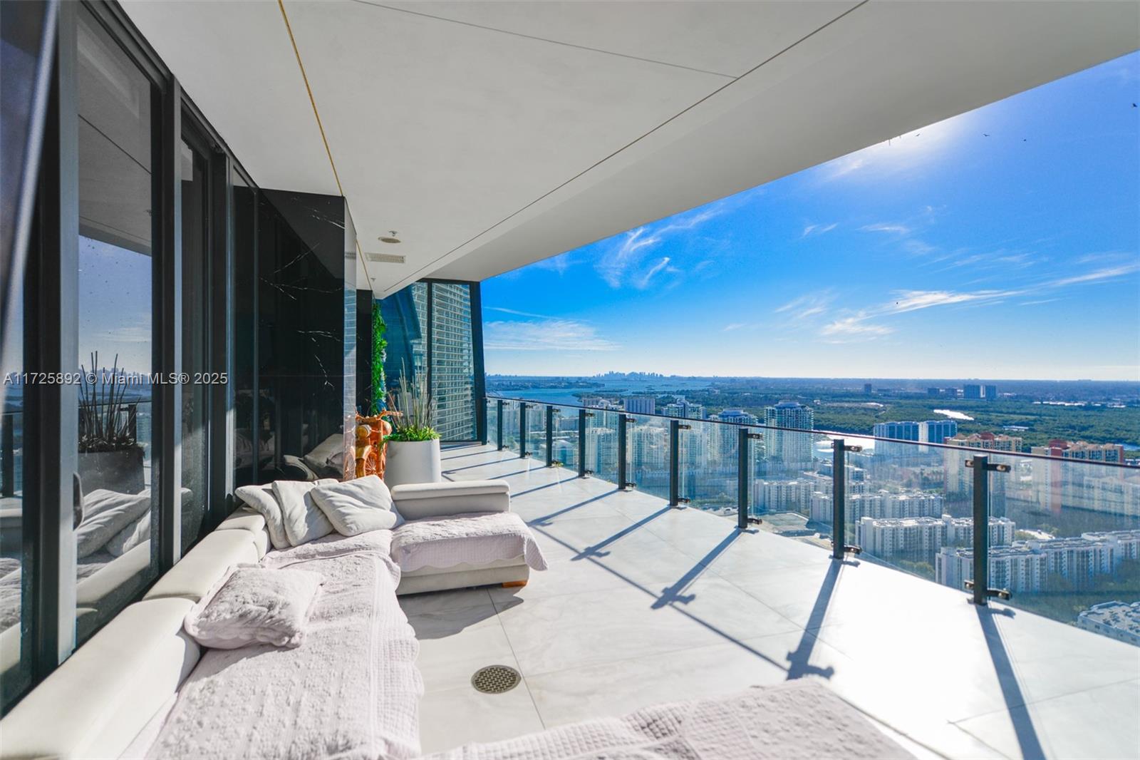Enjoy unobstructed City, Intracoastal, and some ocean views from this high-floor corner residence in Muse Sunny Isles Beach. This remodeled with designer finishes 2 bed and 2,5 bath smart home unit with private foyer entry, 12’ ceilings, and gourmet kitchen. The floor plan was improved by expanding the living room, Italian porcelain floors throughout, bubble water panel with LED lights, handcrafted onyx in the guest bathroom, bamboo wallpapers, black marble slabs give the elegant covering of the columns at the balcony, and Italian doors. Large outdoor living space w/summer kitchen. With only 63 ultra-luxury exclusive residences Designed by Carlos Ott, an edge pool and spa overlooking the Atlantic Ocean, a State-of-the-art fitness center, and a Fully automated parking system.