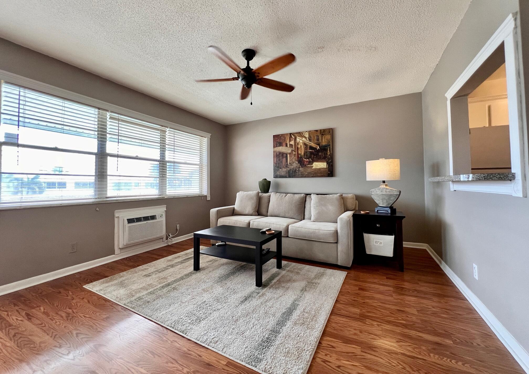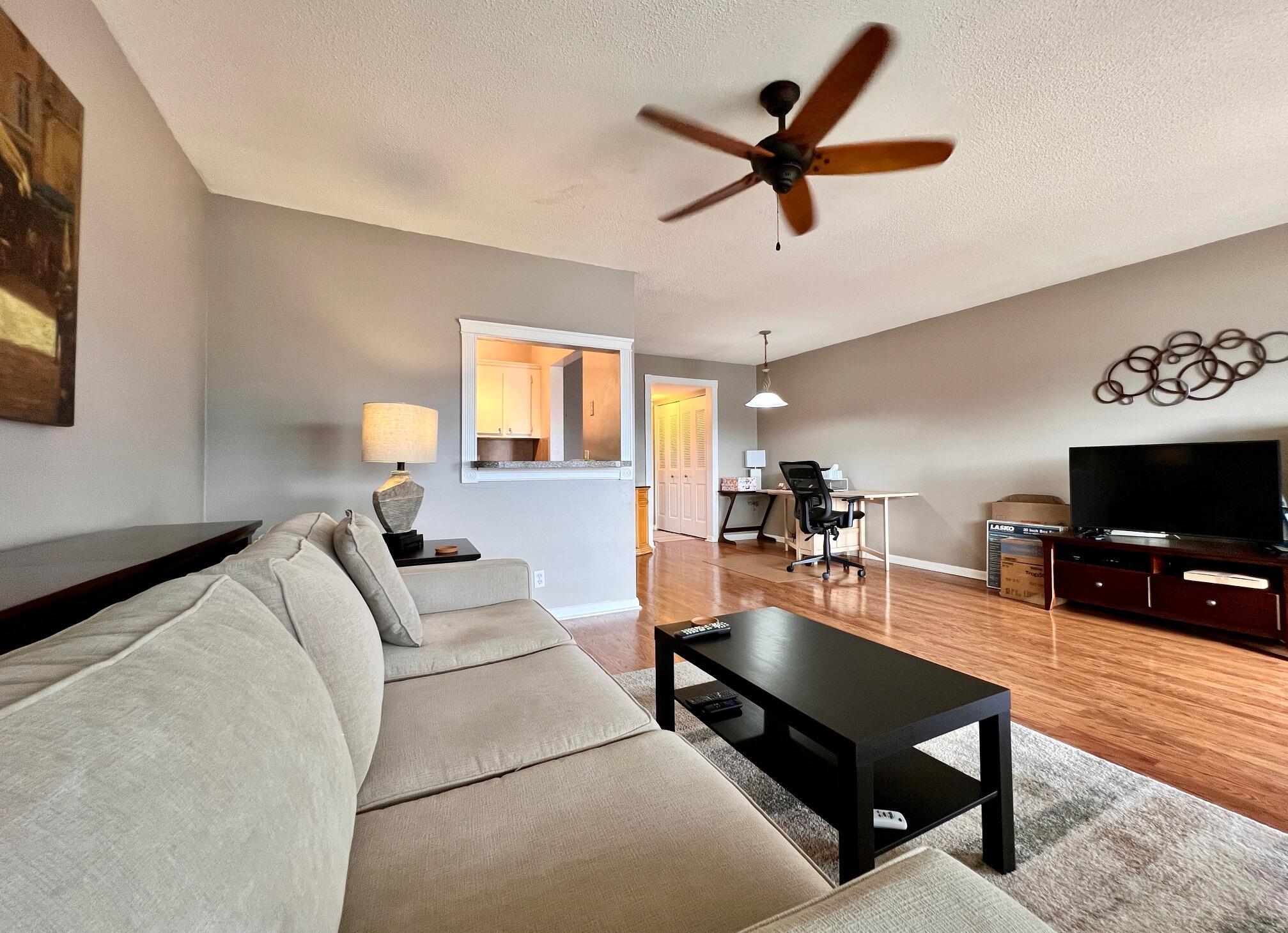 WELL PRICED GEM IN 55+ CENTURY VILLAGE! Pretty & Beautifully Maintained 1/1.5 In A Peaceful Location Close to Hasting Fitness Center. Easy Living Floor Plan With Gleaming Wood Look Laminate Flooring Throughout. Kitchen Features Crisp White Painted Cabinets & Appliances. Updated Baths. Large Bedroom Suite With Access to the Screened Lanai, Wall of Closets, and Updated Full Ensuite Bath With Tub/Shower Combination. Long Screened Lanai With Greenspace View, Tile Flooring, and Accordion Shutter for Hurricane Protection. Sold Furnished With Contents As Shown (Some Items Excluded). Well Maintained Building With Lift, Second Floor Laundry, Reserves, and New Roof (2021). A Lovely Spot Close to Hastings Fitness Center! Century Village is a Resort Style 55+ Community With So Much to Offer...