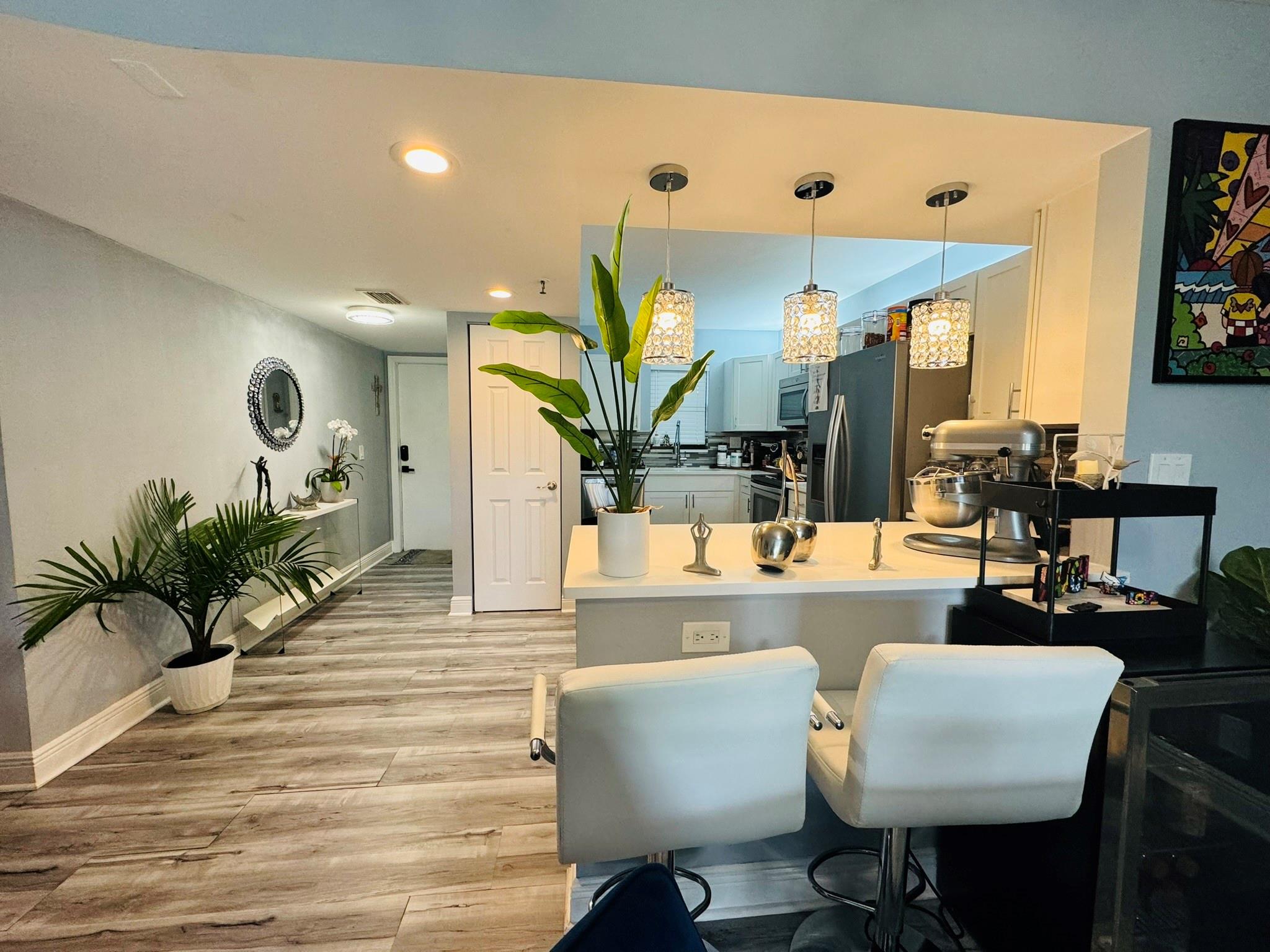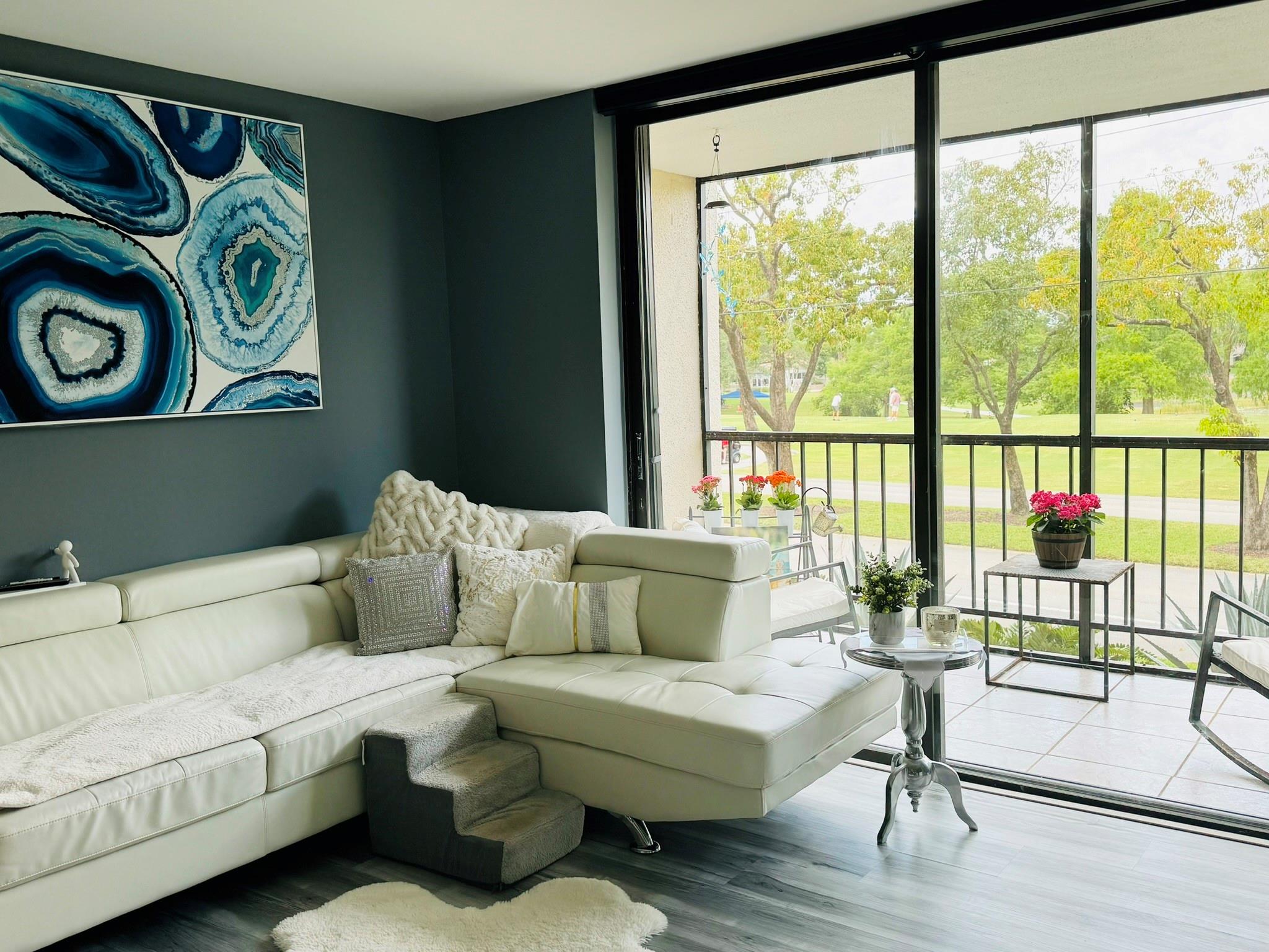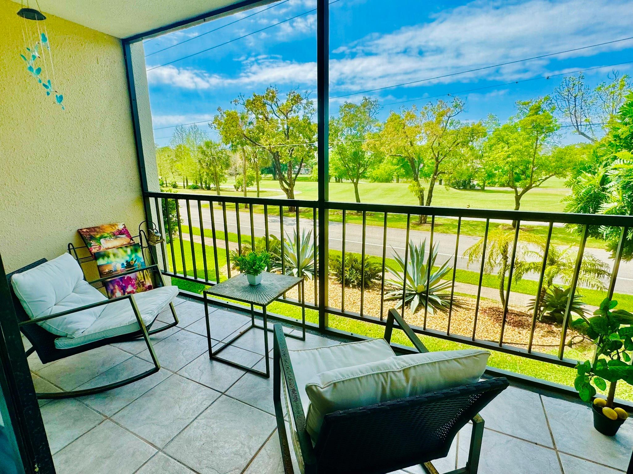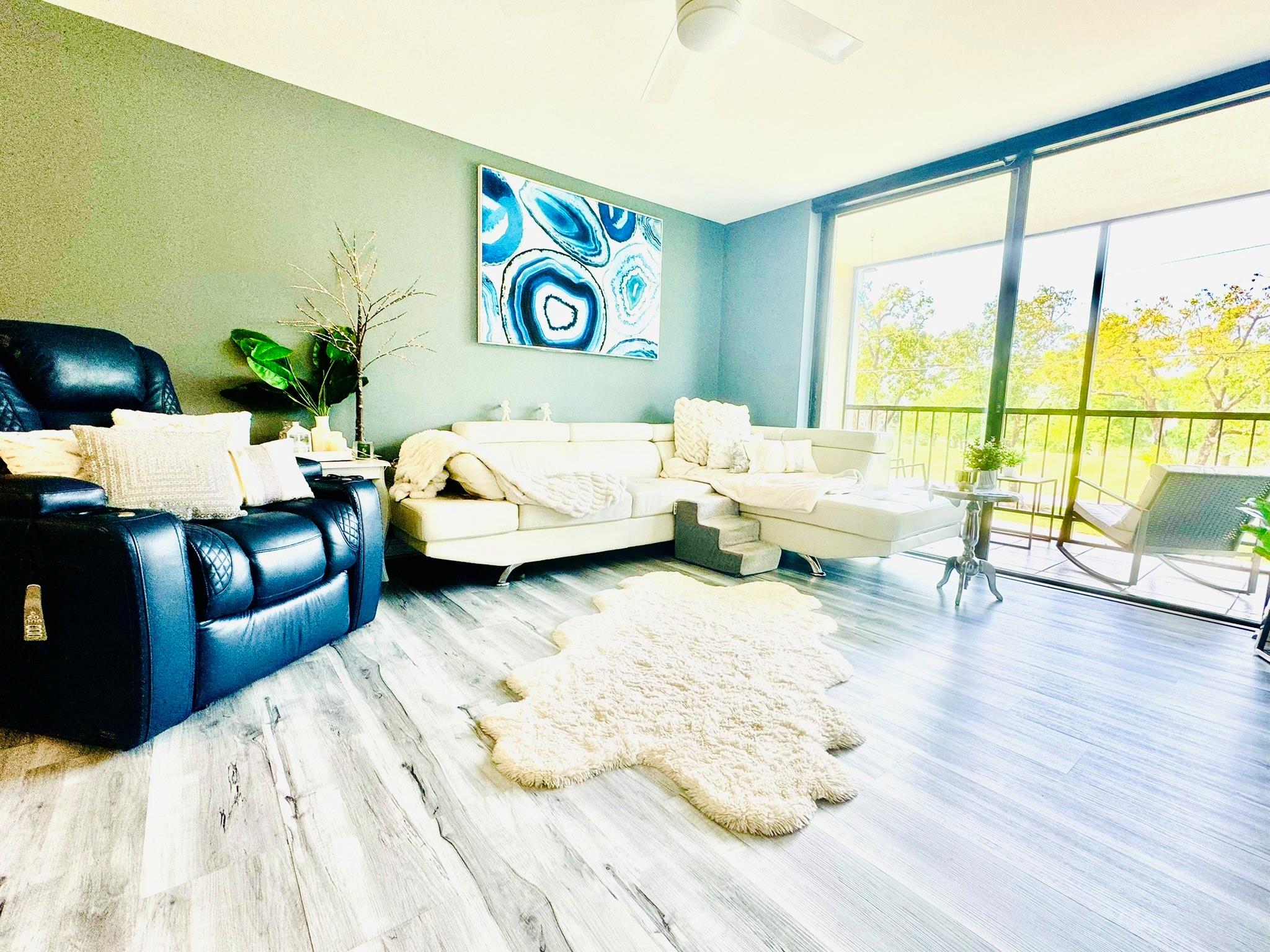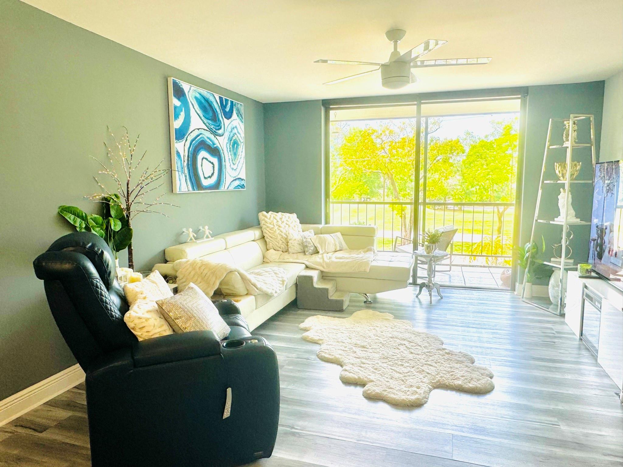 MOTIVATED SELLER! Spectacularly updated 2 bedroom 2 bath. One of a kind. Washer and dryer inside the unit, golf view, and a lot of light coming in. Contemporary style, finishes at their finest including kitchen with white cabinetry, stainless appliances and quartz counters. Elegantly styled baths. New windows, new shutters, remote controlled blinds in living room. Pets are allowed only as service animals. ESA welcome. Large walk-in closets + extra storage. Renovated gym, pool, tennis, shuffleboard, putting cage and Bocci court. On the grounds of Deer Creek Golf Club with its reasonable annual greens fees or daily rates and public clubhouse. (No Membership Required To Purchase). Association requires minimum 20% down.