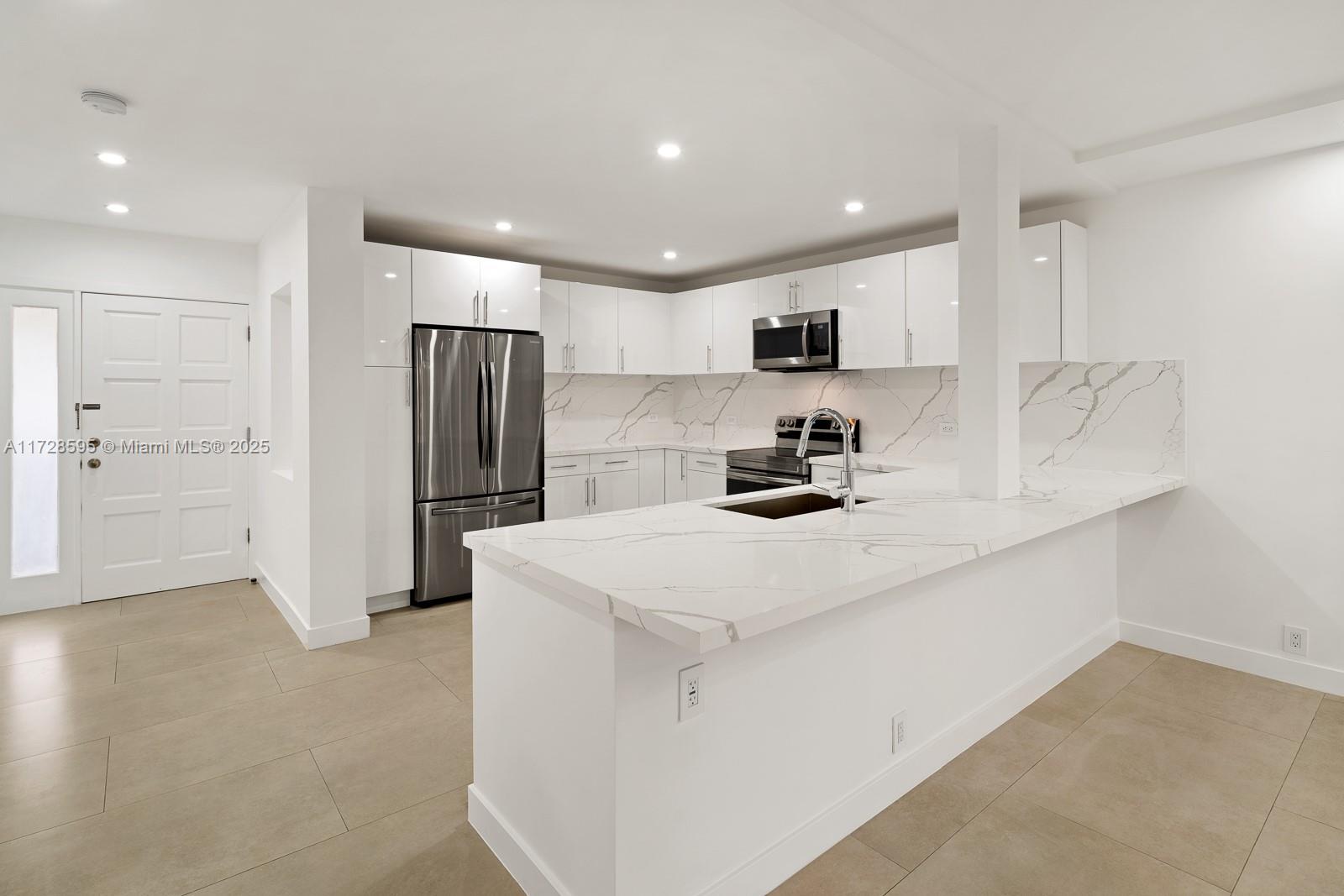This inviting two bedroom home has been recently remodeled and offers new tile floors, an open concept kitchen with sleek countertops and new cabinetry, along with ample counter and storage space. Updated overhead lighting throughout, new interior doors, and ample storage space make this a wonderful unit to call home. One assigned parking spot (C49). Key Colony offers luxurious amenities, including an ocean-front pool, a lap pool, gym, and tennis courts. Host gatherings in the barbecue area, let children enjoy the playground and enjoy beach access all year round. Embrace the vibrant lifestyle of Key Biscayne with this exceptional home, where modern living meets unparalleled amenities. Don't miss the opportunity to make this your new sanctuary!