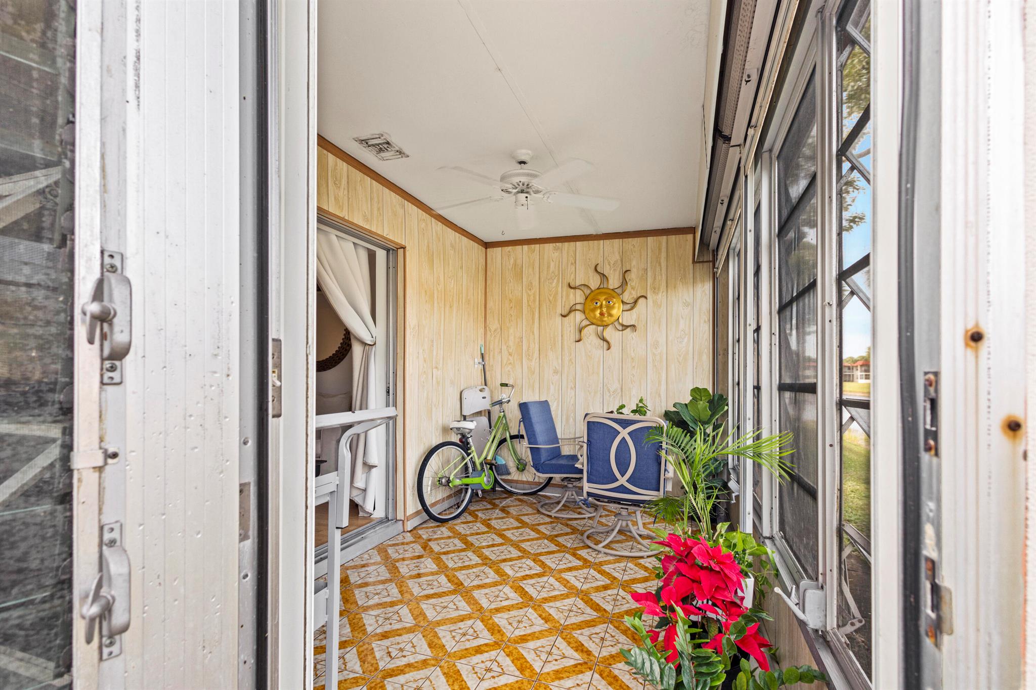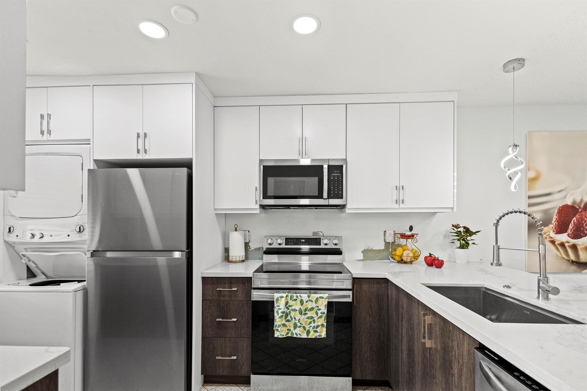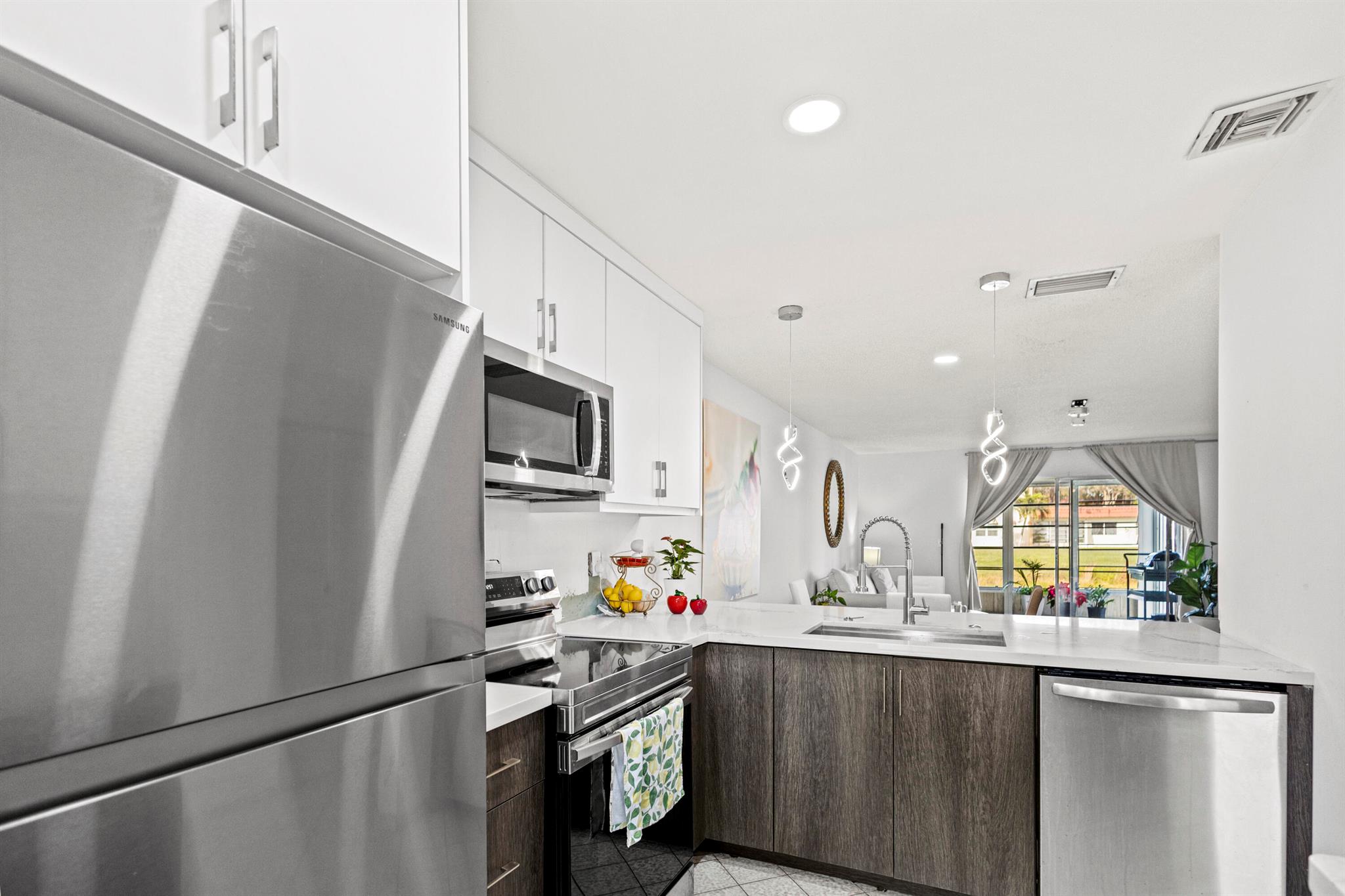 Don't miss out! With the recent price reduction, this is hands-down the BEST-priced villa in Golden Lakes! New ROOF and New AC! This stunning 2-bedroom, 2-bathroom home has been completely remodeled and updated--it's move-in ready and waiting for you! Hurry, this incredible deal won't last long! One occupant must be 55+, no one under 19 to reside full time. Stylishly updated with tile and wood-style flooring throughout. The kitchen boasts modern stainless steel appliances, including a convection oven and microwave. Enjoy the convenience of an in-unit front-loading washer and dryer. The unit features newer A/C for year-round comfort and is meticulously maintained.