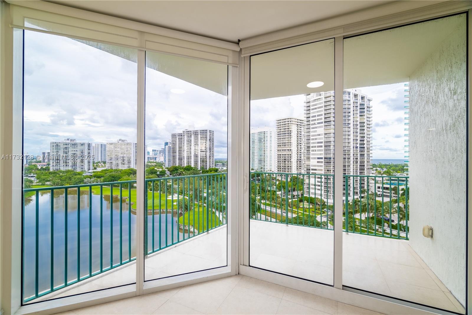 One of the most spectacular views at Turnberry Village North! North East views of Turnberry Golf Course, The Hardrock, The Intracoastal and the Ocean. This spacious 2 features a unique layout with both bedrooms offering 2 walk in closets EACH and an adjacent bathroom, with views from every room. Bedrooms are wood flooring and the rest of the rooms are tile. Features include an island Kitchen, New Washer/Dryer and A/C was replaced in 2023. You can rent 2x a year. Building has just recently had an assessment to replace the roof and replenish the reserves, amongst other things. The location is also amazing, you are directly ON the Country Club "Don Soffer Exercise Trail", where people can bike, walk their dogs, run or walk directly to Aventura Mall and other local attractions and stores.