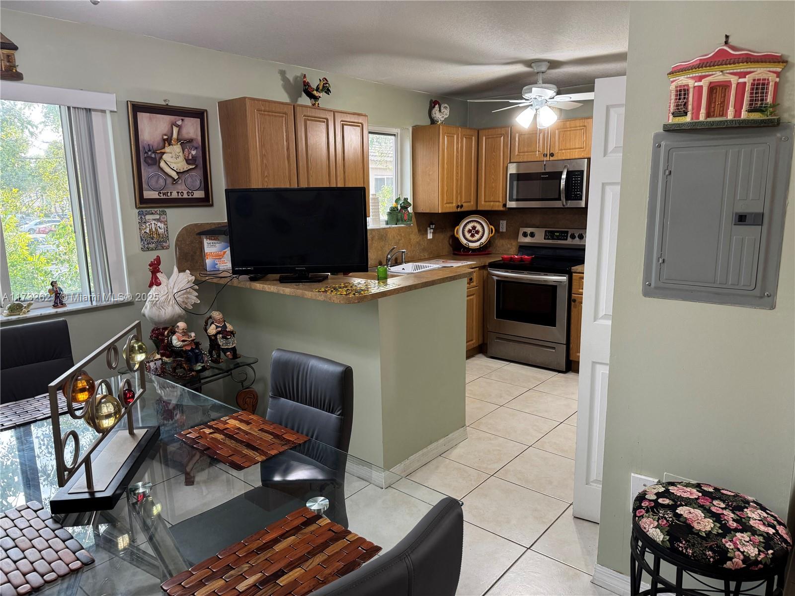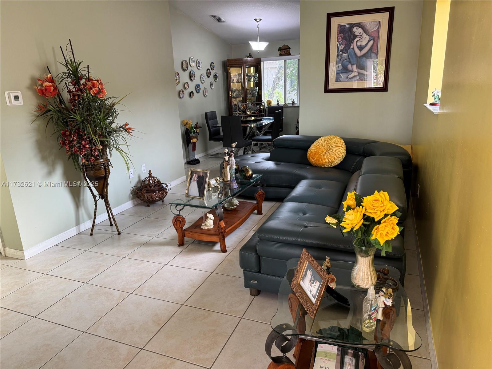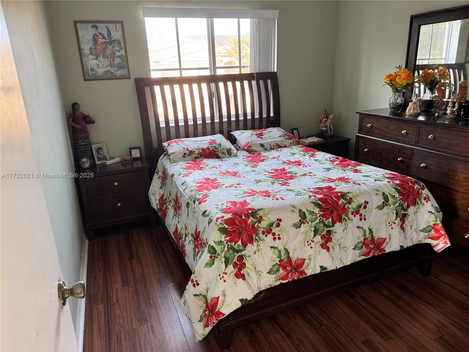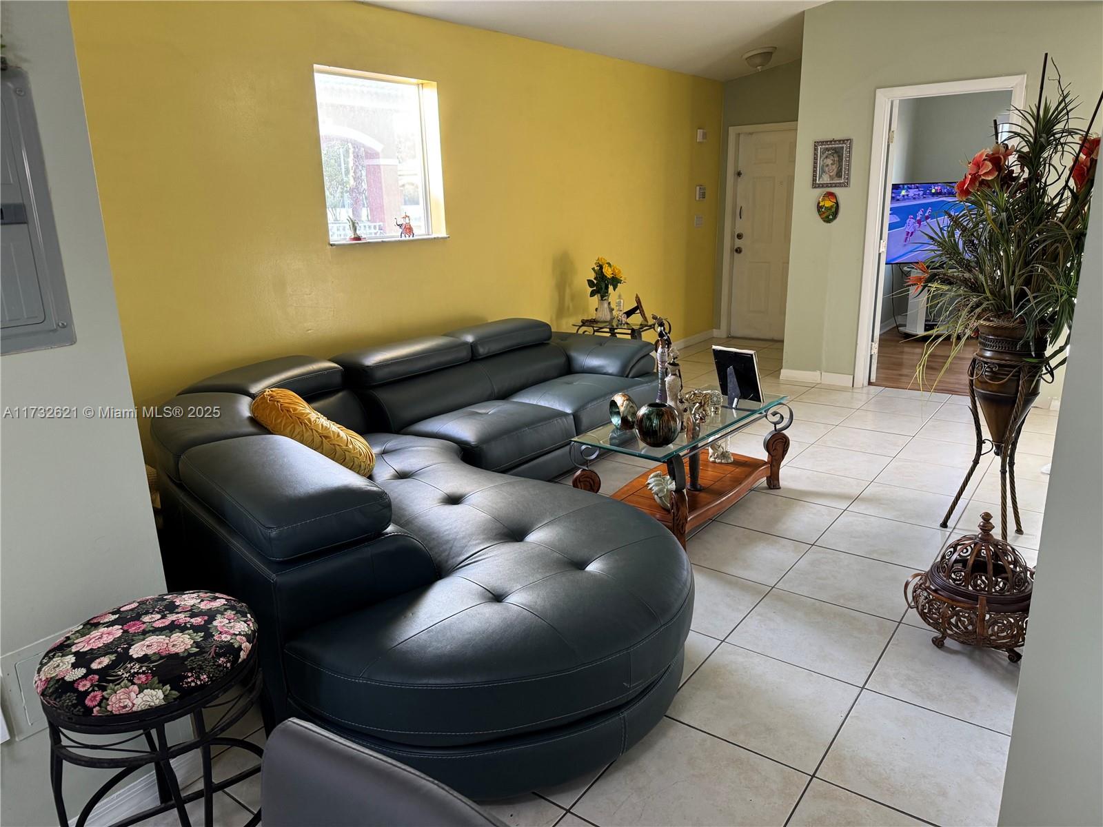 Fabulous corner unit second floor with sunny exposure. Located steps from the pool, lake. Plenty of guest parking spaces. Freshly painted, fully tiled throughout. Kitchen with microwave, dishwasher, range and refrigerator, all appliances with 1 year old of use. Large primary suite with morning light and walk-in closet. Other two well-sized bedrooms with morning light are on split plan. In unit washer and dryer with 1 year use. Brand new air conditioner with 1 year use. Gated community with security, clubhouse and community pool. All buildings are freshly painted, Brand new tile roofs, parking spots freshly painted and numbered. Close to the Florida Turnpike, Homestead Speedway, schools, shopping centers and parks. Occupied by owner. Ready to move in. NOT SUBJECT TO APPRAISAL.