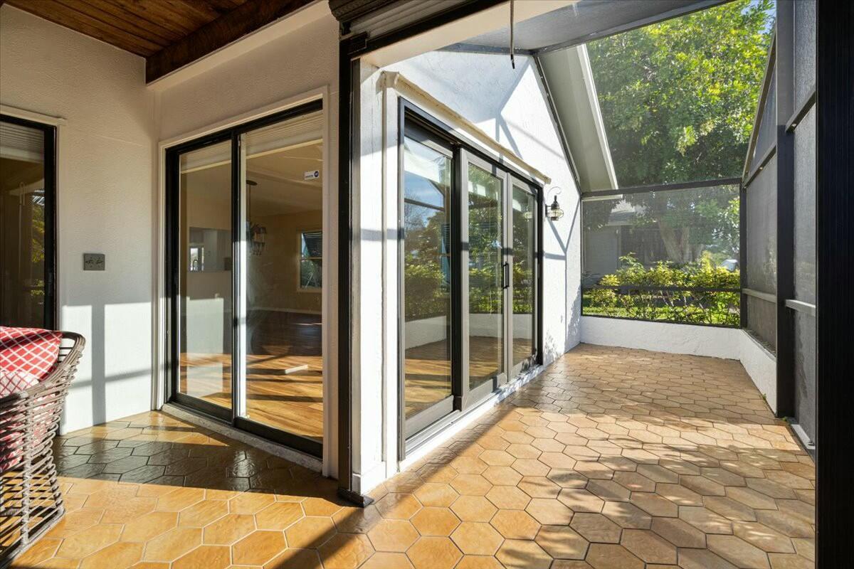 This is a charming two-bedroom, two-bathroom, one-level villa which offers a blend of comfort and updates. All ages welcome. The home features a spacious one-car garage with a full size washer and dryer. 1 year old air conditioner. The updated kitchen features sleek granite countertops, while newer vinyl plank flooring adds elegance and durability throughout the home. Some impact windows to add safety and energy efficiency. The back screened lanai is ideal for relaxing or entertaining, all within a peaceful and quiet community. Conveniently located between Stuart and Jupiter. Residents have access to fantastic amenities, including a public golf course, community pool, and tennis courts, and only a short drive to the Hobe Sound beach, making this villa a true retreat. HOA fe