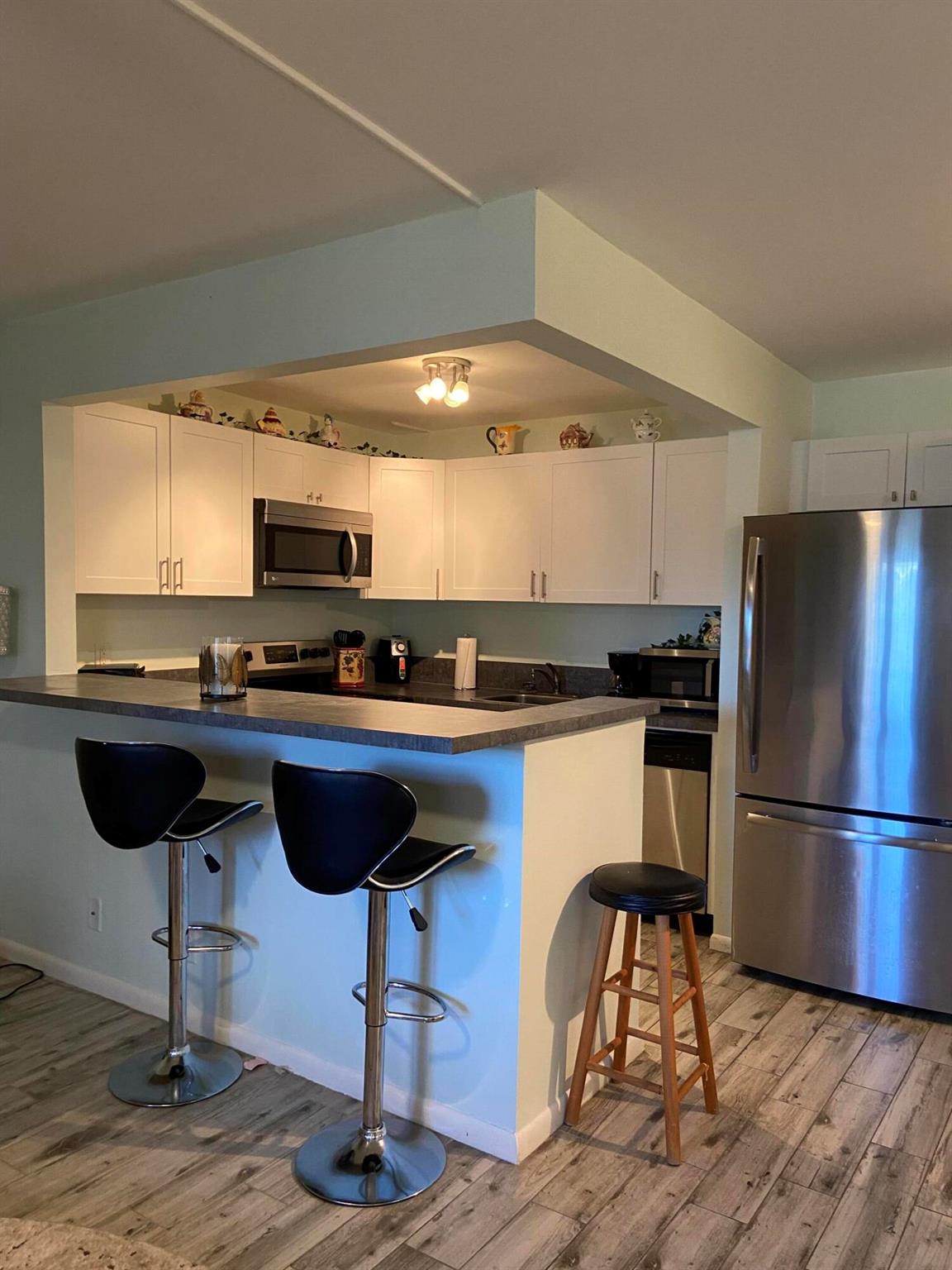 You will fall in love with this slice of Florida paradise. Ground floor location for your ease of access. Step in shower provides safety and convenience. Attractive plank flooring is attractive and easy to maintain. Impact doors and windows provide quiet and safe enjoyment of your new home. Condo has central air, stainless steel appliances and upgraded kitchen and bath. Swimming pool is a short distance away. Come to visit and you will want to stay