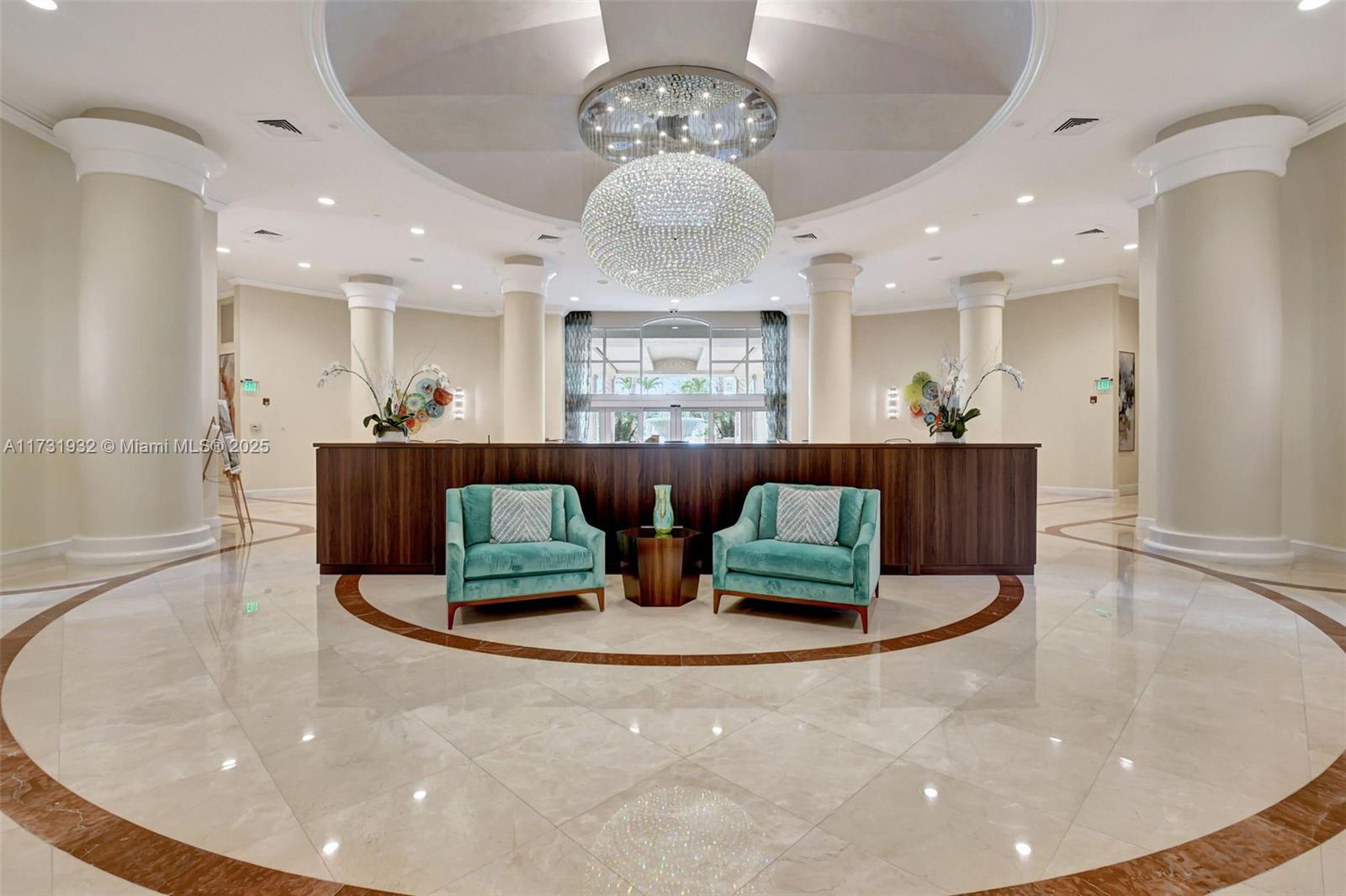 Perched on a high floor, this renovated Siena model spans over 2,230 square feet with 2 bedrooms, 2.5 baths, and a converted den that functions as a guest suite and office. Two balconies frame sweeping views of the ocean, Intracoastal, and city skyline. The kitchen is outfitted with custom granite counters and backsplash. The primary bath combines marble, quartz, and a built-in spa for a true retreat experience. The building has undergone a full transformation with upgraded elevators, redesigned common spaces, and a new reception. Residents enjoy access to a staffed private beach pavilion, 24-hour security, and full-service amenities. Sophisticated finishes and a clean transitional style make this a polished, turnkey coastal residence.