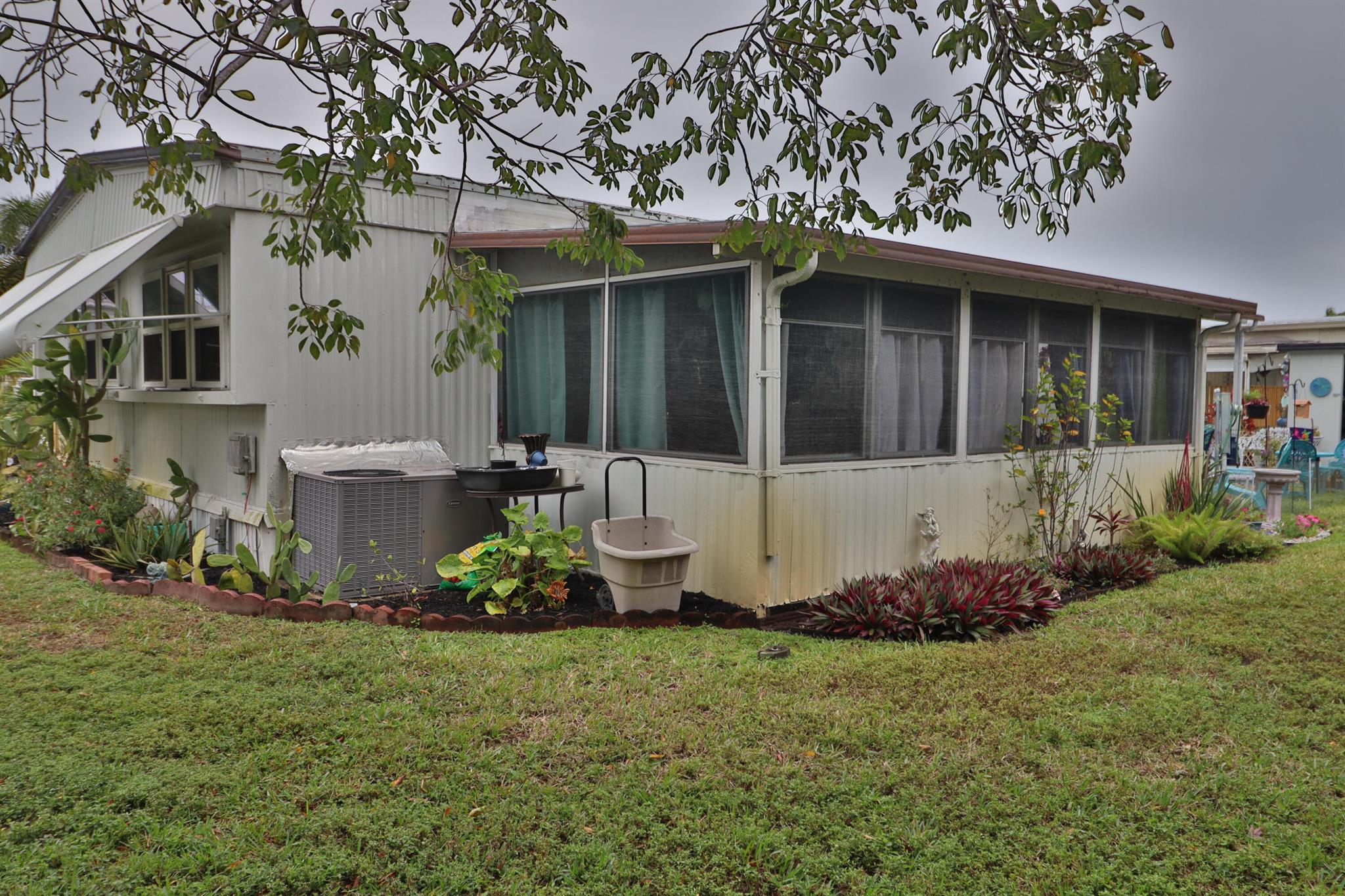 Well appointed home on a very large private backyard, with a beautiful enclosed 200 sq ft Florida Room with Screens. This Beautiful Open Concept 2 Bedroom 1.5 Bath home has been fully renovated and updated with many extras, Large walk in closet in primary. Fireplace included for cool cozy nights. Washer & Dryer Inside the house. NO LAND LEASE, CASH PURCHASE ONLY, 55 PLUS GATED COMMUNITY VERY LOW HOA which includes water & sewer, lawn care, fiber-optic high speed wi fi internet.Community offers many social activities, Clubhouse, 2 pools, billiards, bocce ball, bingo and so much more. Shopping and Restaurants are minutes away. Come and enjoy this 55 plus lifestyle.