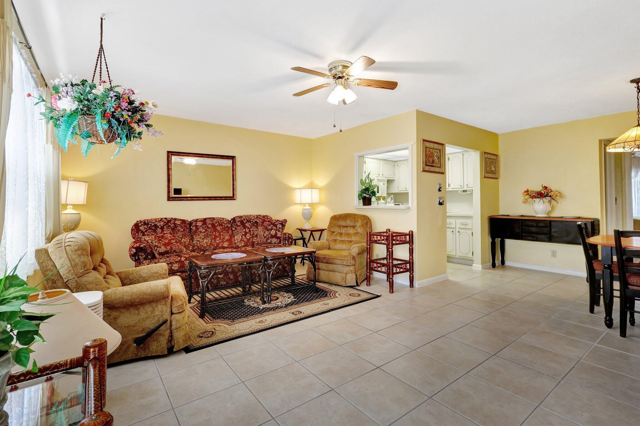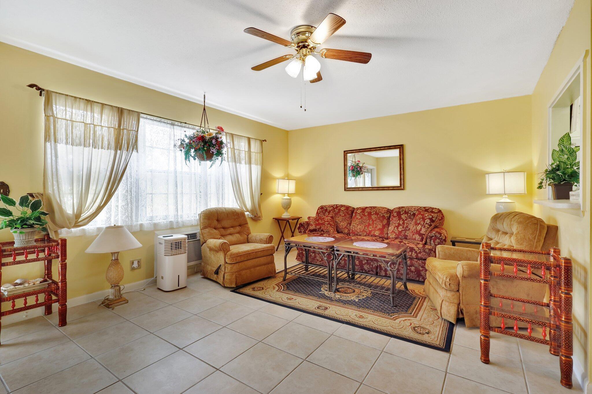 MOVE INTO THIS BEAUTIFULLY FURNISHED GROUND FLOOR ONE BEDROOM ONE AND A HALF BATH CONDO, THIS CHARMING CONDO FEATURES CERAMIC TILE THROUGHOUT, UPDATED MASTER BATH, A SPACIOUS WALK IN CLOSET AND A NEUTRAL COLOR PALETTE THAT EXUDES CALM. CLOSE TO THE HAVERHILL GATE AND THE CLUBHOUSE ENJOY THE CONVENIENCE OF 55+ RESORT LIVING. Clubhouse with theater, shows, movies, craft and card rooms, billiards, aerobics, yoga, and dance classes. GREAT LOCATION: close to shops, restaurants, PBI airport and beaches.