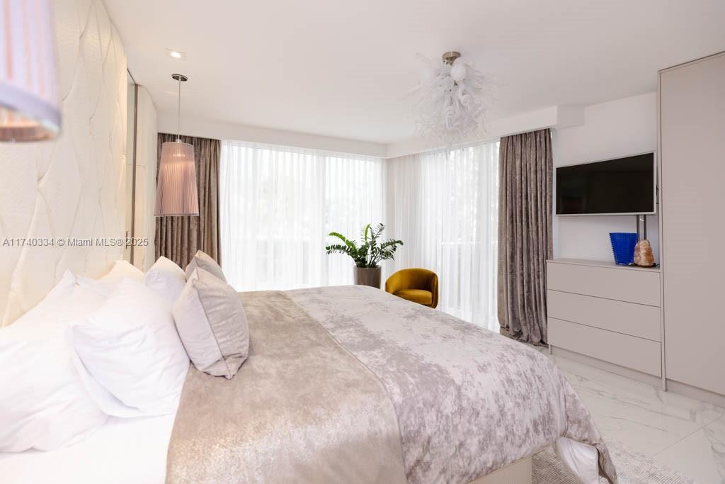 Turn-Key oceanfront freshly renovated 2 bedrooms/2 bathrooms unit - 1782 sq ft - with over 450 sq ft wraparound balcony. HUGE 12 feet ceiling in the living room is a great place to entertain! The elegant and modern interior features Italian calacatta porcelain flooring throughout. Open kitchen with top-of-the-line appliances, Onyx backlit countertop(lights up), freshly upgraded kitchen cabinets. Custom made built in furniture, beautiful curtains and modern chandeliers all over the unit. Fully renovated bathrooms, master bathroom features tub and huge shower. Separated Miele washer&dryer room. Resort-style amenities features a 50,000 sq ft fitness center & full service spa overlooking the ocean, 5 huge pools, hot tubs, beach chair service, restaurant/bar, party room, 24 hours security&valet