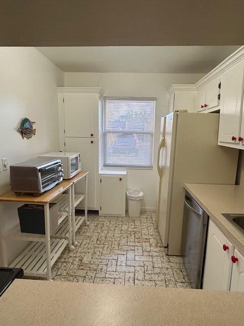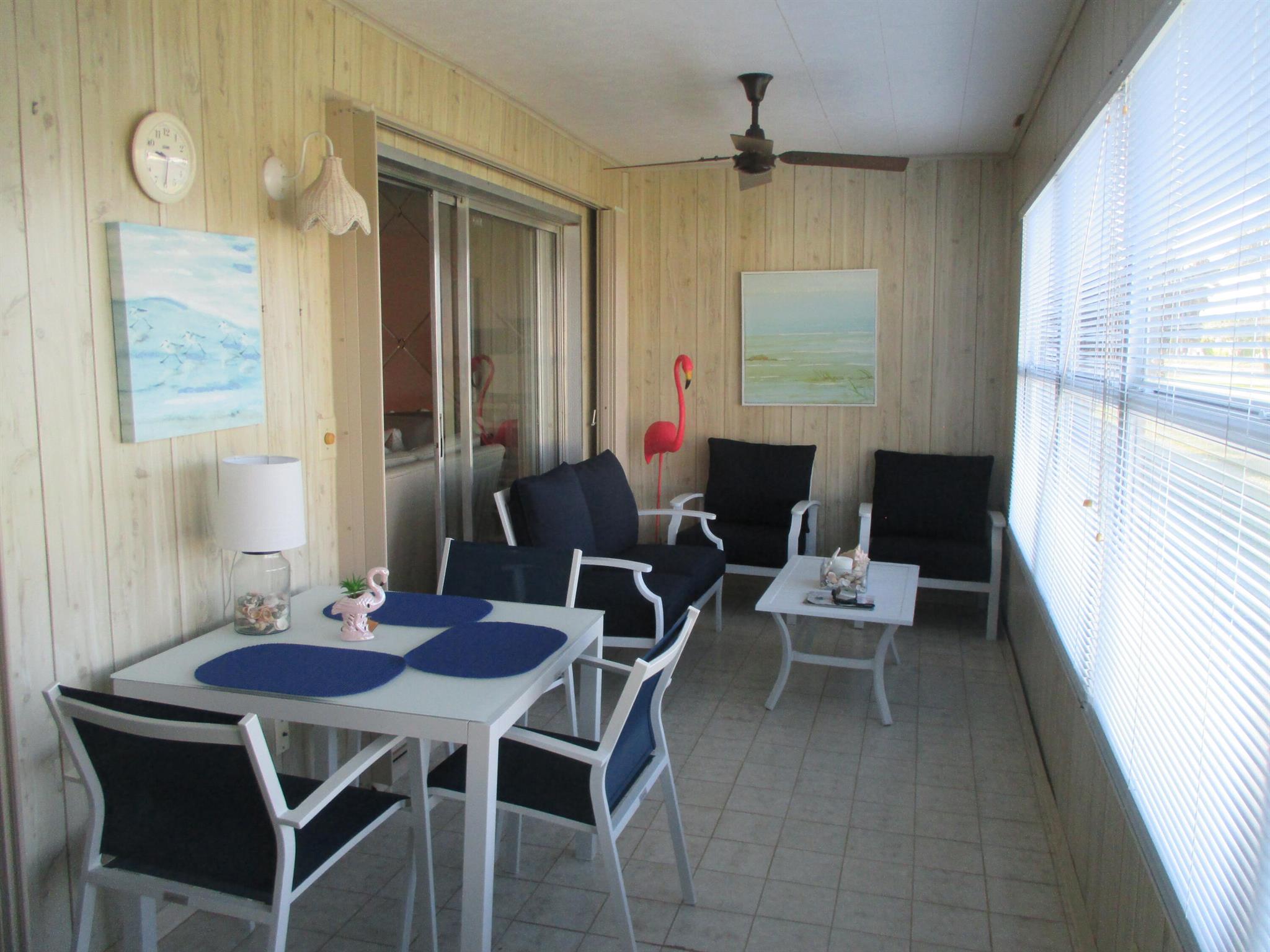 Stunning move in ready 2/2 Villa. Two newly remodeled bathrooms with walk in showers. Newer LG stove and LG dishwasher. Laminate & tile floors, enclosed 22'+x 8' patio with an expansive water view. Offered with or without furniture (some exceptions) One occupant must be 55+. Pet friendly, one pet max 30 lb. 24/7 Guard gated community. Lots covered in monthly maintenance, including Internet, water, Xfinity cable w/prem channels, etc. Great recreational facilities, including pickleball, tennis, pool, hot tub, sauna, social activities and a courtesy Bus 2 days a week to grocery, big box stores etc. Come Discover Golden Lakes Village.