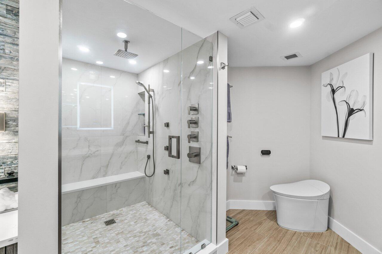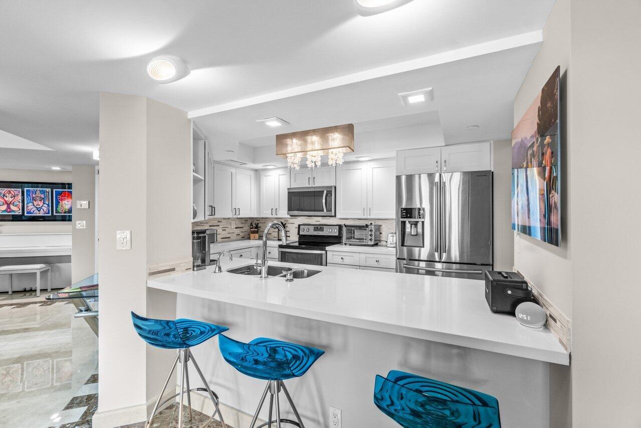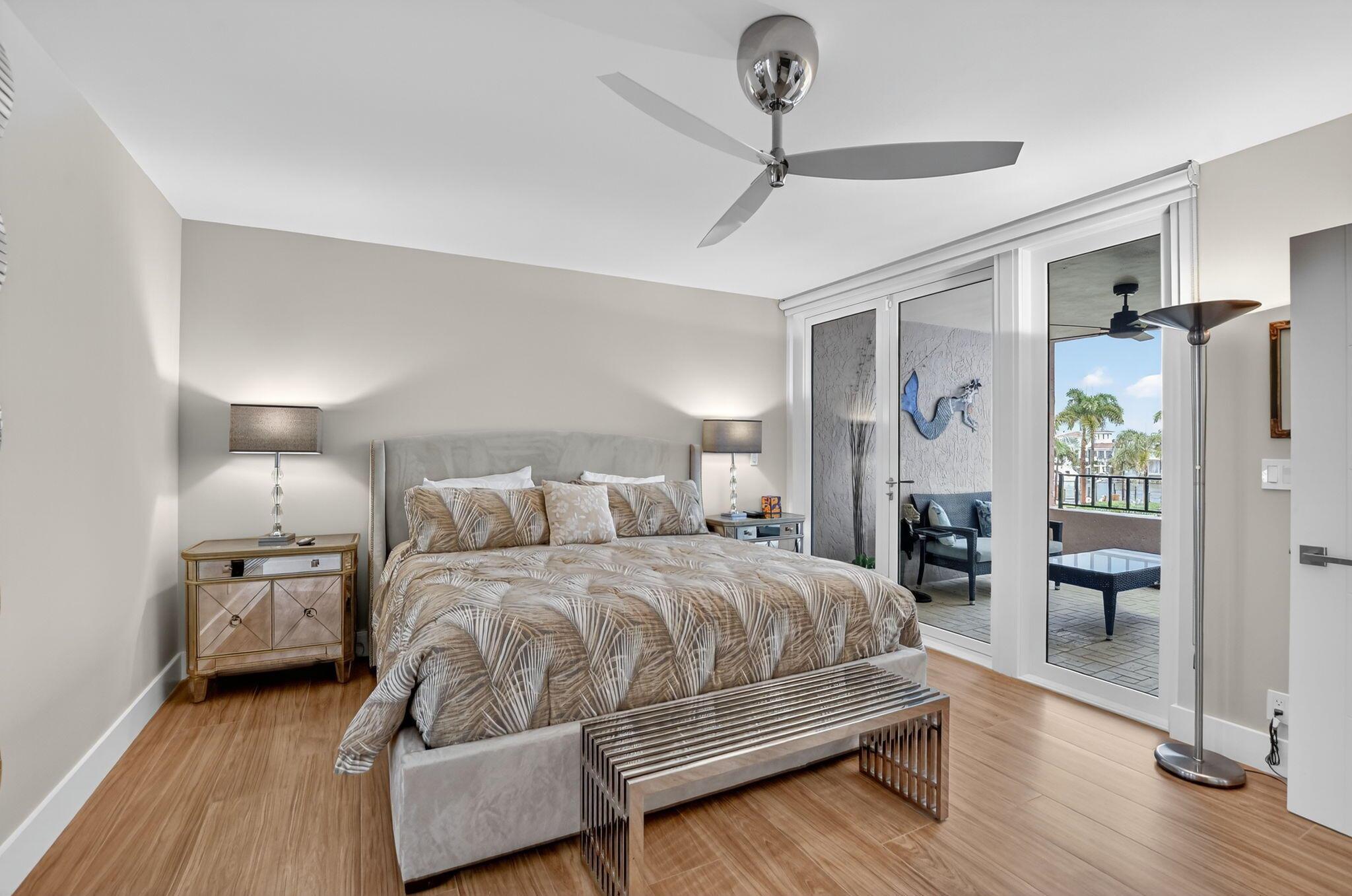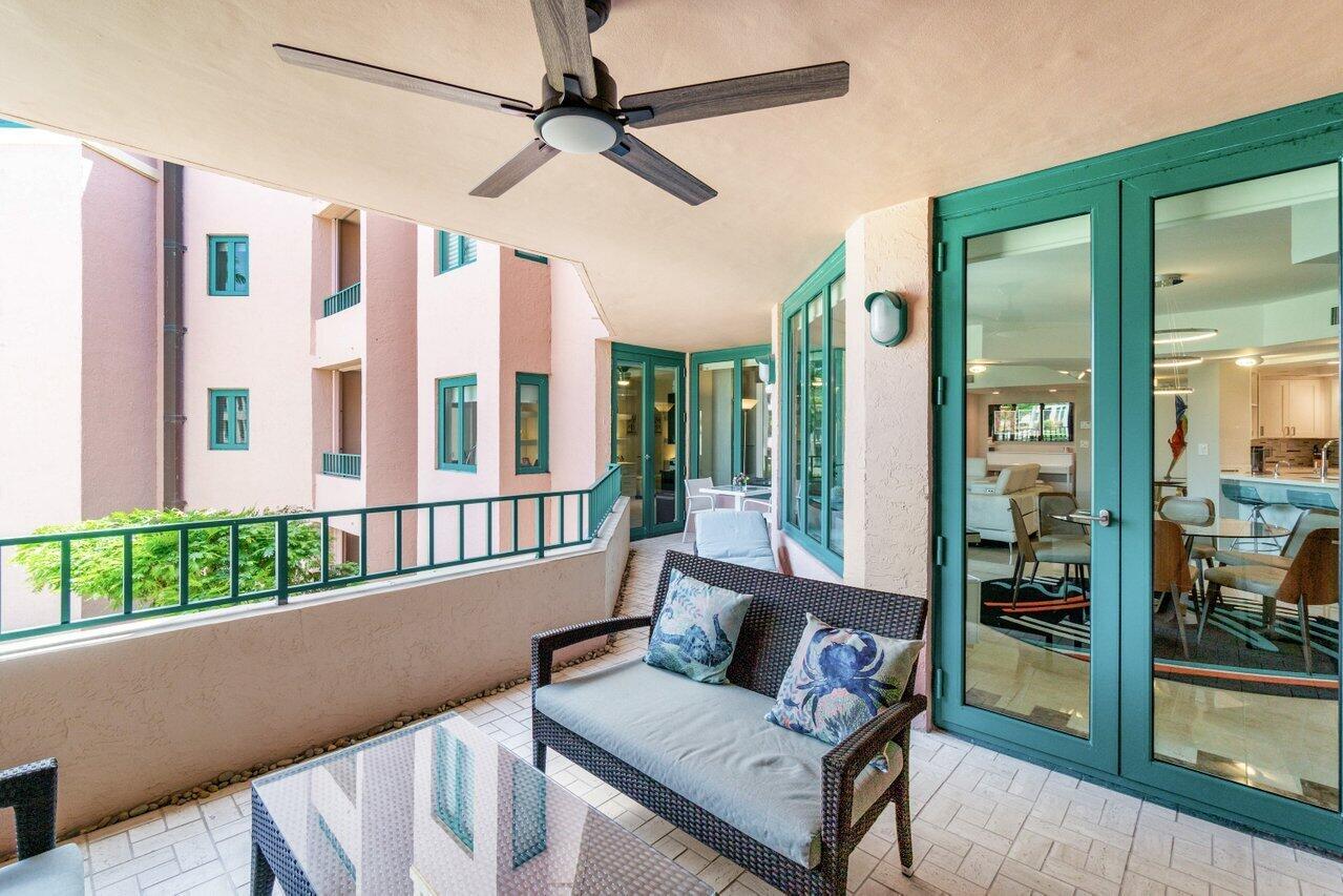 GREAT OPPORTUNITY TO MOVE IN FOR THIS SEASON! Turnkey with designer furnishings included. *** MOTIVATED SELLER!*** This 2 bedroom/ 2 bath El Lago model, meticulously updated, including impact windows and doors and ready for immediate move in or use as an investment property. This 1630 sq. ft. Split layout offers privacy for owners and guests. Large open floor plan with views of the Intracoastal waterway throughout. Primary bedroom has beautiful porcelain tile (wood-look) floors, spacious closet with build outs, a spa-inspired bathroom with dual sinks, luxurious shower and a separate make-up vanity. The second bedroom is versatile, with a Murphy bed system for added functionality and allows full use of the room. The main area has a full built-in wall unit with added storage.