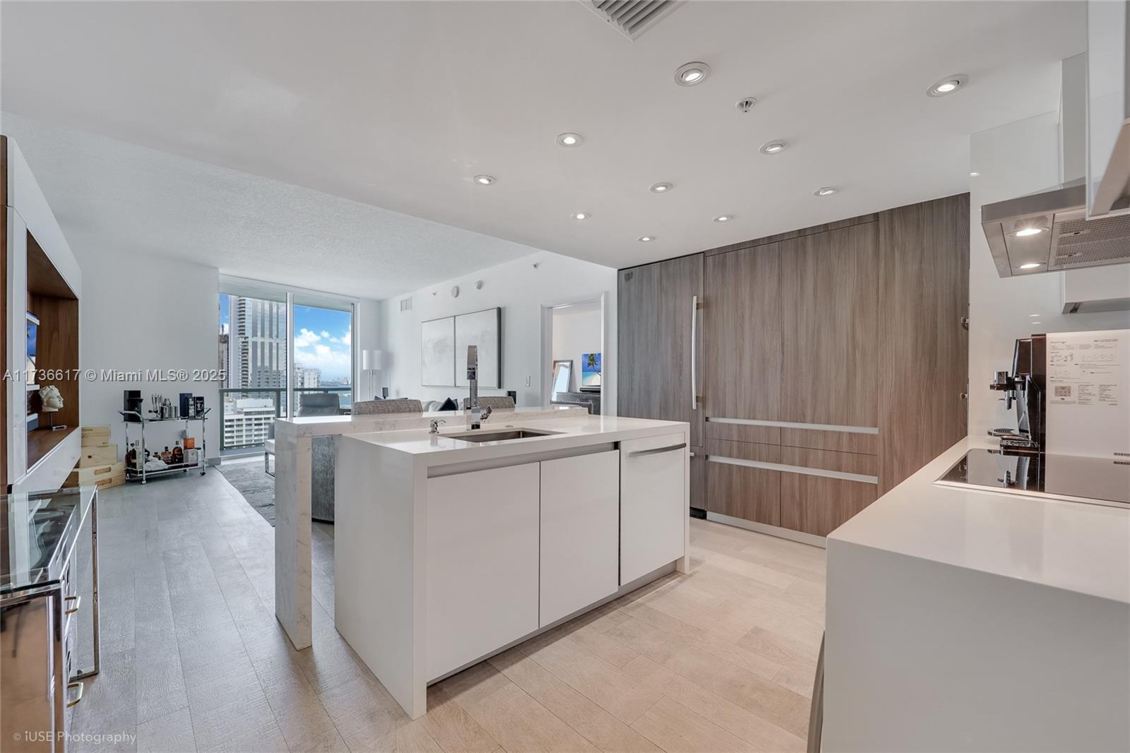 Completely remodeled 2 BD | 2 BA IN Quantum on the Bay, offering direct bay and skyline views from every room. This spacious open floor plan is designed with high-end finishes, including Porcelanosa flooring, custom-built kitchen and bathroom cabinetry, JennAir appliances, and automated lighting. Thoughtfully designed for both style and functionality, the unit features walk-in closets, electric shades, and a custom Murphy bed with an integrated desk. Quantum on the Bay provides resort-style amenities, including: Two heated pools, Two-story fitness center, Theater room, Business center & lounge, Billiard room & party room, Sauna & jacuzzi, Valet service & 24-hour security, on-site mini market, etc.