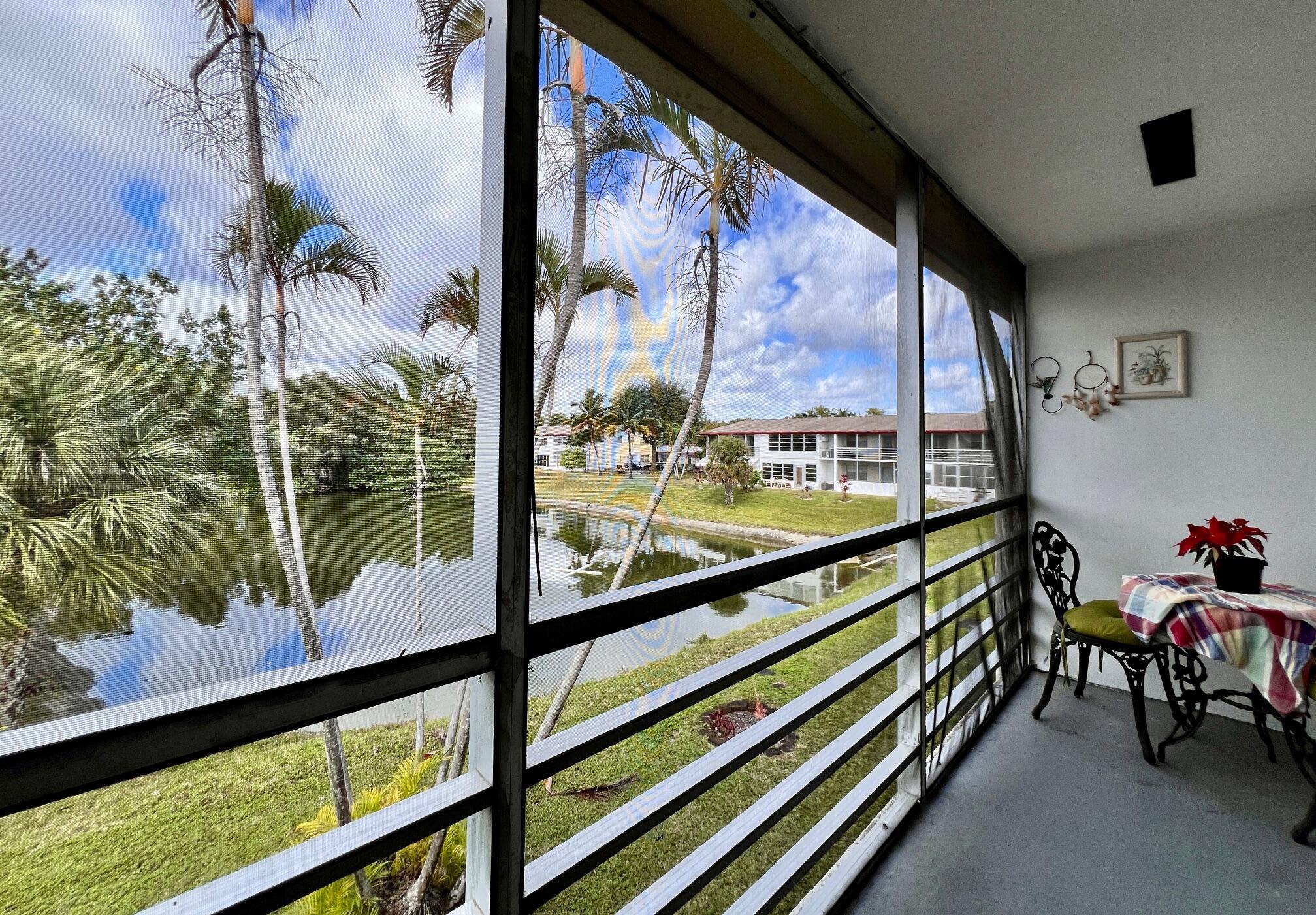 Well Priced & Delightful With Pretty Water Views in 55+ Century Village! Move-in Ready 1/1 With Numerous Updates. Lovely Updated Kitchen with White Cabinets, Granite Counters, and Stainless Appliances. Updated Bath With Step-in Shower. Gleaming Tile Flooring in Living Area. Updated Front Windows & Accordion Shutter Across the Back. Pretty Water Views from the Lanai. Nicely Maintained Building With New Roof (2022). Century Village is a Resort Style 55+ Community With So Much to Offer...