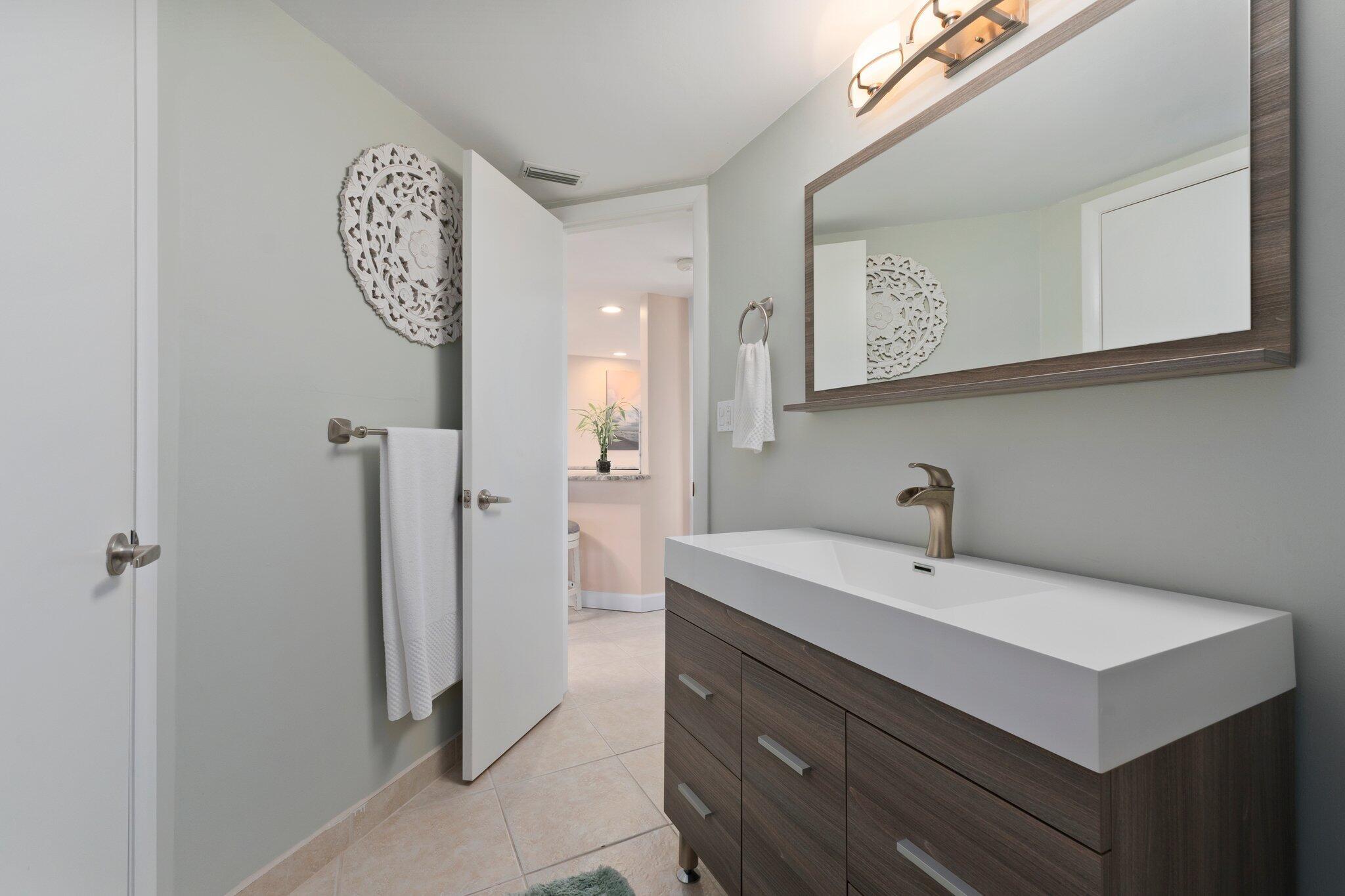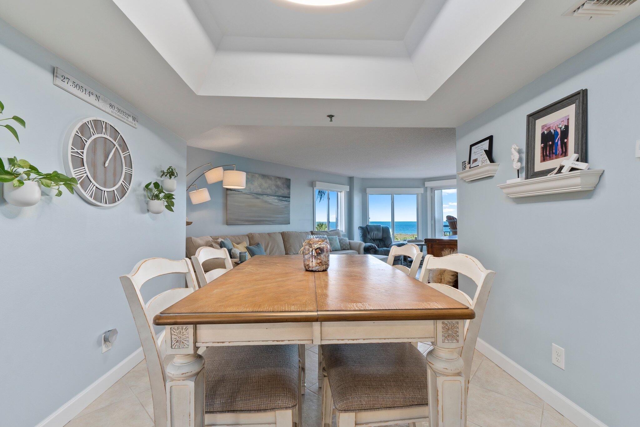 Enjoy breathtaking views from this exquisite corner unit just steps from ocean with two private balconies. This remodeled unit has 2 bed, 2 bath, 1,239 sq ft, and includes a private garage. Inside you will find all new impact windows & sliders, new HVAC, fresh paint, a stunningly remodeled kitchen, & remodeled bathrooms. Enjoy stunning ocean views with remote-controlled shades for effortless privacy. The oversized walk-in closet offers ample storage, and recent upgrades--including a new dryer, hot water heater, and toilets. This well-appointed community offers a pool, full gym, private beach access, and garages. Ideally located near downtown Fort Pierce & Vero Beach, with shopping, dining, and entertainment just minutes away.