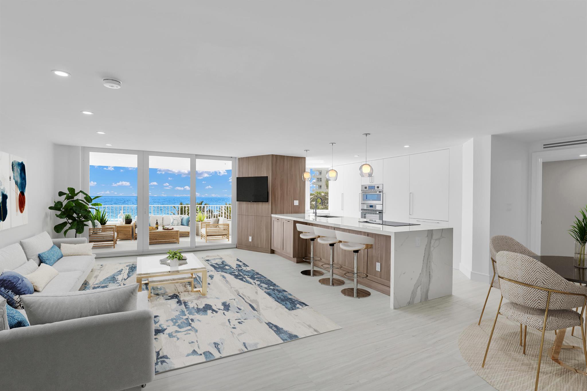 This newly renovated residence at The Chalfonte offers direct ocean views from every room. Designed with premium finishes, it features an open layout with custom cabinetry, porcelain countertops, a built-in bar, and high-end Thermador appliances.The bright southeast exposure ensures abundant natural light and stunning sunrise views. A spacious oceanfront terrace provides the perfect setting for entertaining, while the split floor plan offers privacy. The building sits directly on the beach with private access and includes an oceanside swimming pool, daily beach umbrella service, a modern fitness center, two tennis courts, a social lounge, and 24-hour security. A prime beachfront location with everything you need for comfort and convenience. Offered unfurnished.