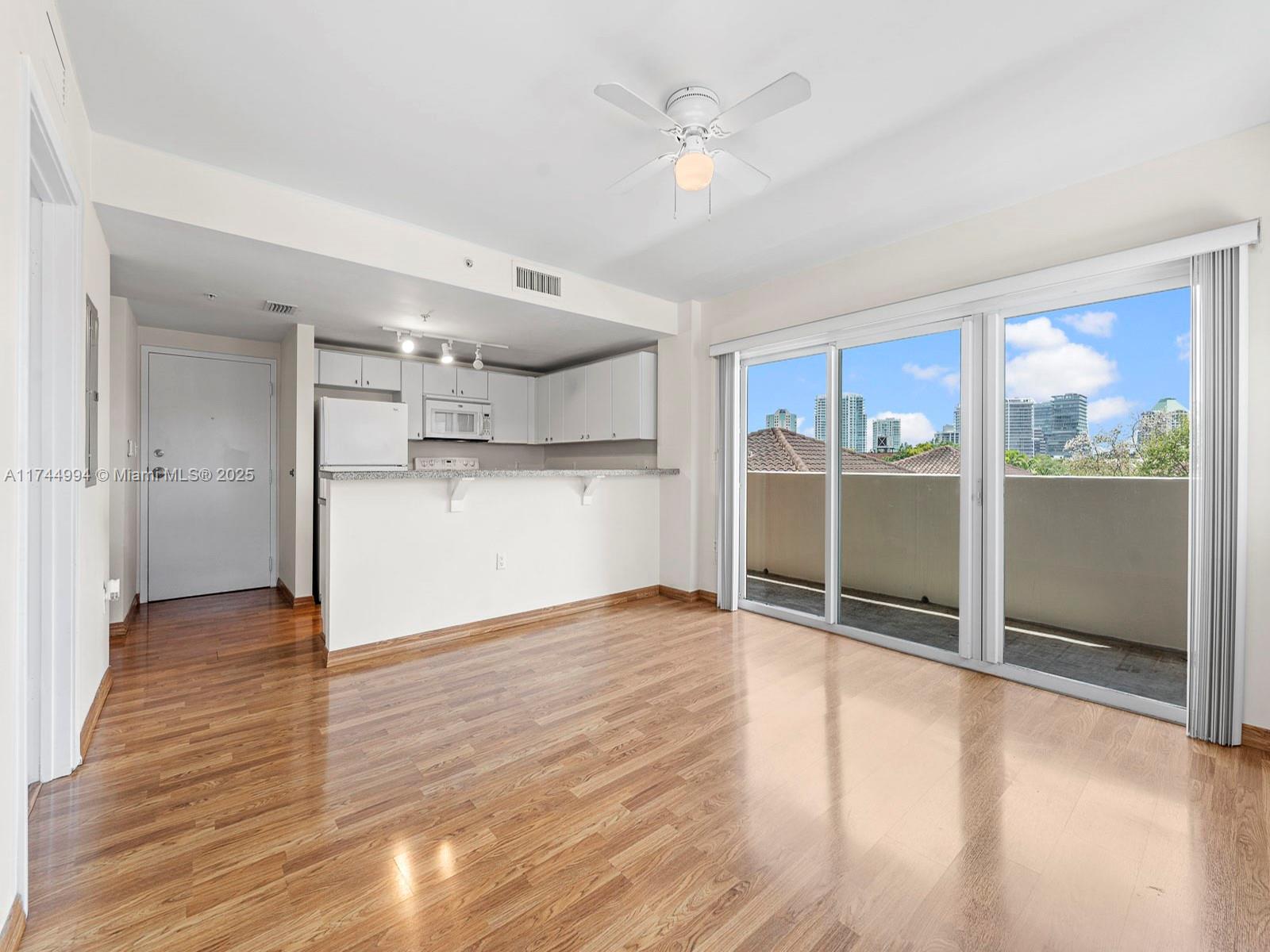 Rarely available 5th floor corner unit at Villaggio in the Grove! Located convenient to US1, Coconut Grove Metro/Grove Central, Berries in the Grove & more! This well-maintained 1/1 features a generous kitchen w/complete appliance set, granite counter tops & eat-in bar. Kitchen is open to a light & bright living area which leads to a large balcony looking into the Grove. Enjoy incredible sunrise views from this private outdoor living space. This 5th floor corner unit, in building's quietest line, shares no party walls w/neighbors. Rarely used convenient interior staircase nearby. Villaggio in the Grove also offers community amenities including gym, rooftop pool w/lounging areas, gated entry, intercom entry + gated & assigned parking.