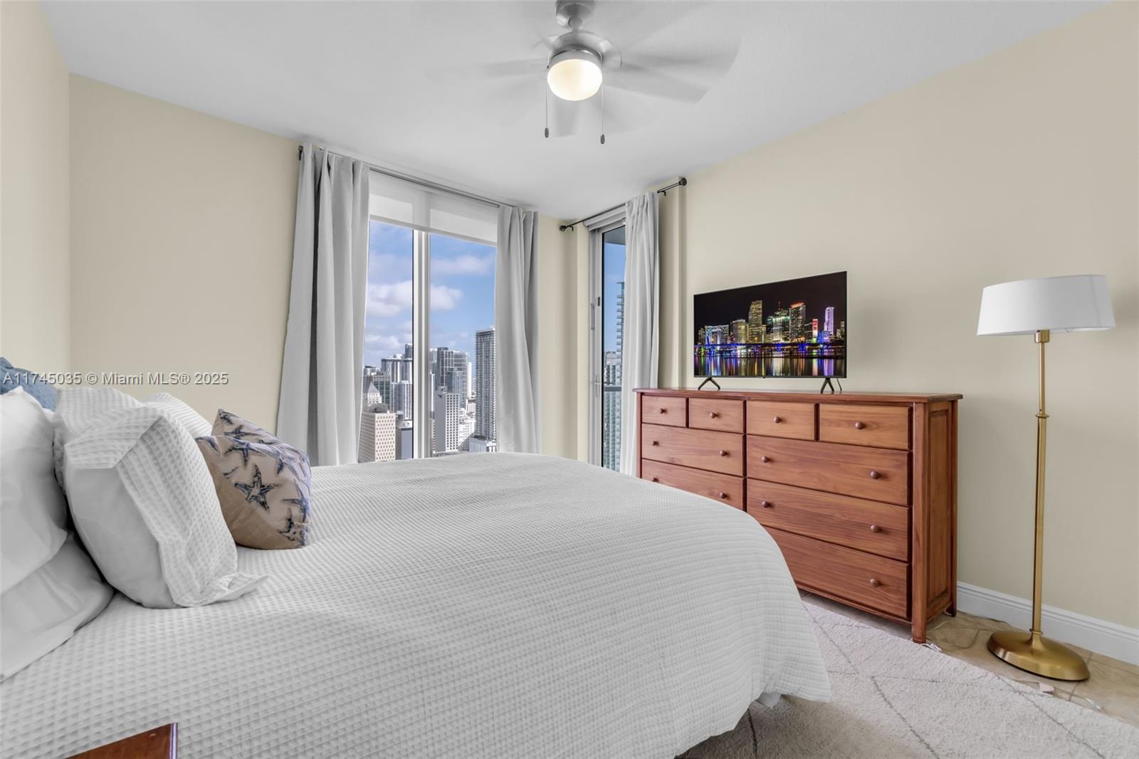 Breathtaking water views from these 3 beds, 3 bath corner unit on the 38th floor with 180-degree river and city views and a wraparound balcony. The Italian-designed kitchen features an island, stainless steel appliances, and granite countertops. Floor-to-ceiling impact windows provide ample natural light. Large closet space. Located in the vibrant Brickell area, just steps from restaurants, offices, nightlife, metro rail, Publix & Brickell City Centre. Building amenities include a two-story gym, spa, business center, pool, jacuzzi, sauna, theatre, party room, restaurant, and bicycle storage. This pet-friendly condo offers basic cable, internet, and one assigned parking space, with additional valet available. Vacant and easy to show! Don’t miss out!