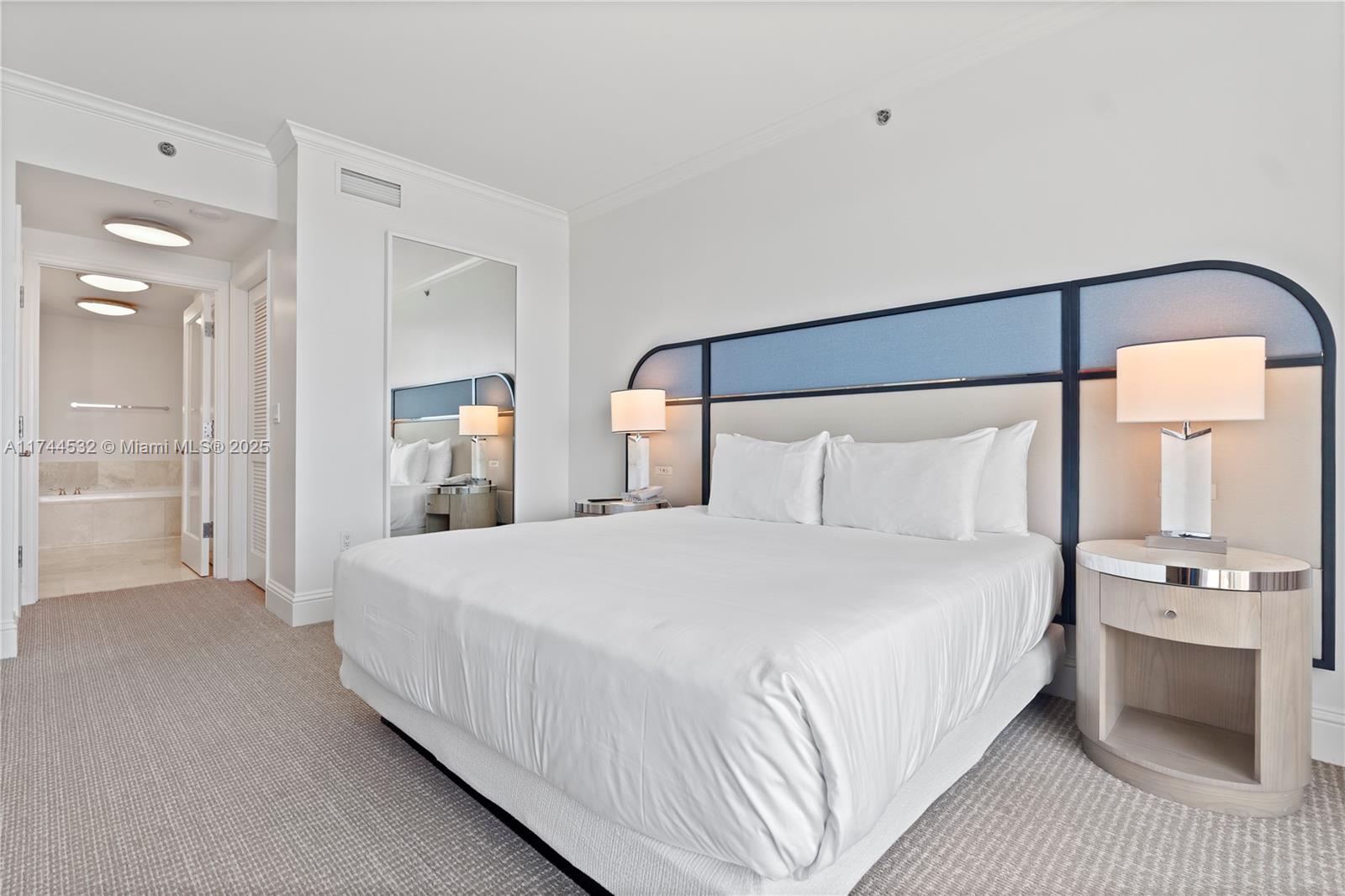 Experience luxury living in this beautiful 1 BD at Fontainebleau II, featuring breathtaking south-facing views of the ocean, city, & Intracoastal. This fully furnished, turnkey unit offers a private terrace, generous closet space, & spacious layout. Includes a king-size bed in the bedroom, sleeper sofa in living area, & a full kitchen. Enjoy the ease of resort-style, full-service living in one of Miami’s most iconic destinations. Enroll in hotel rental program & receive income while away! The Fontainebleau Resort offers luxury amenities on 22 oceanfront acres including award-winning restaurants, LIV night club, Lapis spa & state-of-the-art fitness center. Maintenance fees includes: AC, electricity, valet + daily free breakfast in the owner’s lounge.