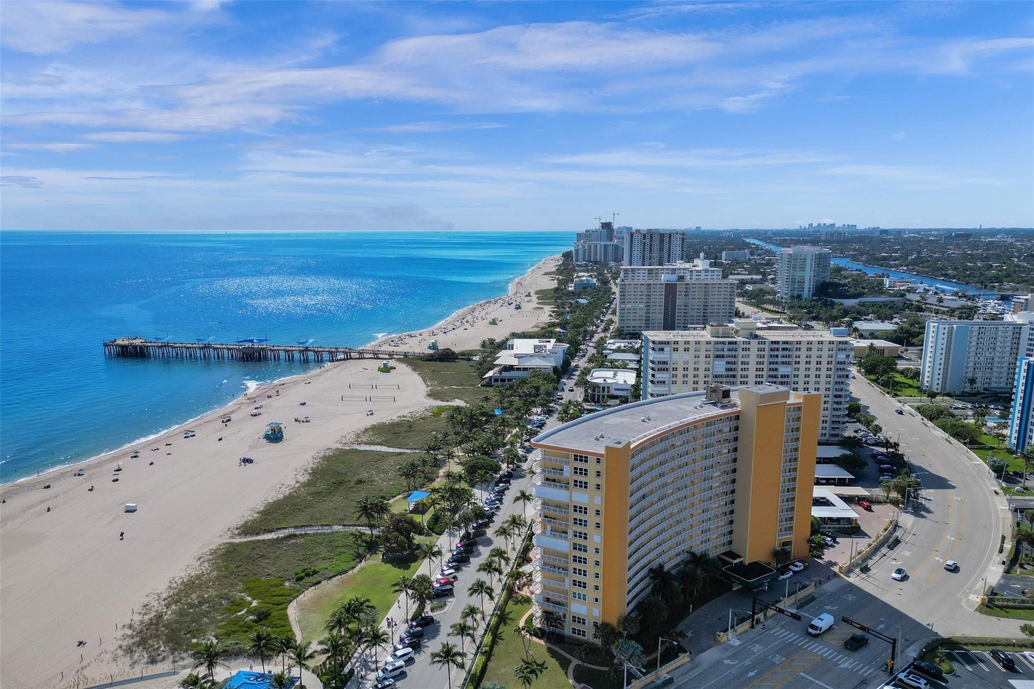INCREDIBLE CORNER UNIT WITH VIEWS OF OCEAN AND THE POMPANO PIER FROM A VERY SPACIOUS, WRAP AROUND PRIVATE BALCONY. THIS BRIGHT, SPACIOUS UNIT WITH IMPACT WINDOWS AND DOORS. UPDATED OPEN KITCHEN WITH STAINLESS STEEL APPLIANCES AND PLENTY OF CABINTRY. PRIMARY BEDROOM WITH WALK IN CLOSET AND A SMALLER CLOSET. CERAMIC TILE AND LAMINATE FLOORING, WASHER AND DRYER IN UNIT, EXTRA STORAGE SPACE, GARAGE PARKING WITH PLENTY OF GUEST PARKING. BUILDING OFFER BEAUTIFUL POOL AREA WITH BEACH ACCESS TO THE BEACH AND PIER. EXERCISE ROOM, COMMUNITY ROOM. SECONDS TO MANY RESTAURANTS AND SHOPPING. NEAR GOLFING, PICKLEBALL AND TENNIS.