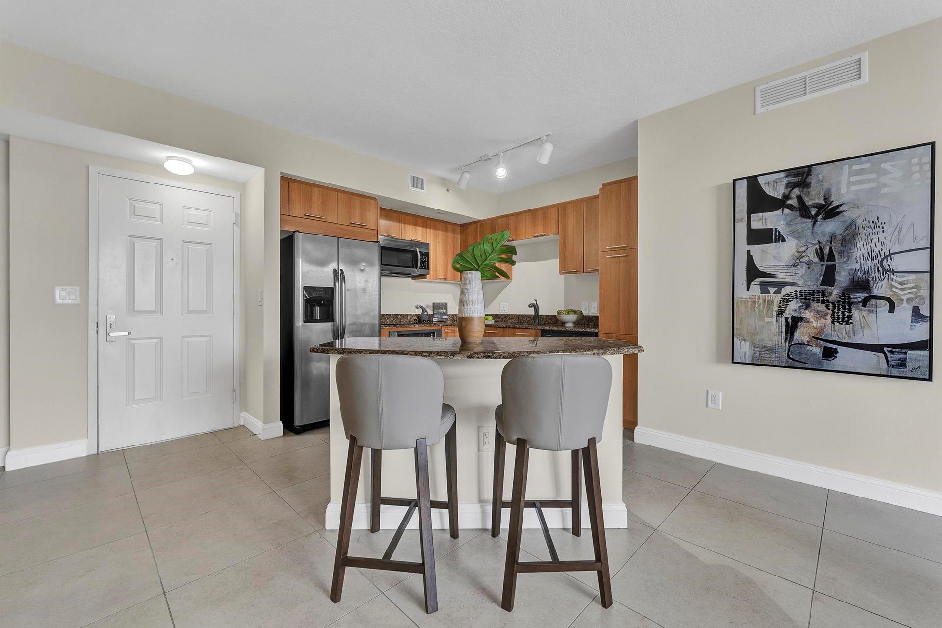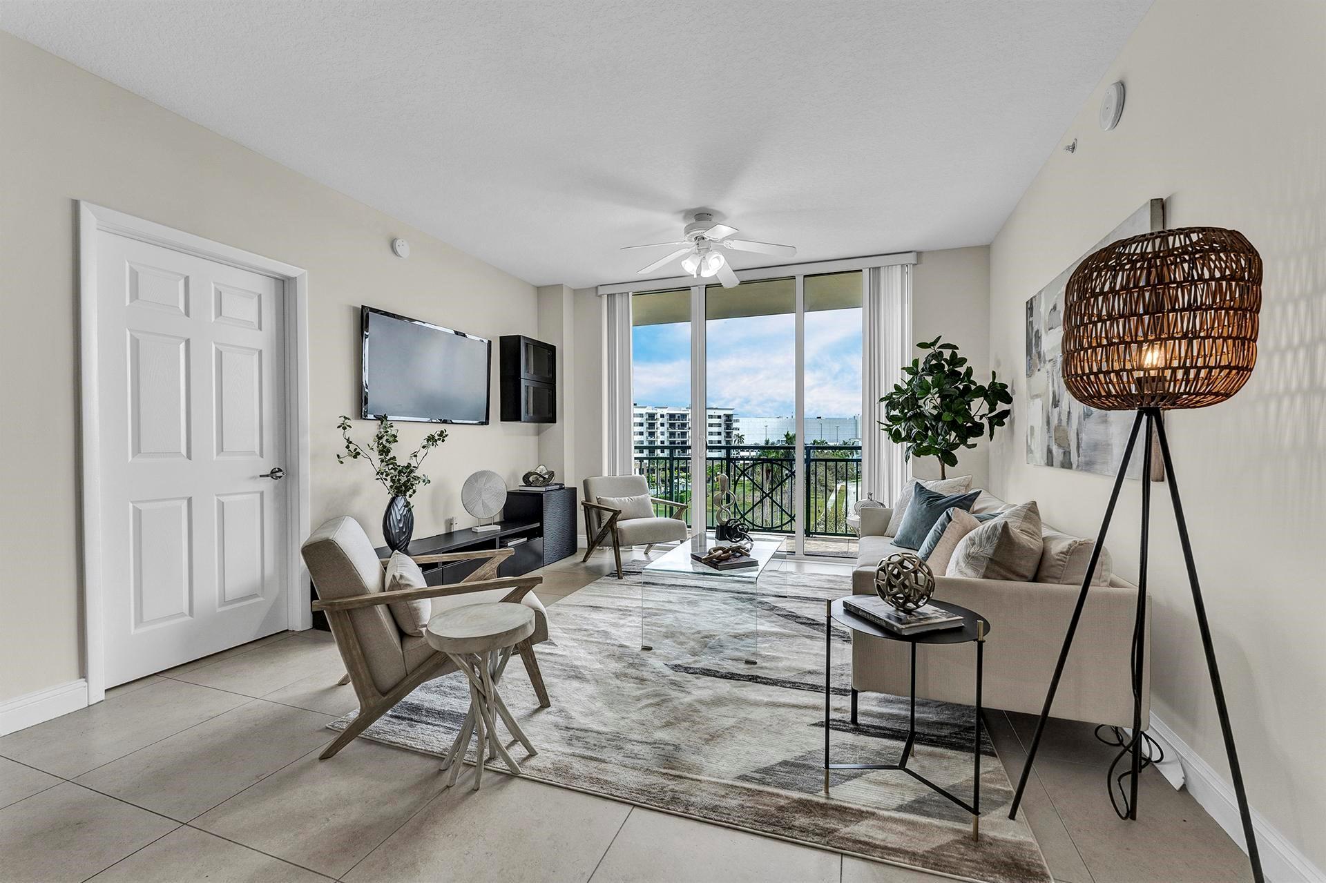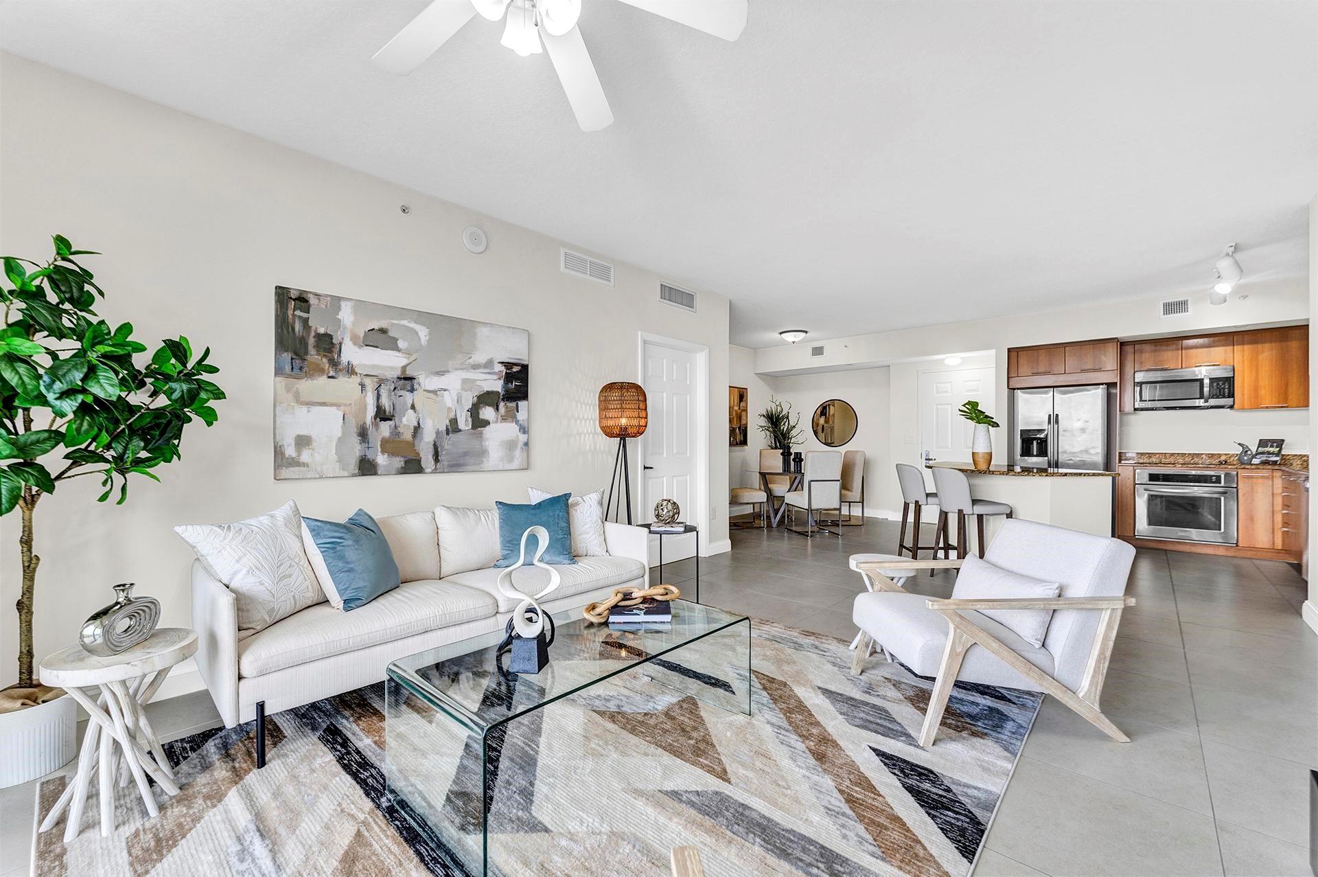Click on Virtual tour! This spacious/beautiful condo with a split floor plan is turn key! Modern tile floors throughout! Great natural light! Open kitchen features granite counters, stainless steel appliances, ample cabinet space, & island. AC replaced 2022! New cooktop 2023! Newer Washer/Dryer in the unit! Impact windows! All new paint! From the balcony you have vast views of water, gardens, & city views. Not staring into a neighbor's unit! Perfect for the buyer who wants all the top tier amenities! Resort-style amenities include a gorgeous pool, jacuzzi, fitness center, sauna, 24-hour manned security, & more. HOA fees cover cable, internet, & water. 2 covered garage spots! 2 pets up to 75 lbs each! Walking distance to Plantation Walk, restaurants, Publix, nail salon, & coffee shop!
