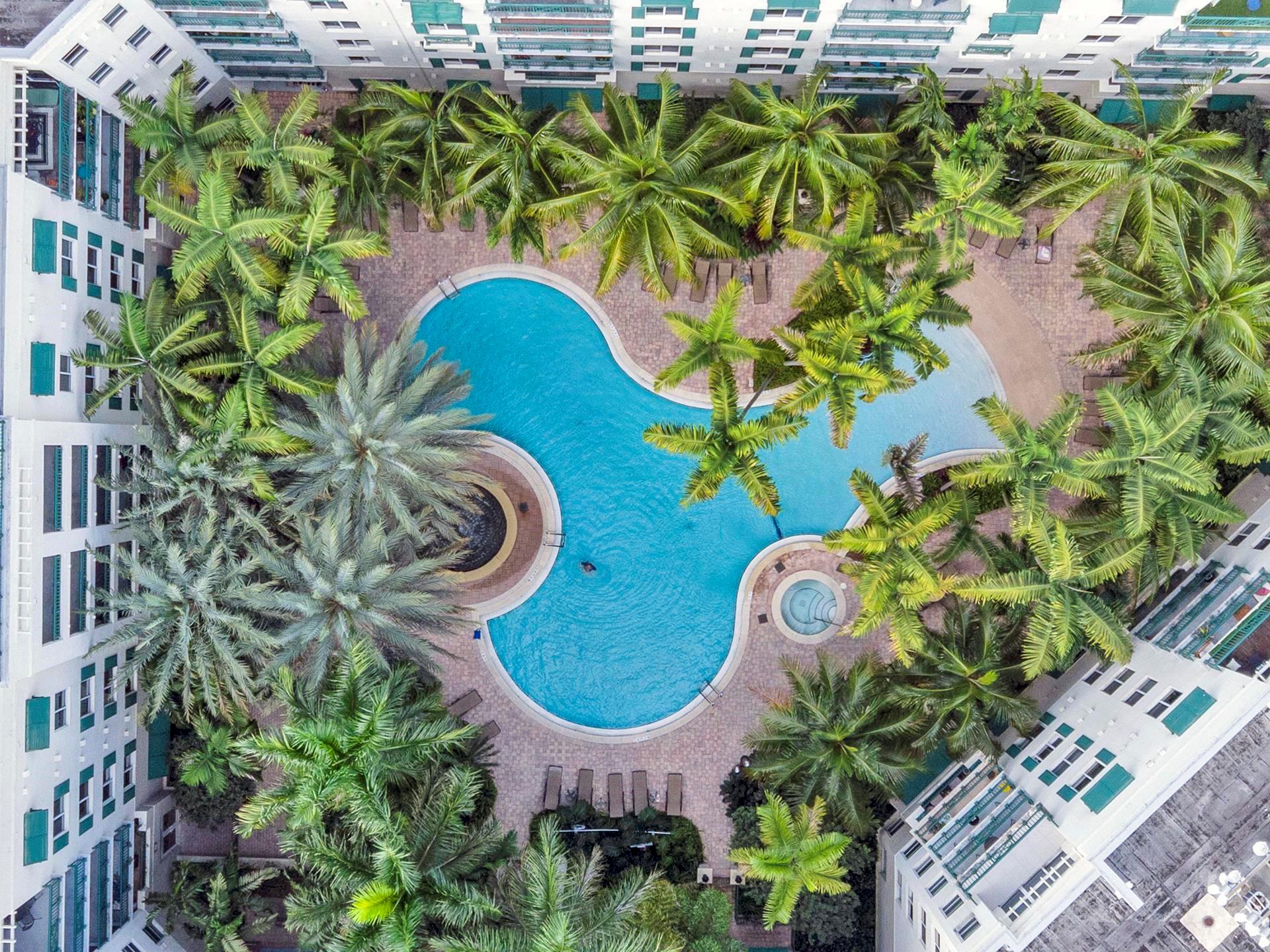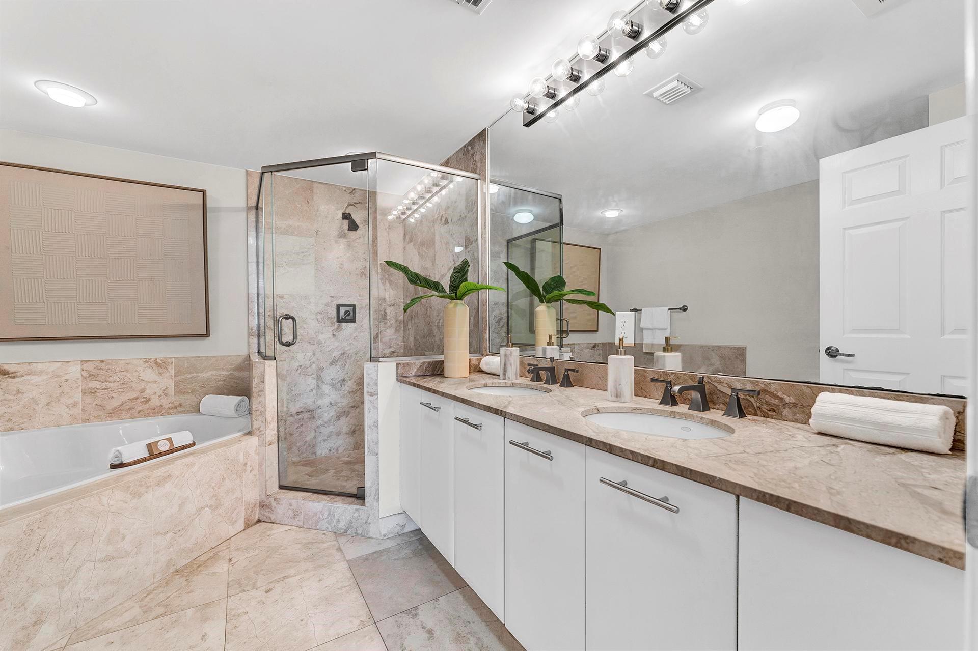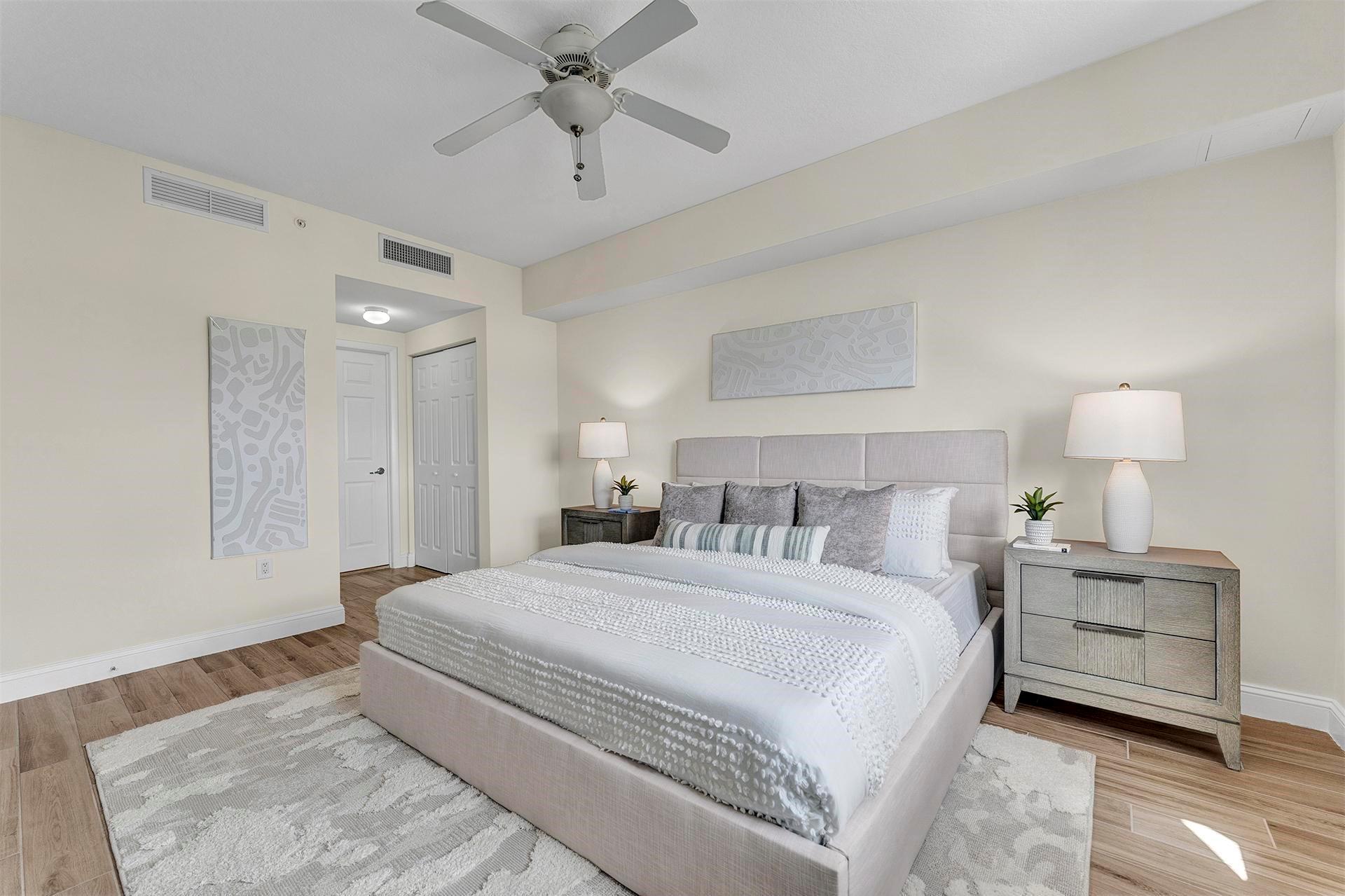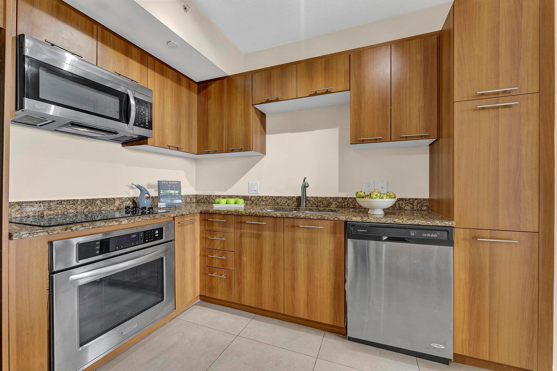 Click on Virtual tour! This spacious/beautiful condo with a split floor plan is turn key! Modern tile floors throughout! Great natural light! Open kitchen features granite counters, stainless steel appliances, ample cabinet space, & island. AC replaced 2022! New cooktop 2023! Newer Washer/Dryer in the unit! Impact windows! All new paint! From the balcony you have vast views of water, gardens, & city views. Not staring into a neighbor's unit! Perfect for the buyer who wants all the top tier amenities! Resort-style amenities include a gorgeous pool, jacuzzi, fitness center, sauna, 24-hour manned security, & more. HOA fees cover cable, internet, & water. 2 covered garage spots! 2 pets up to 75 lbs each! Walking distance to Plantation Walk, restaurants, Publix, nail salon, & coffee shop!