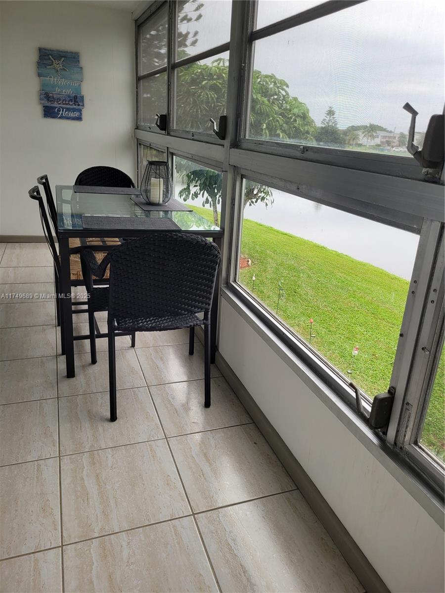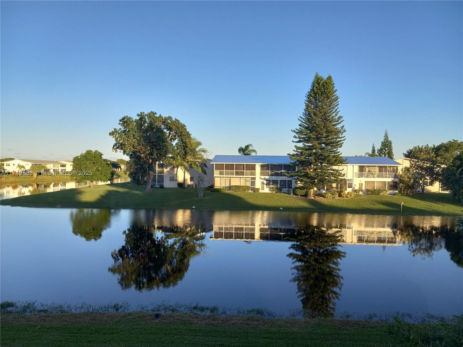 Directly on the water, Experience a stunning water view from this fully furnished turnkey second-floor unit with an enclosed patio. The building is in excellent condition. Century Village provides all the desired amenities and more. No road noise whatsoever from this stunning unit, enjoy the tranquil patio and all that Century village has to offer. This unit looks even better in person, bring your fussiest buyer. Lake view will not dissapoint.