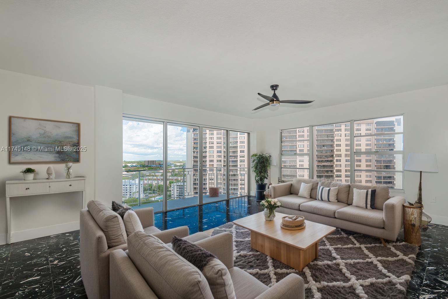 Enjoy breathtaking Bay and City views from every room in this beautifully renovated one-bedroom, 1.5-bath condo. With 861 square feet of thoughtfully designed living space, this home showcases premium finishes and meticulous craftsmanship. Bright and spacious living area is perfect for entertaining. Step onto the spacious balcony to unwind and soak in the refreshing easterly breezes. Maintenance includes hot water, cable TV, and valet parking for added convenience. Nestled within a gated 23-acre community, you're just minutes from Bal Harbour Shops, Aventura Mall, stunning beaches, both Miami and Ft. Lauderdale airports, and an array of fine dining options.
