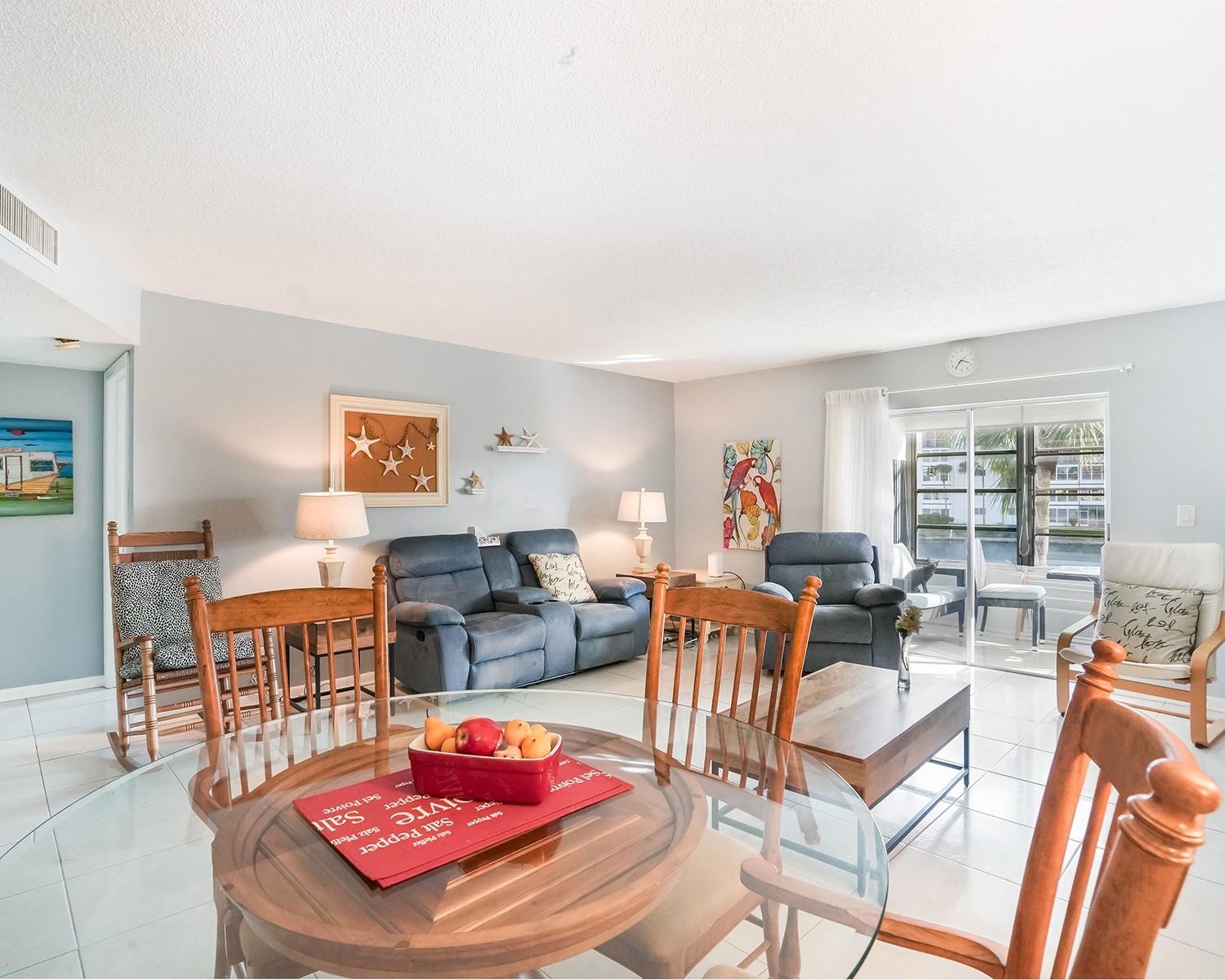 Welcome to this beautifully light and bright 1-bedroom, 1.5-bathroom condo in the desirable 55+ Castle Gardens community. This meticulously clean second-floor unit boasts ceramic tile flooring throughout and features a beautiful glass enclosed balcony overlooking the lake. Enjoy an updated kitchen with white cabinets, spacious bedroom, and lots of natural light throughout. Unit AC is 2009 and 40y Milestone completed. This unit comes partially furnished. Don’t miss the chance to call this lovely condo home!