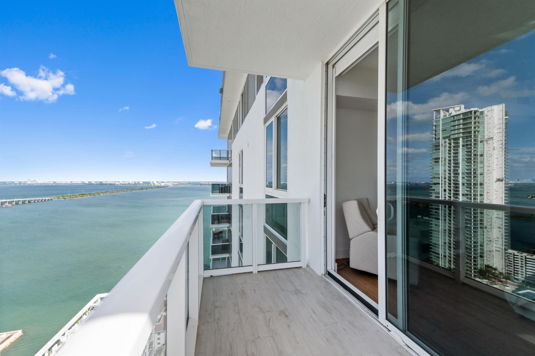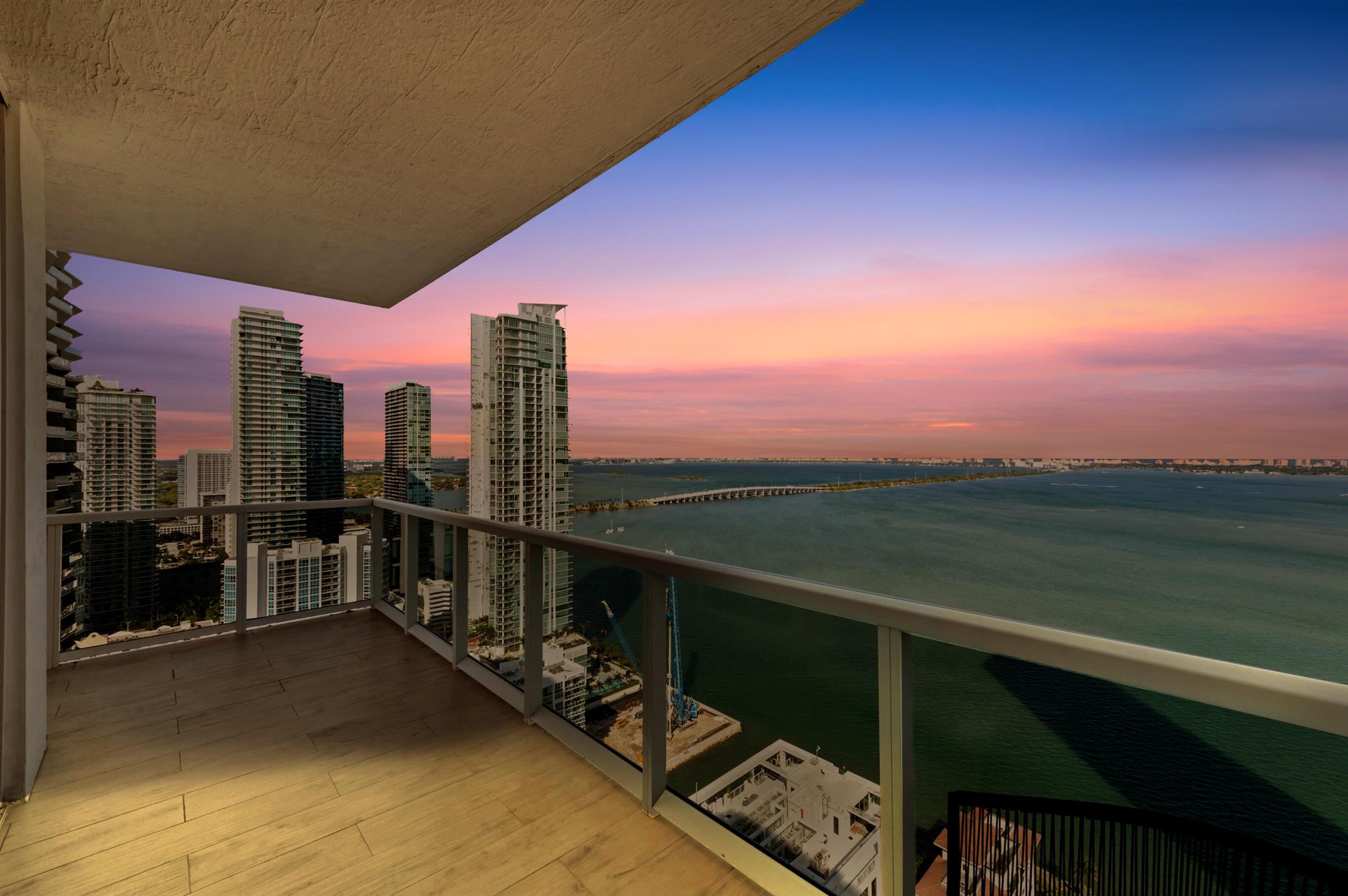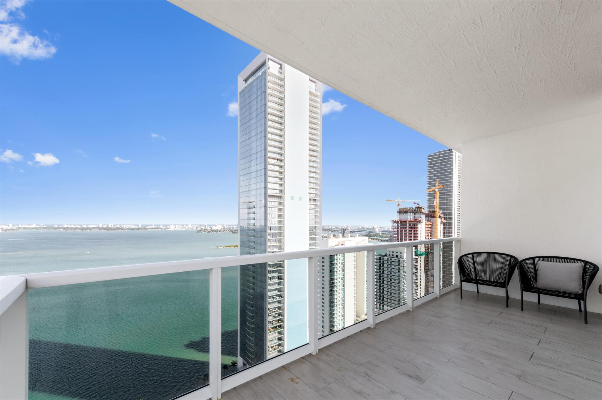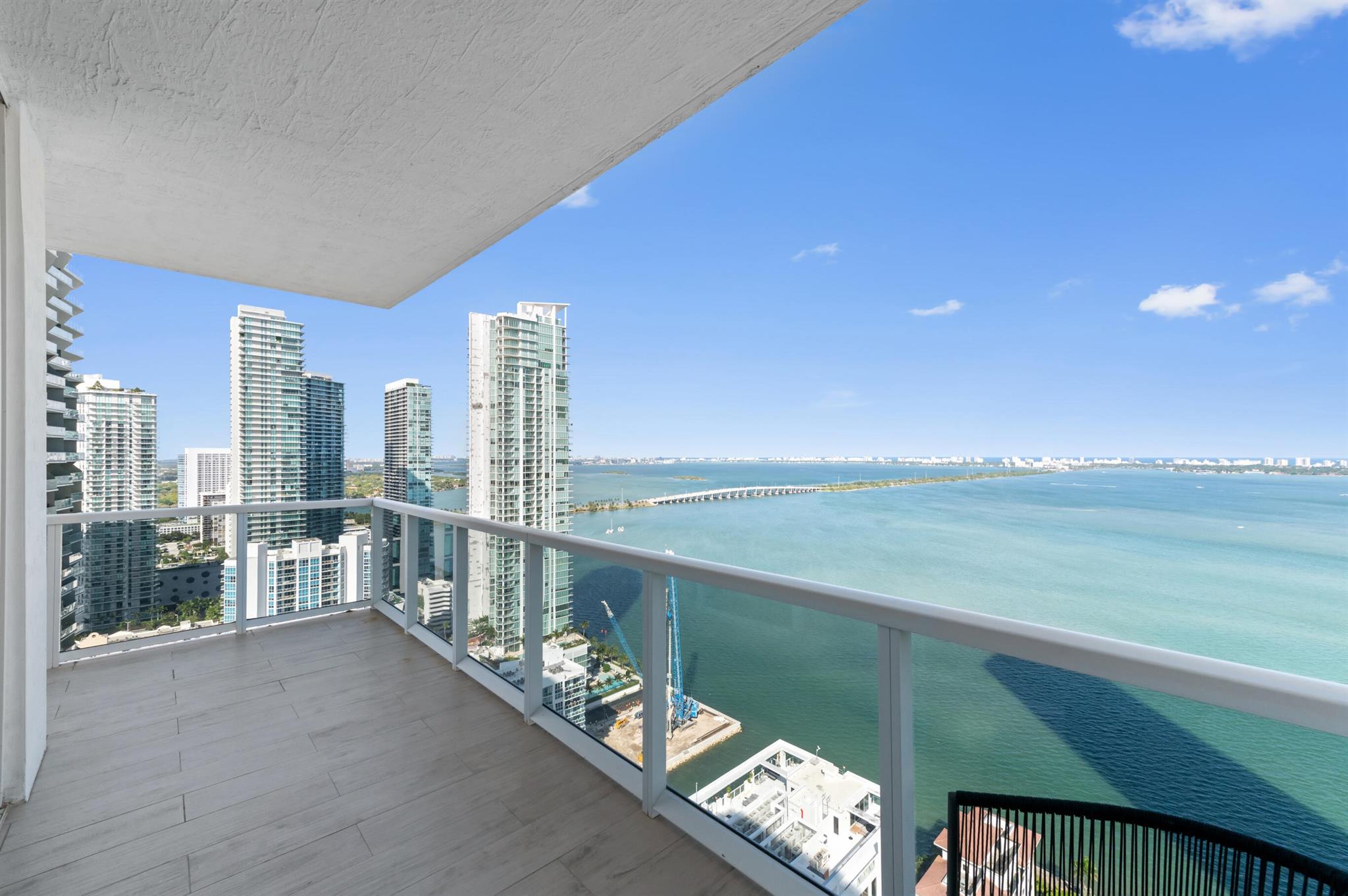 Step off the elevator into your foyer, greeted by breathtaking unobstructed views from this coveted Northeast corner Lower Penthouse. Enjoy 10ft ceilings exclusive to the LPH. With floor-to-ceiling impact glass, the open layout offers panoramic 180-degree bay views and natural light. Enjoy pink sunsets from the wrap-around terrace or the second balcony off the primary bedroom. This spacious penthouse features 3 bedrooms, 3 bathrooms adorned with custom window treatments, premium appliances, and Italian cabinetry. 2 assigned parking spaces, designated storage & 24-hour security included. Building amenities: pool, jacuzzi, yoga, gym, business center, BBQ area, and more. Located in Edgewater, walk to Whole Foods, Wynwood, parks, and just minutes from I-95.