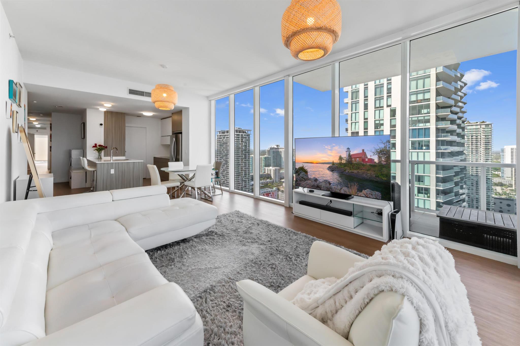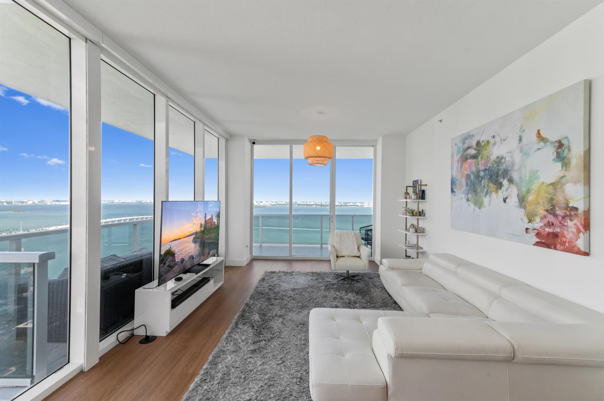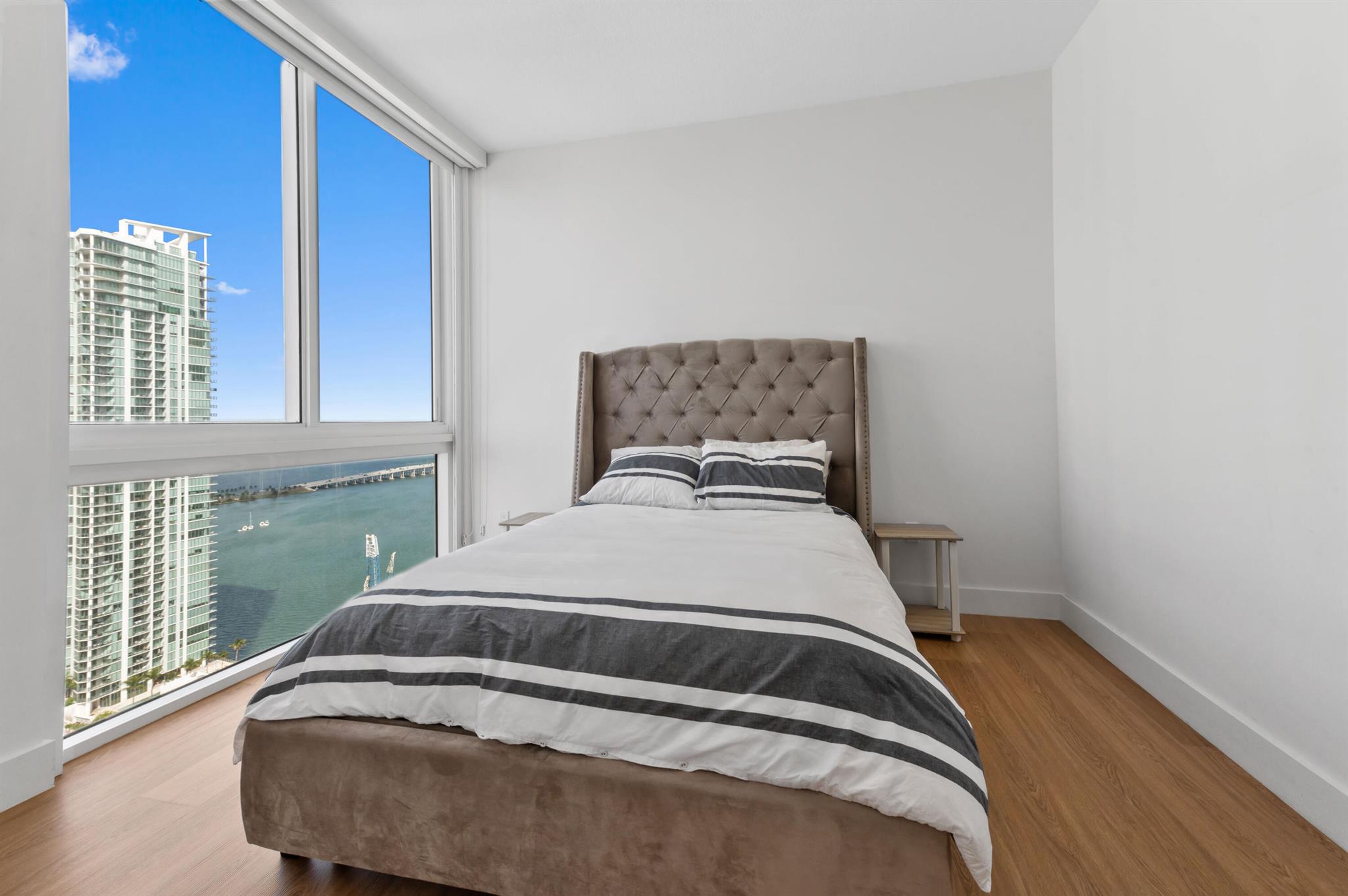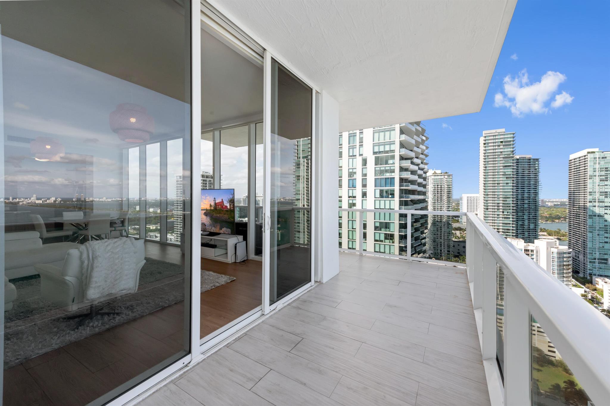 Step off the elevator into your foyer, greeted by breathtaking unobstructed views from this coveted Northeast corner Lower Penthouse. Enjoy 10ft ceilings exclusive to the LPH. With floor-to-ceiling impact glass, the open layout offers panoramic 180-degree bay views and natural light. Enjoy pink sunsets from the wrap-around terrace or the second balcony off the primary bedroom. This spacious penthouse features 3 bedrooms, 3 bathrooms adorned with custom window treatments, premium appliances, and Italian cabinetry. 2 assigned parking spaces, designated storage & 24-hour security included. Building amenities: pool, jacuzzi, yoga, gym, business center, BBQ area, and more. Located in Edgewater, walk to Whole Foods, Wynwood, parks, and just minutes from I-95.