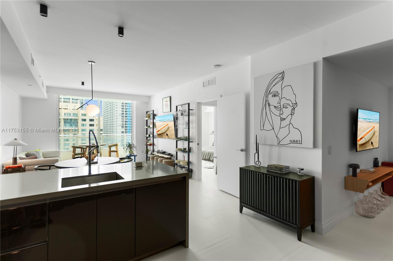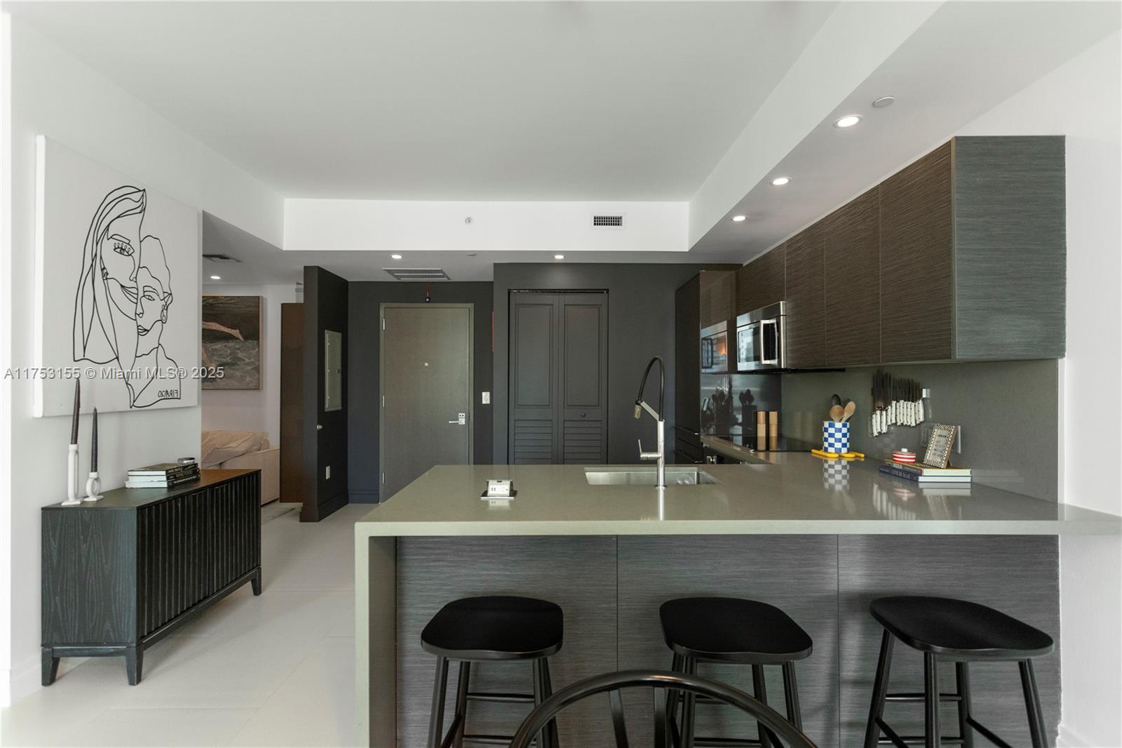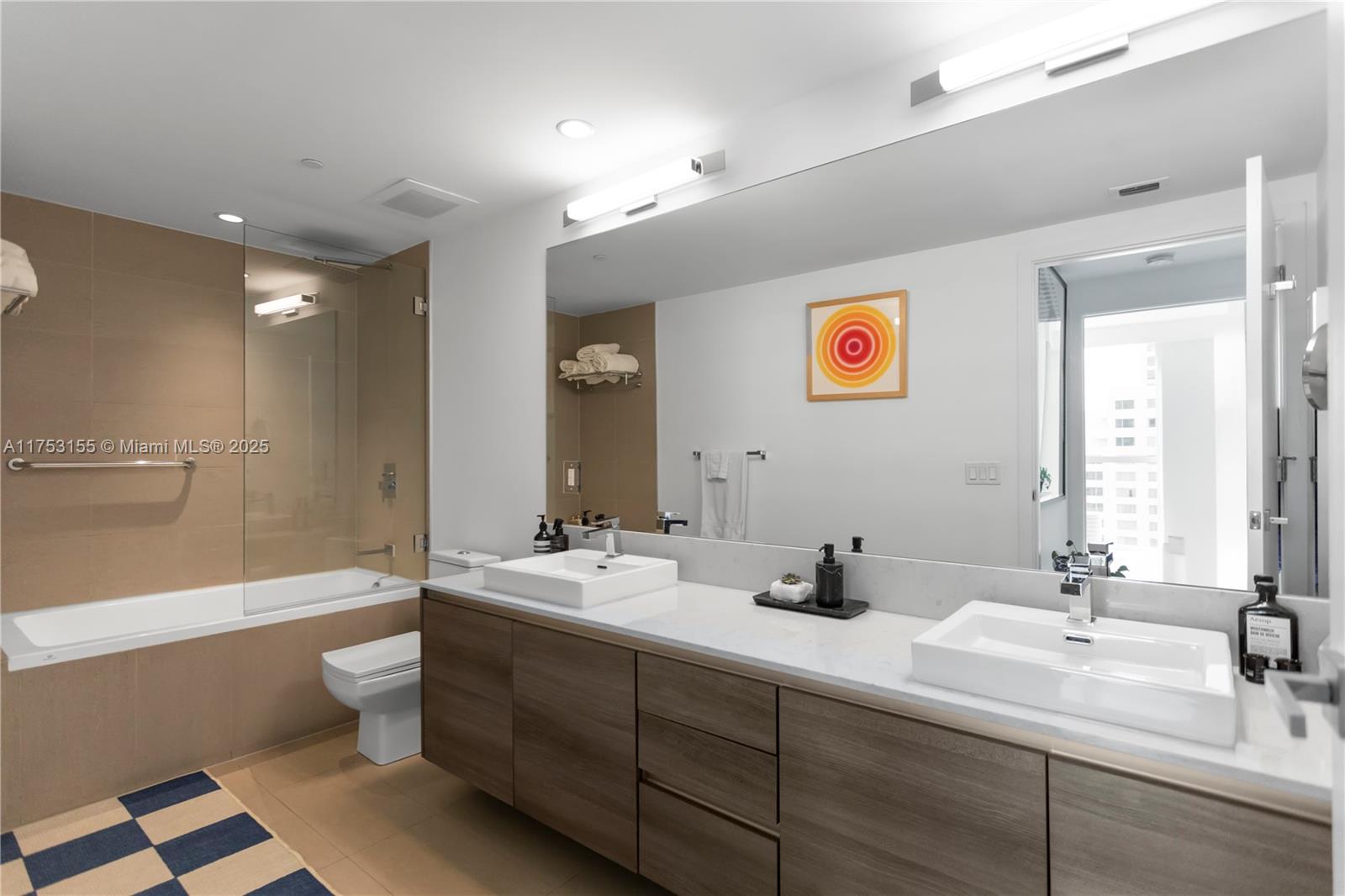 Stunning 1-bed + den, 1.5-bath luxury condo in the heart of Brickell, Miami’s most sought-after location. Enjoy skyline views and a spacious open layout with porcelain flooring and modern fixtures. The den is ideal as a second bedroom, office, or whatever suits your lifestyle. This home features premium Bosch appliances and custom built-in closets. The building offers top-tier amenities, including a lap pool, hot tub, BBQ cabanas, gym, sauna, steam room, business center, children’s playroom, 24/7 security, valet, and front desk services. The property is meticulously maintained and fosters a welcoming, family-friendly atmosphere, including your furry companions with a pet walk on site. Seller is open to selling the unit furnished for an additional price—details available upon request.
