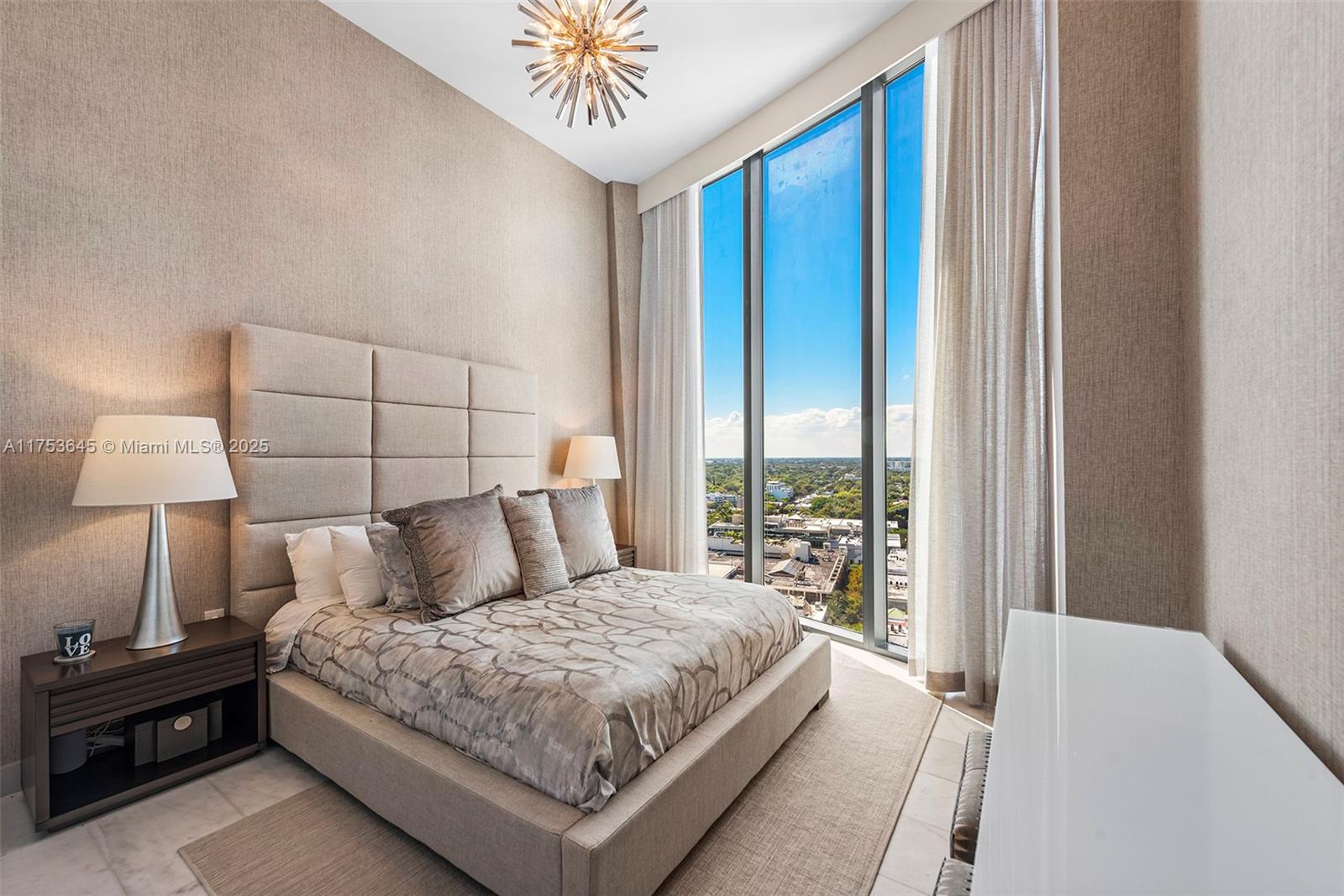Experience elevated luxury at Park Grove in this fully remodeled 19th-floor residence with breathtaking Biscayne Bay views. Completely renovated and re-designed by Adriana Hoyos, this 3-bedroom, 3.5-bath home features white marble floors, custom millwork, and an Italkraft kitchen with Sub-Zero fridge/freezer, Wolf gas range, and steam oven. The spacious primary suite offers a private balcony, dual walk-in closets, and a spa-style bath with soaking tub and double vanities. Two en-suite bedrooms, an oversized office with built-ins, and a hidden storage wall complete the layout. Five-star amenities include 24/7 valet, concierge, 4 pools, gym, spa, private dining, wine cellar, and theater. Enjoy the ultimate Coconut Grove lifestyle