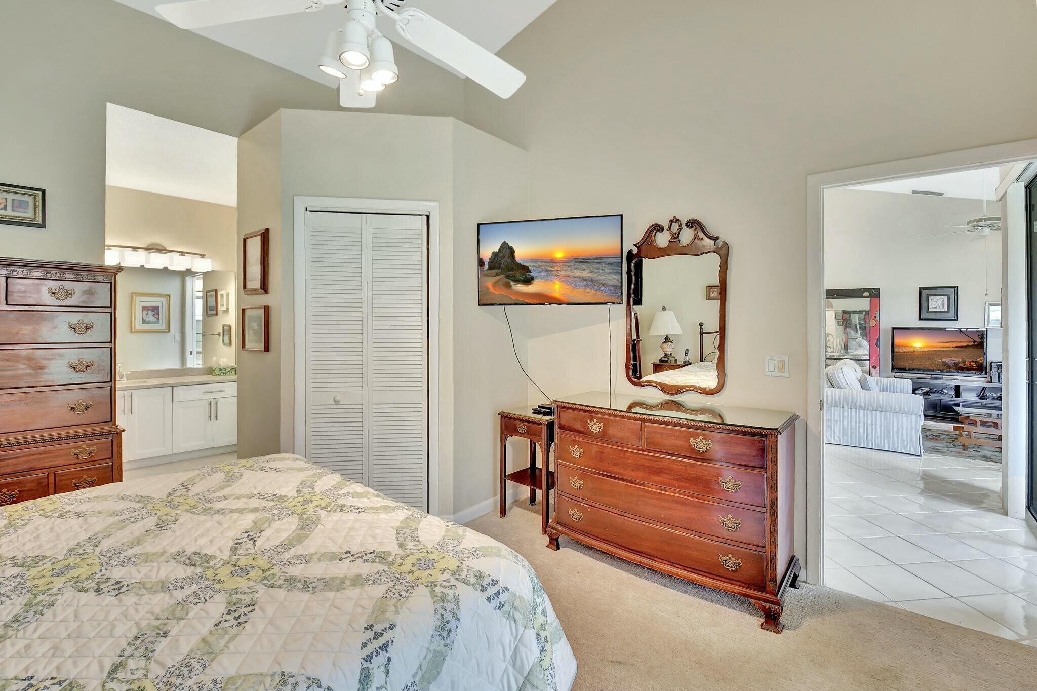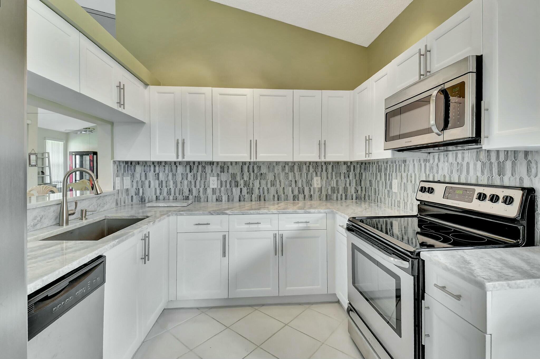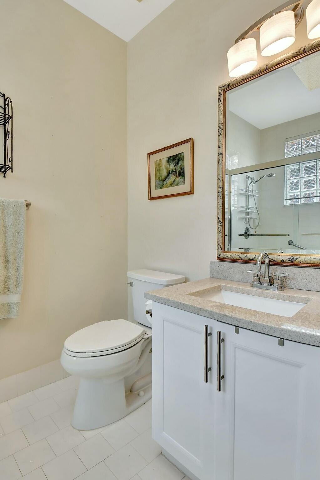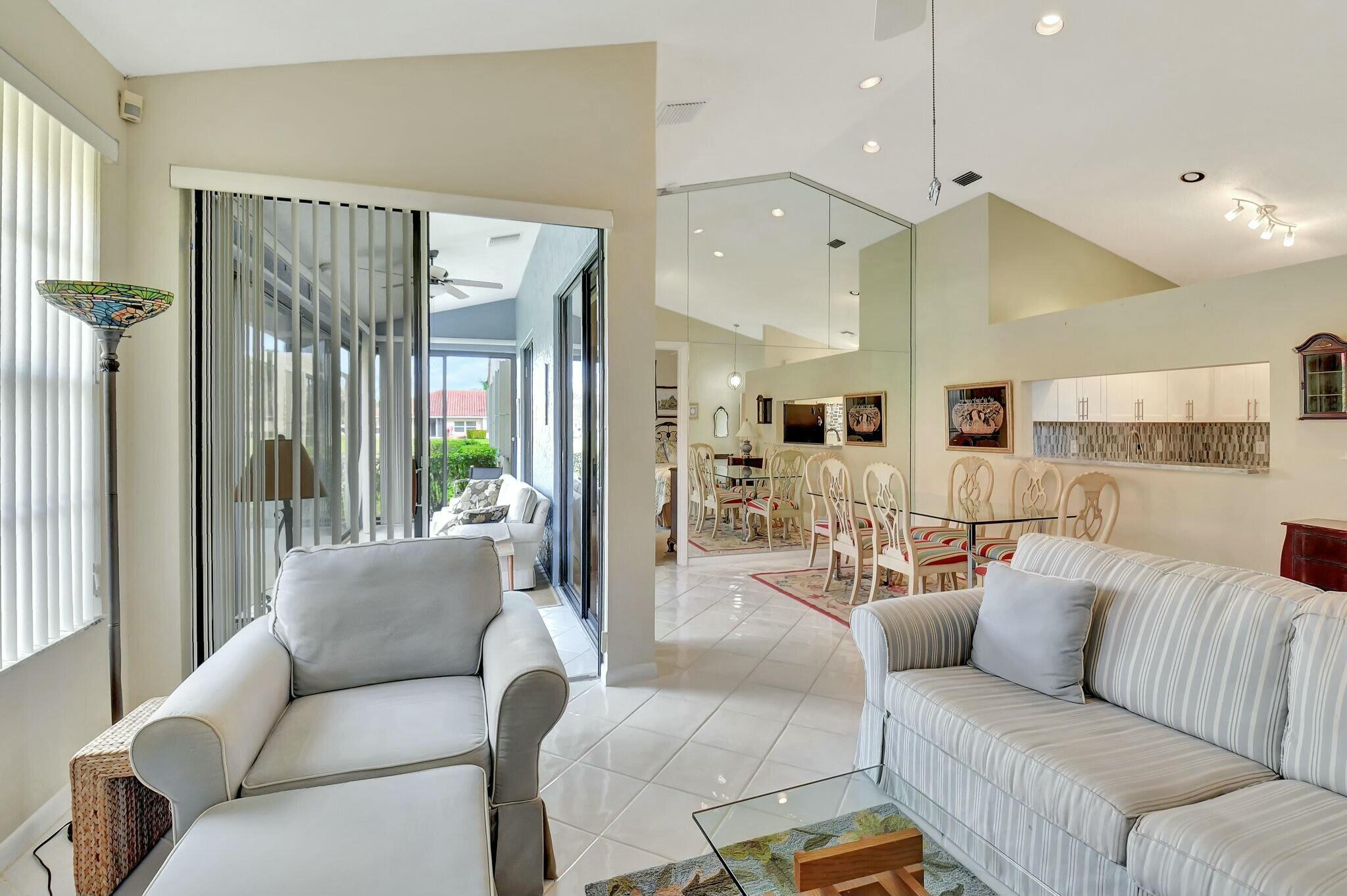 Beautifully maintained villa is ready for its new owner. This lovely 2 bedroom, 2 bath, one car garage unit has been meticulously cared for. Water heater was replaced in 2020. The kitchen is equipped with newer quartz countertops (2022), backsplash and refaced kitchen cabinets. The primary bathroom has also been renovated including a new glass shower enclosure. The primary closet has been fitted to maximize space and organization. Carpeting was replaced in both the primary and guest bedrooms. The living room/dining room are open making it great space to entertain family and friends. The enclosed Florida room is a perfect spot to capture the view of the lake and enjoy your favorite beverage whether it's a cup of coffee in the morning or a nightcap before bed.