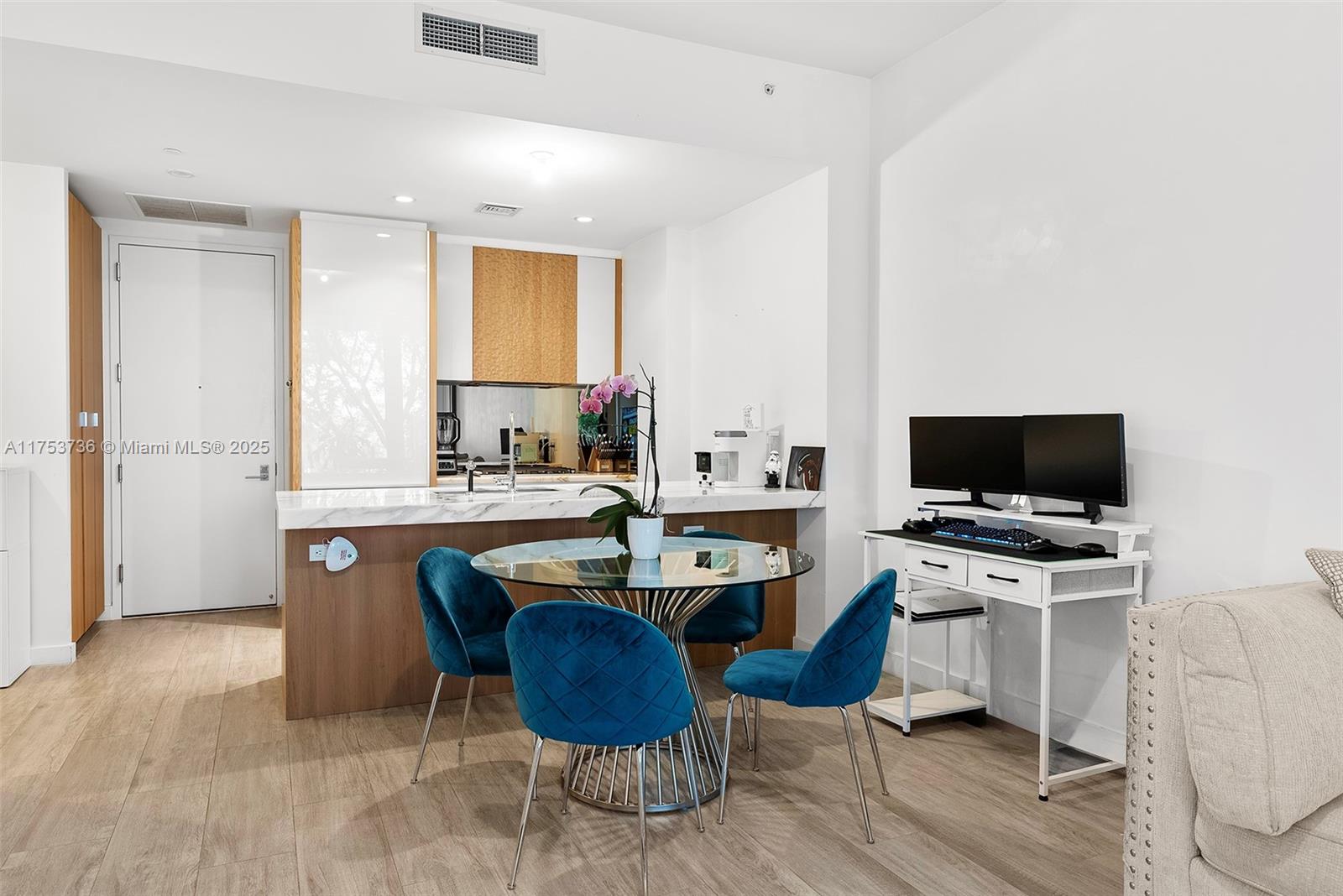 Welcome to Park Grove, Coconut Grove's ultimate luxury haven. This 1 bed, 1 bath retreat blends impeccable design with unparalleled comfort. The European-inspired kitchen boasts top-of-the-line appliances, a gas cooktop, marble countertops, a striking mirrored backsplash and a private terrace with glass walls that frame breathtaking views of lush greenery. Enjoy the convenience of a parking space and indulge in world-class amenities, including a resort-style pool with cabanas, Club Residence private rooftop pool, media room, top notch fitness center, a wellness lounge with steam room and sauna, on-site dining, a business center, a children’s play area, and more. With 24/7 concierge, valet, and security, every detail is designed for effortless luxury. Welcome home.