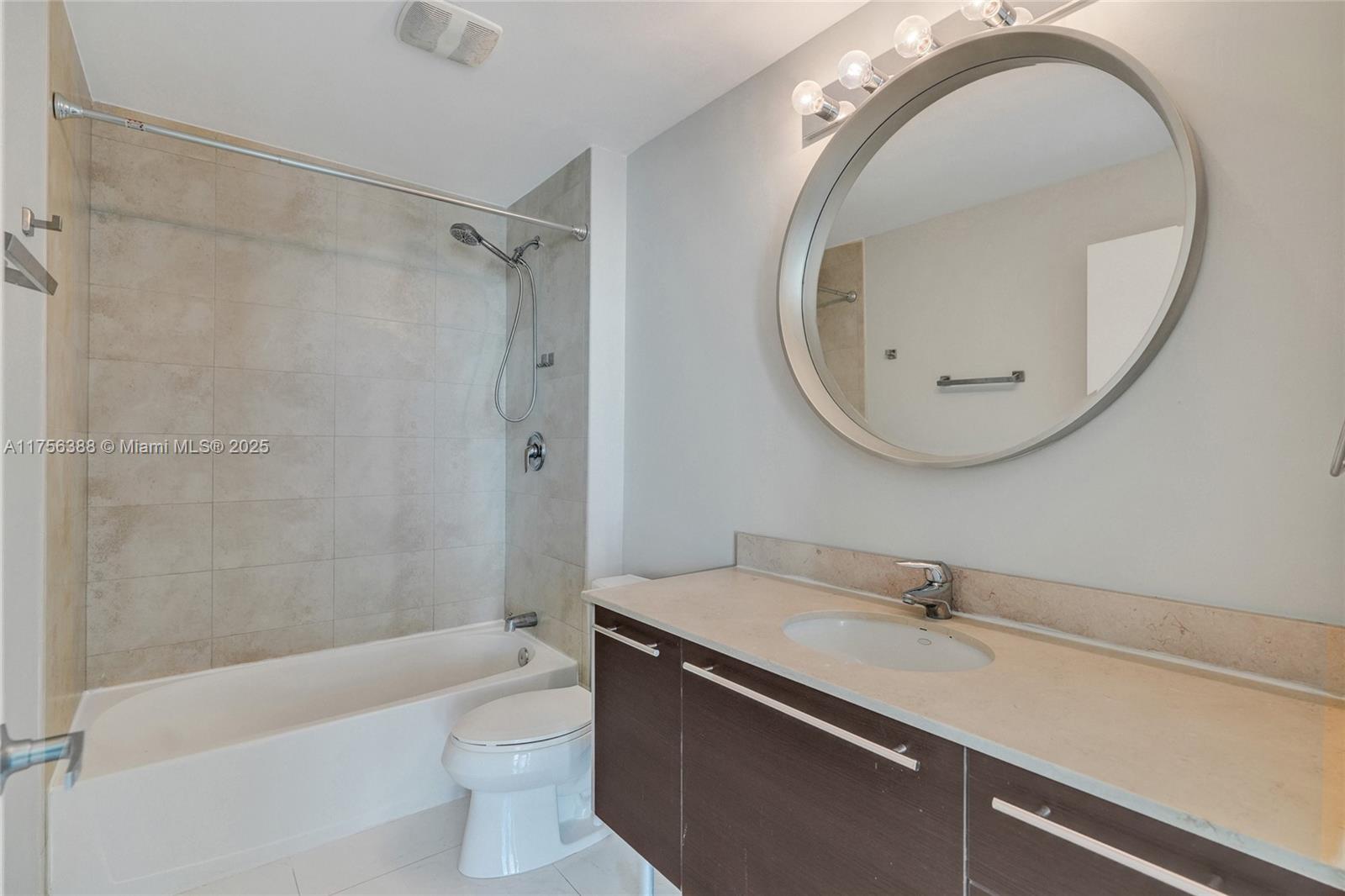 Welcome to Quantum on the Bay! Amazing water views from this high floor unit that exceeds expectations including a 1 Bedroom PLUS DEN Layout! Building offers full amenities including an amazing fitness center, 2 pools, split level club room, BBQ area, Med Spa, on side convenience store, 24 hour monitored security and gated access, salon, and valet. Walk to Wynwood and Edgewater neighborhoods and fas access to highways. Building is in front of Margaret Pace Park and walking distance to everything you need! Amazing investment either to own and enjoy or utilize the incredible rental potential. Easy to show, see it now. VACANT! Completely renovated and move-in ready! Brand-new flooring, and updated kitchen cabinets with a modern, refreshed finish.
