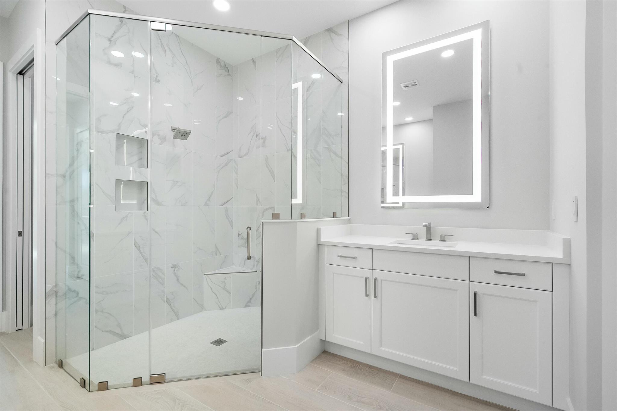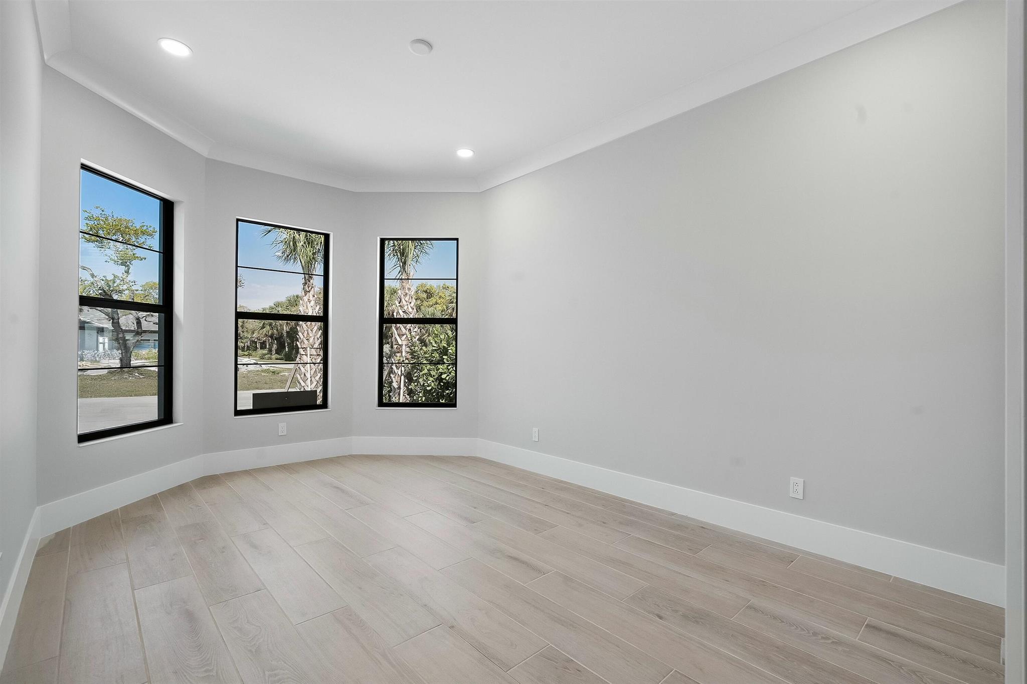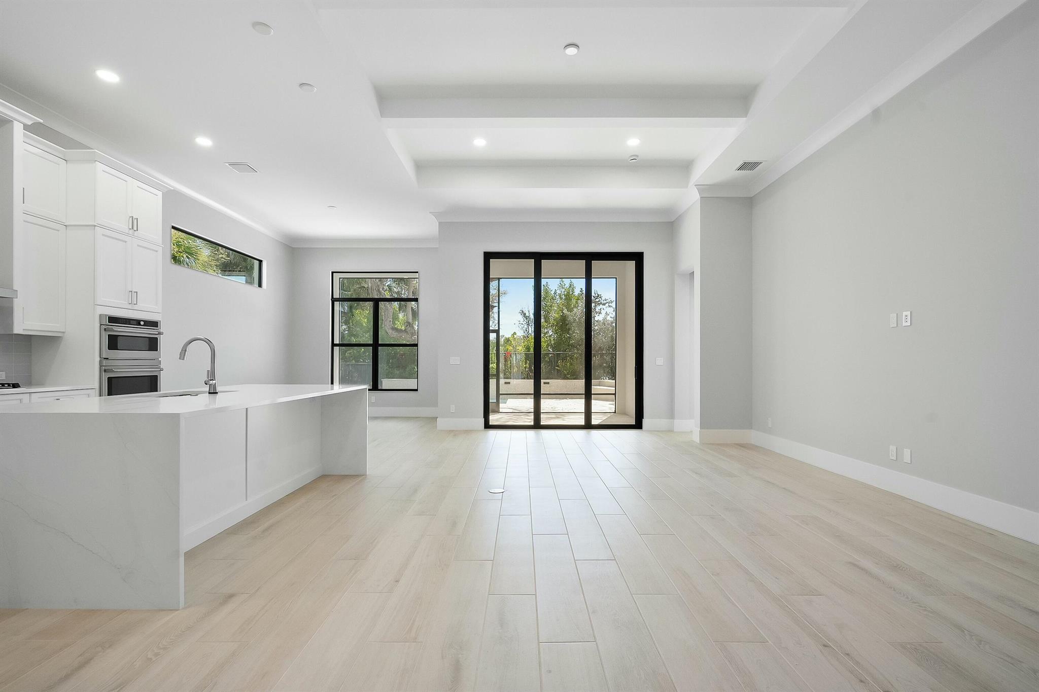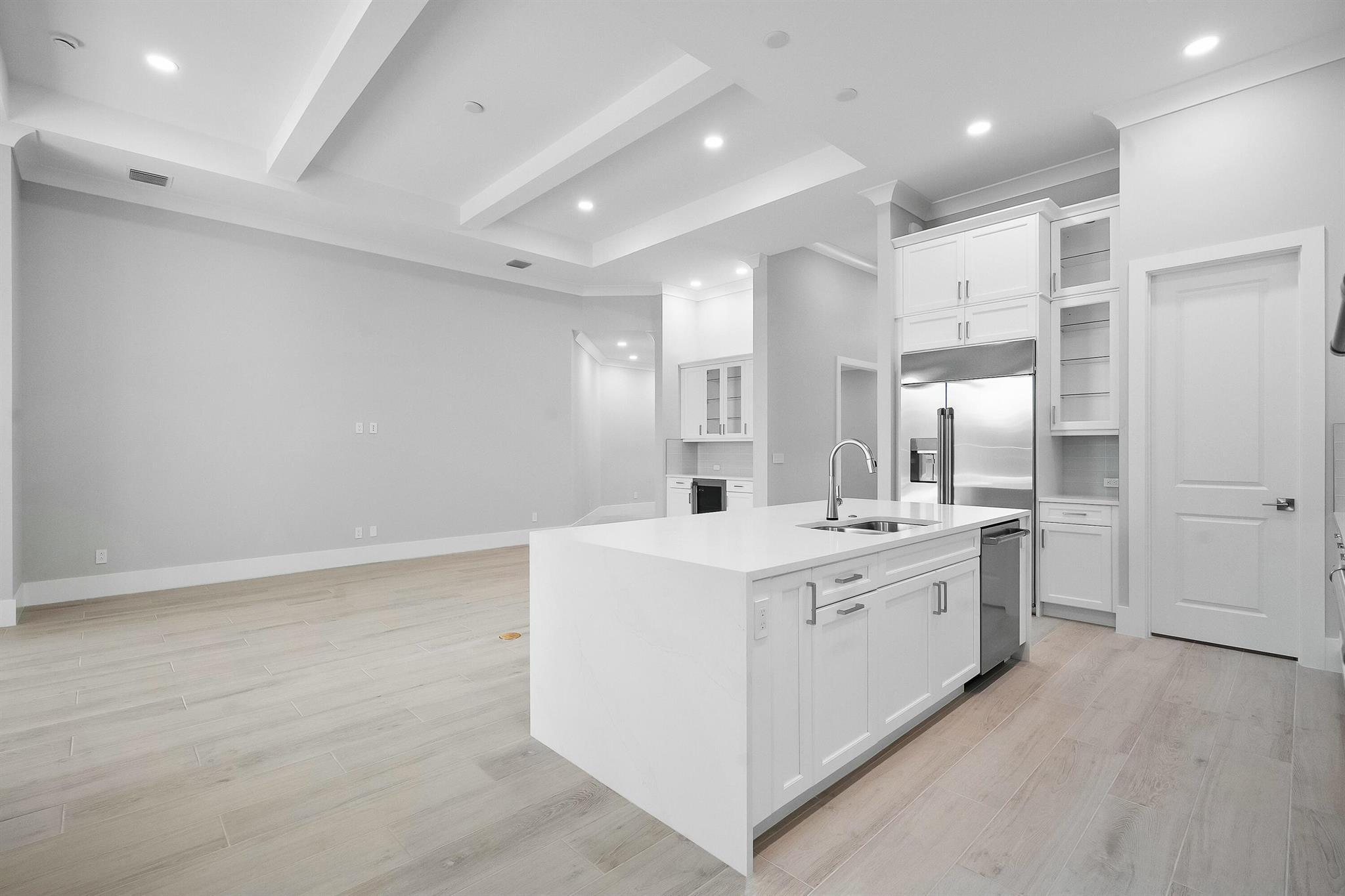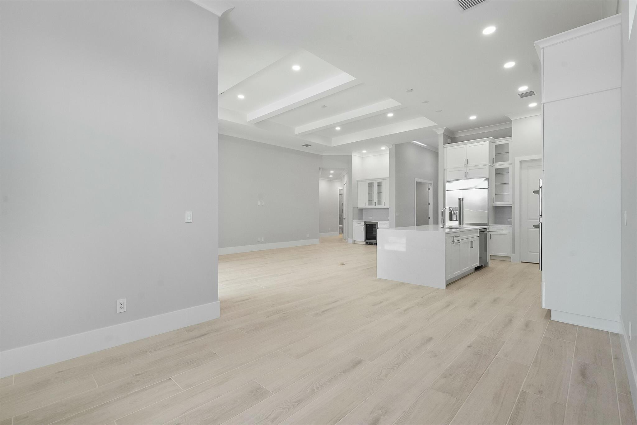 The Seabreeze Grande, a 4-bedroom, 3-bath villa with over 2366 finished square feet, offering the ultimate in-island living. Nestled in a charming Florida setting surrounded by lush landscaping, this home boasts an exquisite pool including 3-24'' sheer descent waterfalls and a built-in wrap-around bench surrounded by lush landscaping, perfect for embracing the carefree island lifestyle. The covered patio is screened in with rail fencing around the pool area. And a retractable screen on patio. Exceptional finishes include solid core interior doors, Arhus Classic Blanco wood-look tile flooring, volume ceilings, bay window in bedroom 2, quartz countertops, under-cabinet lighting, high-end Cafe appliances, Bar area with a beverage refrigerator. With the added option of a 4th bedroom or den