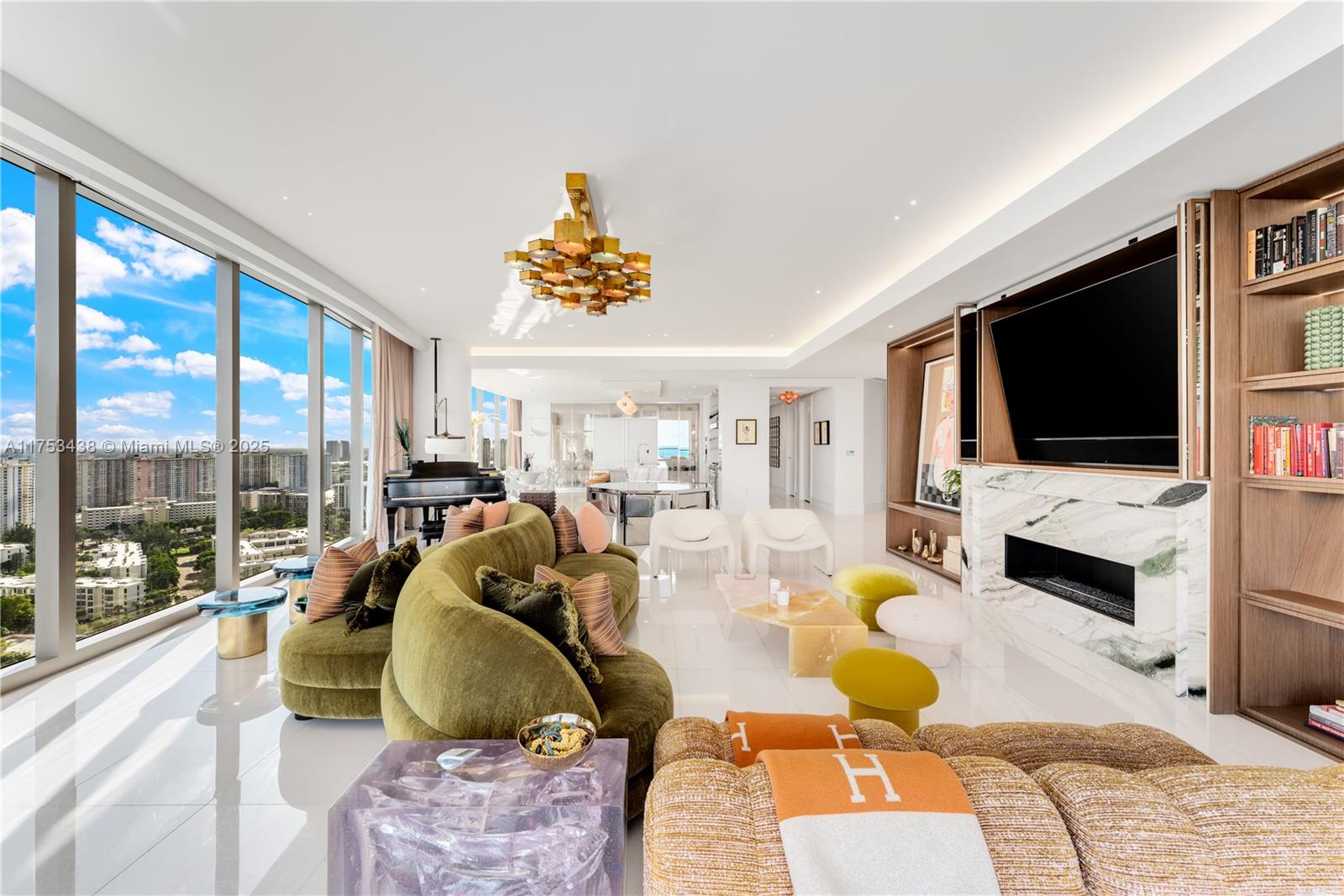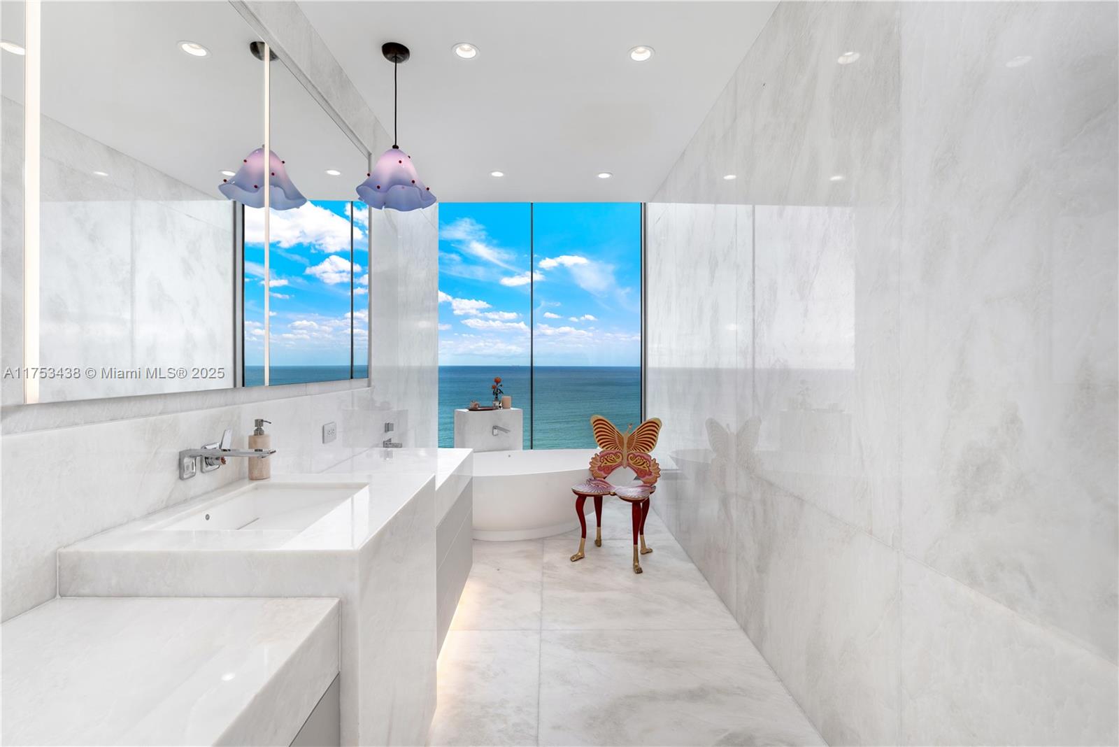 Experience unrivaled luxury at The Estates at Acqualina in this meticulously crafted 4-bed, 5.5-bath residence, offering breathtaking ocean & city views in Sunny Isles Beach. This sky-high sanctuary features a private elevator foyer, a chef’s kitchen w/ Wolf appliances, & a summer kitchen on the terrace. Significantly upgraded w/ top-level interior design, this rare 01-line layout offers more expansive living areas compared to the typical 5-bed configurations. The lavish primary suite boasts his-&-her baths & expansive custom walk-in closets, all framed by sweeping ocean vistas. Indulge in 45,000 SF of world-class amenities, including an ice-skating rink, bowling alley & resort-style pools. Just steps from the beach, embracing a vibrant and sophisticated oceanfront lifestyle.