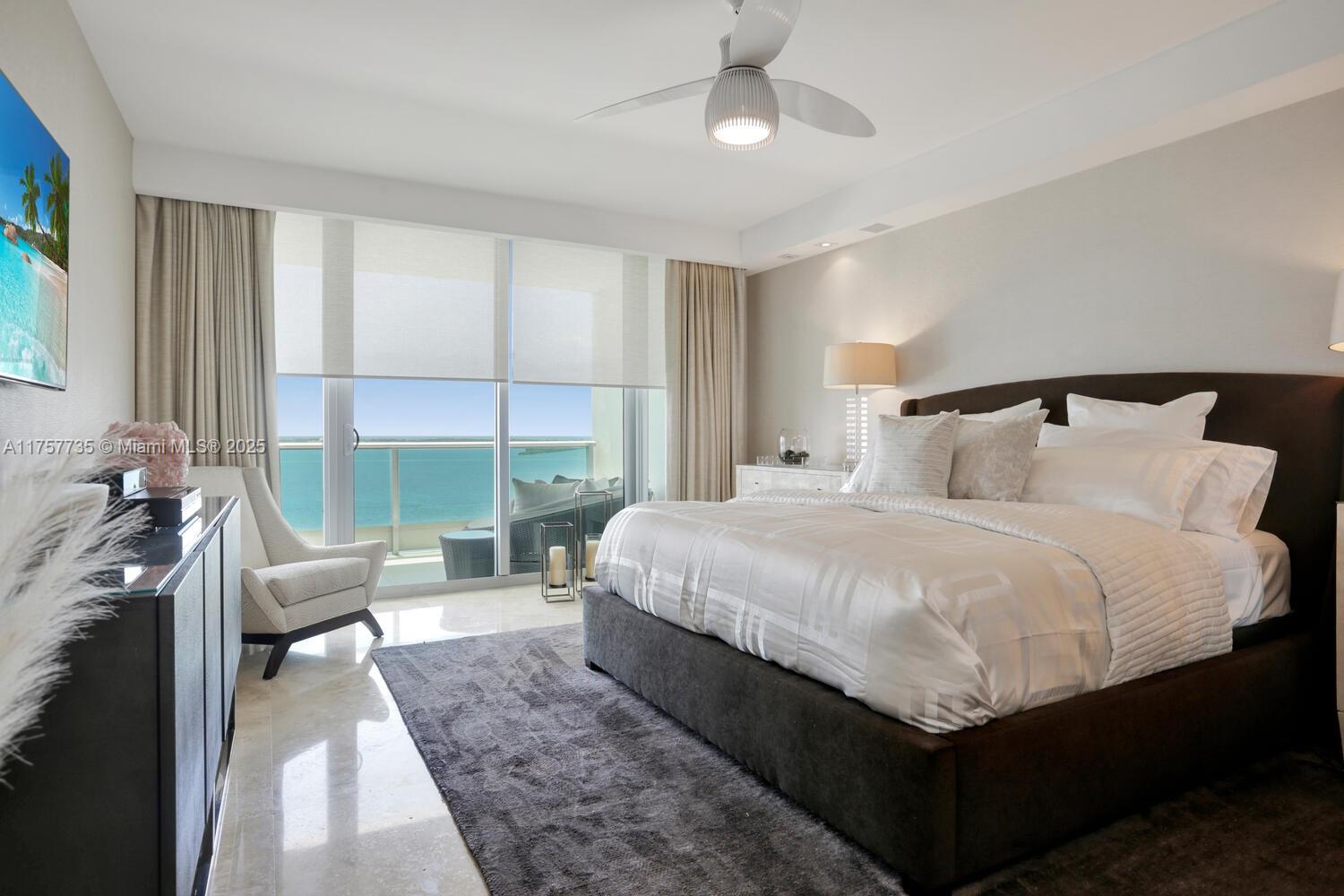 Step out of the elevator into your private foyer and enter this custom-designed, East-to-West flow - 3 bedroom, 3 bath 2,130 sq ft residence w/ panoramic, unobstructed views of the ocean, bay & skyline. Open floor plan. Gourmet kitchen offers top-of-the-line Miele, Sub-Zero appliances & dual wine fridges. Primary suite features 2 walk-in closets, spa-style bathroom w/dual vanities, soaking tub & separate walk-in shower. Enjoy indoor-outdoor living w/direct access from every room to the oversized terraces. Elegant marble flooring, floor-to-ceiling windows, remote-controlled window shades, custom lighting, designer doors. Assigned parking space. Jade Brickell amenities: 24-hour concierge, valet, two resort style pools, fitness center, spa, club room & more !