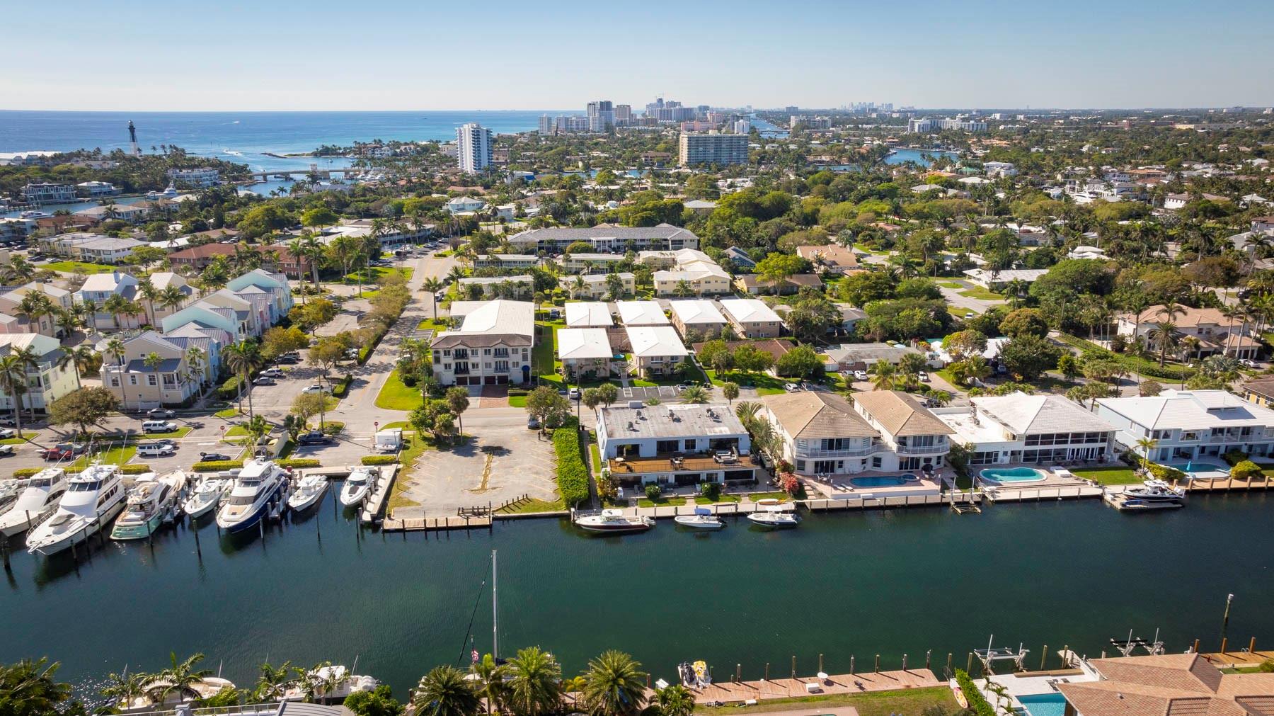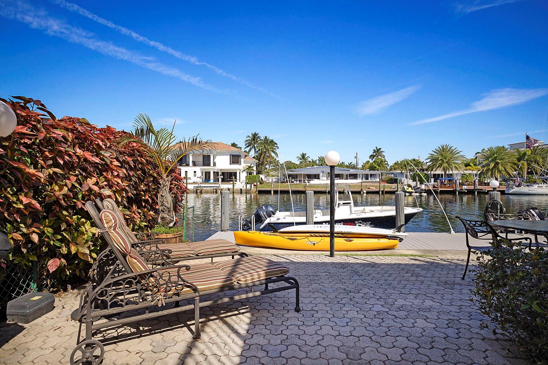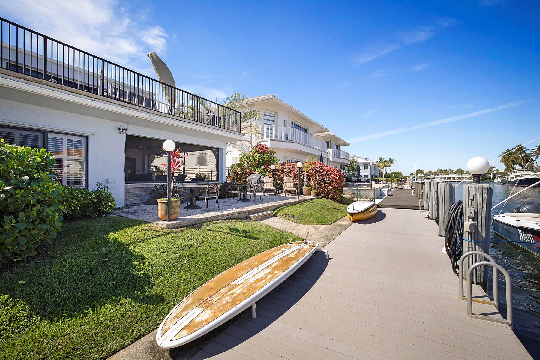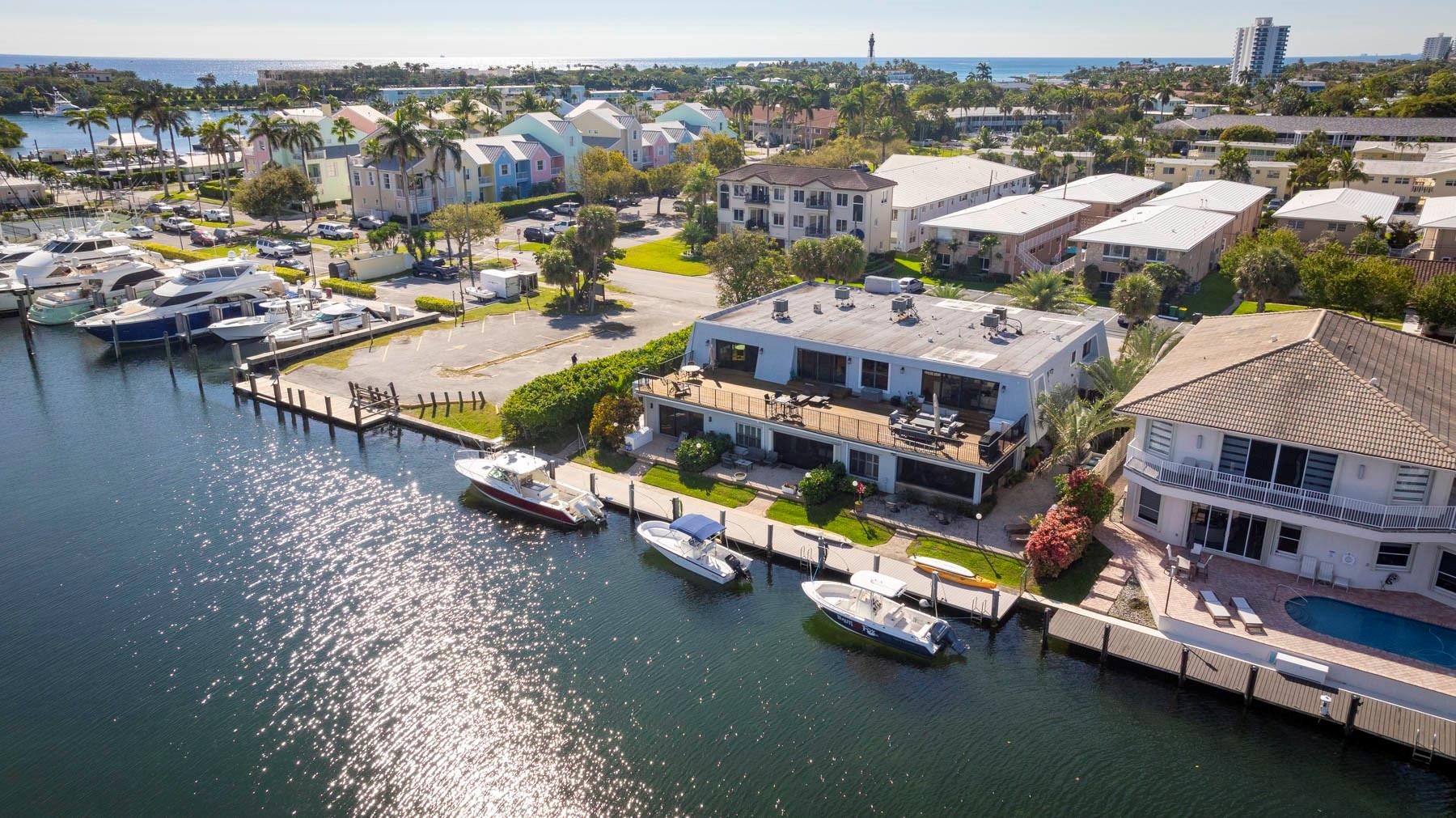 This is an unusual opportunity to own a 3-bedroom 2.5 bath ground floor unit remodeled in the Marina area of Lighthouse Point on the widest canal in the city, so close to the Hillsboro inlet, there is dock space when available on the property. The Unit was decorated by a designer in the last few years. Some of the features in this warm inviting home are stainless steel appliances, beautiful granite counter tops, decorative electric fireplace, full size washer and dryer and an amazing gourmet kitchen and butler bar pantry. Enjoy the use of a beautiful, screened Patio with T and G ceiling overlooking the beautiful wide water views. Launch your Kayak or Paddle Board from the dock and be in the Atlantic Ocean in 10 minutes (literally). Wired for Generator. You must see this gorgeous unit!