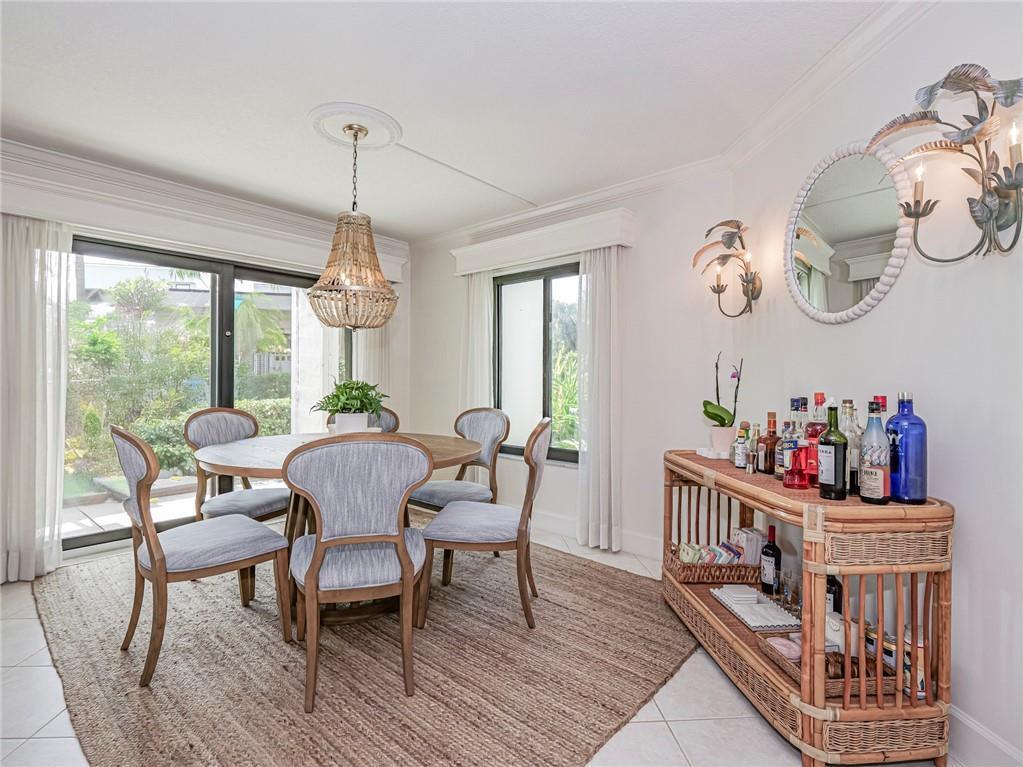 Oceanside Retreat East of A1A! Charm, tranquility, & comfort exude in this spectacular 1st floor unit with granted beach access & resort style heated pool. Desirable location a stone's throw to the ocean. Impact hurricane sliders and windows throughout. Covered assigned carport. Two screened porches for relaxation & effortless living surrounded by lush tropical fauna & landscaping! Stunning, bright, & airy renovated condo w/2019 A/C, crown moldings, custom millwork, modern kitchen opening to beautiful spacious dining area. Pet friendly (up to 25 lbs). Extra storage room. Furniture optional.