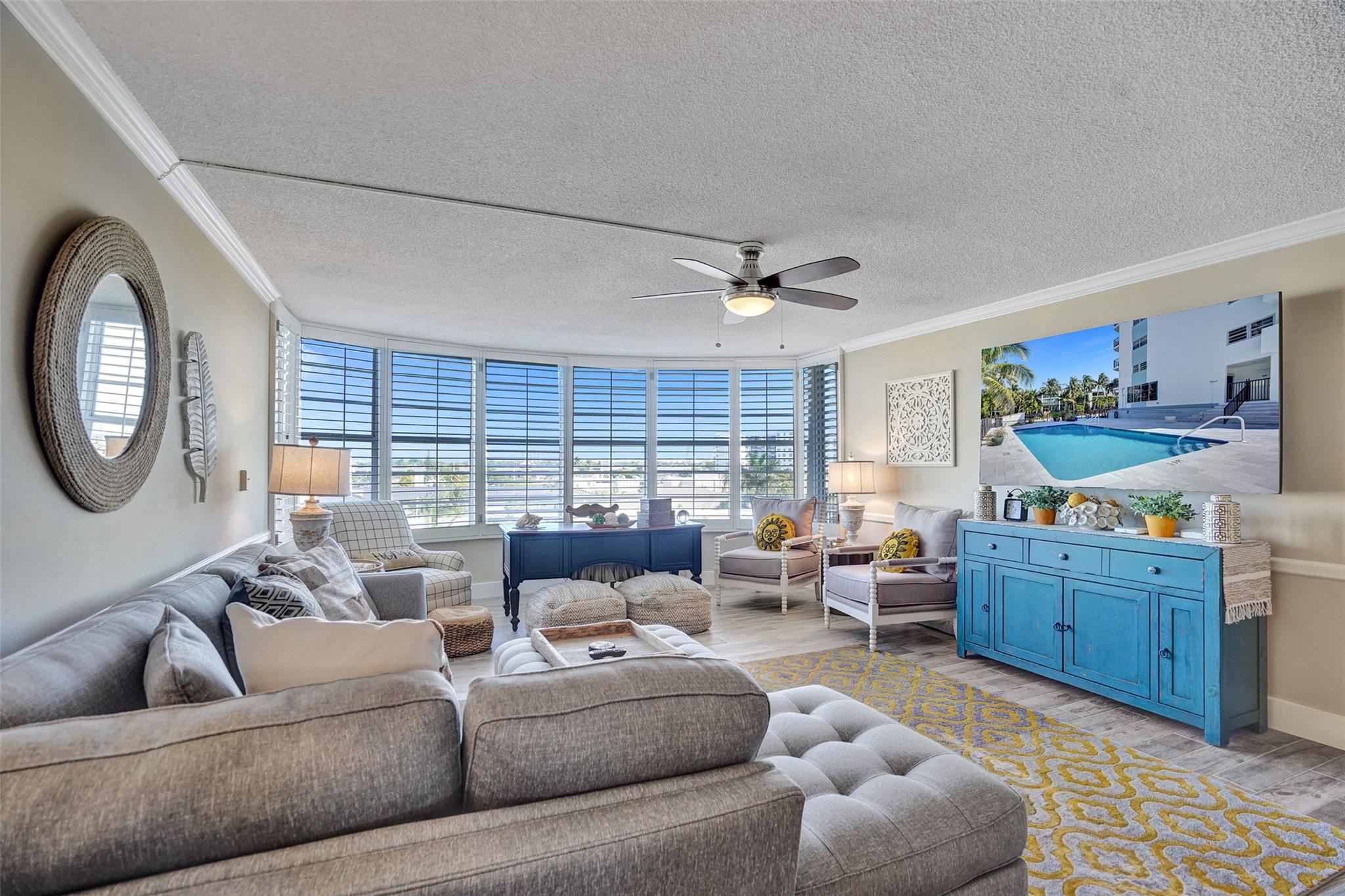 Stunning, luxurious waterfront living in this 2BR/2BA condo with 1450 SF of modern space. This turn-key unit features a renovated kitchen with granite countertops, stainless steel appliances, and custom cabinetry. New elegant plank ceramic floors, new hurricane compliant windows/doors, plantation shutters, and newly painted! Spacious master and second bedroom feature large walk in closets. Washer/dryer in unit! One parking space in the covered garage. The secure building finished its concrete restoration and almost everything is new, including modernized elevators, new dock, new roof, seawall updates, and a heated pool that gets sun-all day. Pet-friendly and just steps from top dining, shopping, nightlife, and minutes from Lauderdale- by-the-Sea Beach. Low HOA’s. Parking space 41