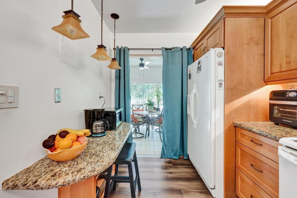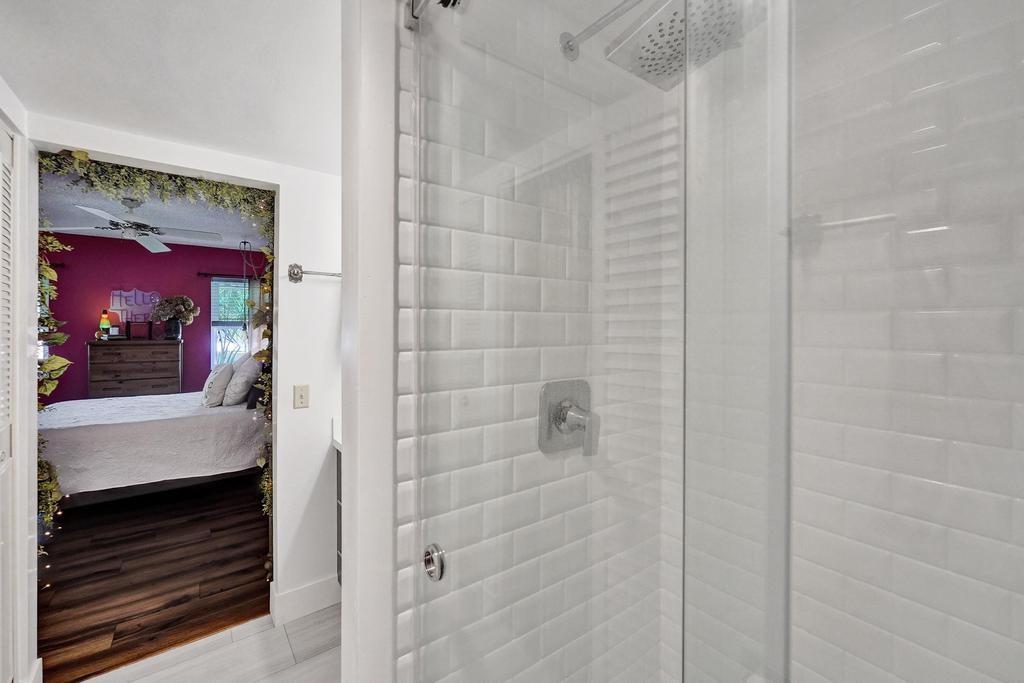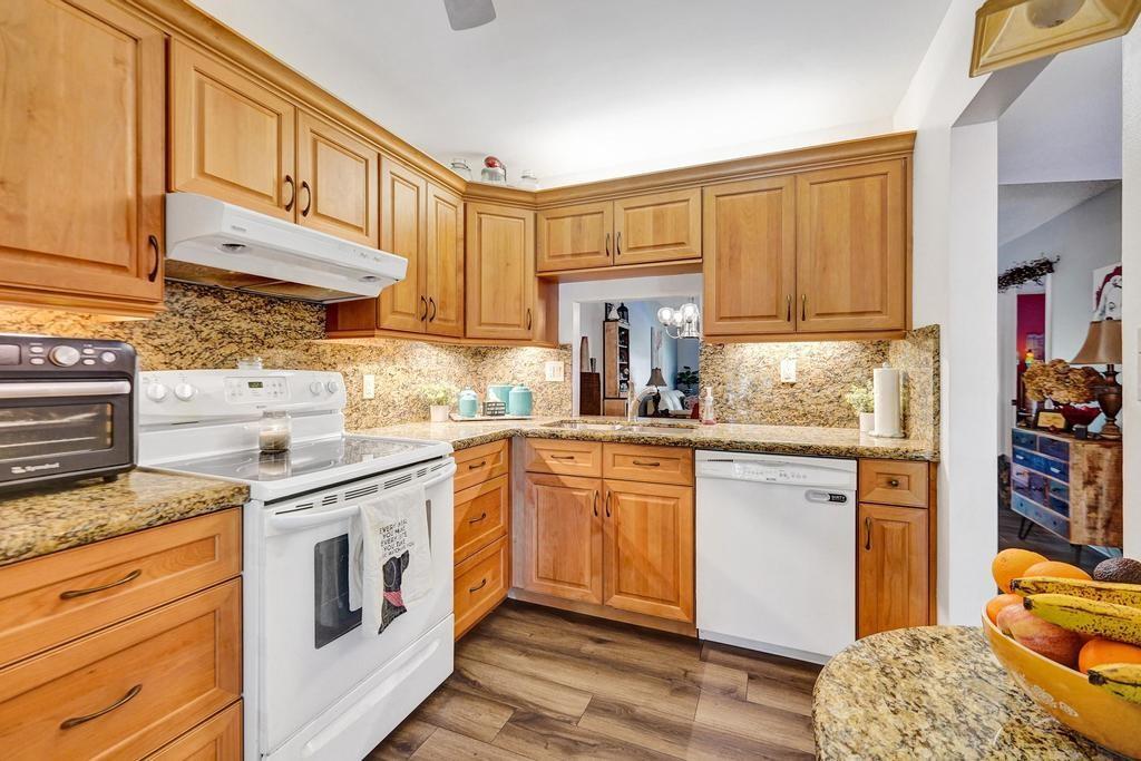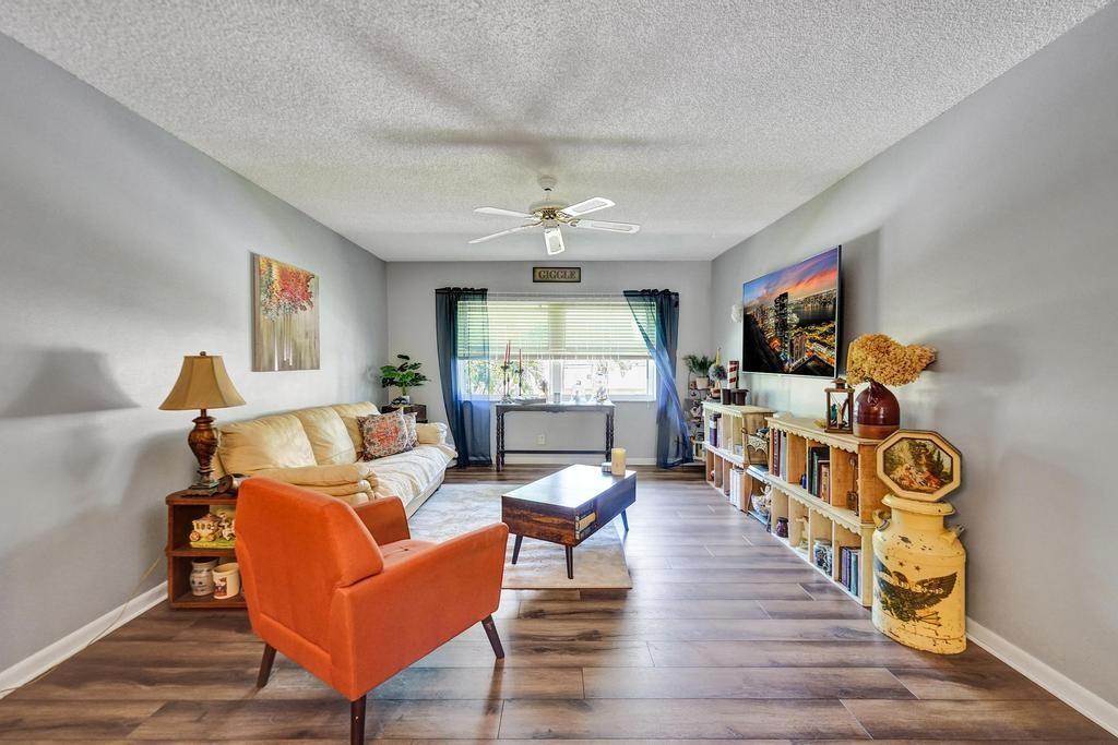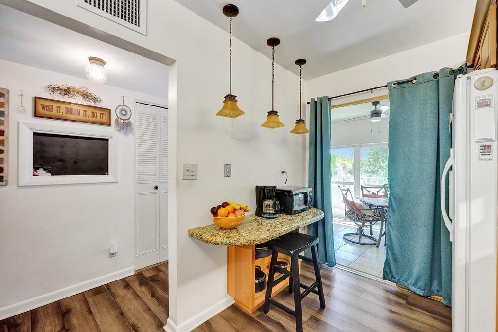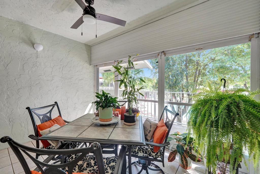 Nicely updated unit in quiet, smaller 2-story complex. Impact windows and shuttered sliding doors lead to a quiet front patio with all-day shade. Great north AND south exposure. Low fees and great common areas add to the easy-living style of the complex. Laminate floors with a modernized kitchen and other great features. Large primary bedroom with walk-in closet and nicely decorated bath. 2nd bedroom with private bath. Only a few steps from the covered, reserved parking spot. All inspections completed and a BRAND-NEW roof. Newly done pool and deck limit further future assessments. Upstairs unit for quiet and privacy. Possible Seller financing available.