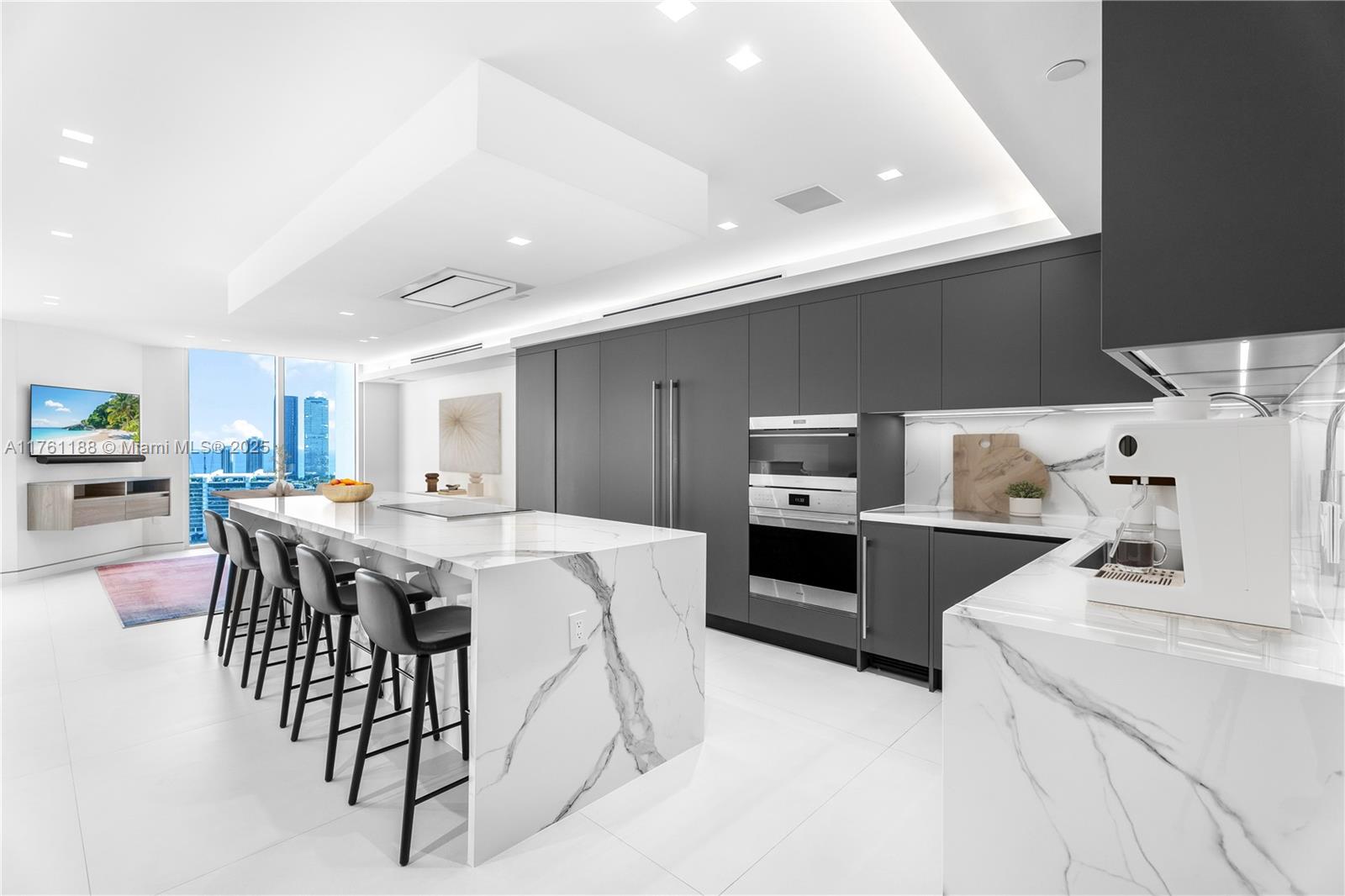 This newly renovated 4-bedroom, 4.5-bathroom + den flow-through residence at Peninsula Two offers luxury living on the penthouse floor, with unobstructed Intracoastal and ocean views from the expansive balcony. Designed with custom Egger millwork and Italian porcelain flooring, the home features an Italkraft Grigio Bromo kitchen with Fenix finishes, plus Wolf and Sub-Zero appliances. The master suite includes a private balcony, porcelain slab finishes, custom Italkraft cabinetry, his-and-her bathrooms, and bespoke closets. Crafted by a top New York developer, this residence includes 5-star amenities such as valet service, three parking spaces, two pools, two gyms, a hot tub, sauna, spa, BBQ area, tennis courts, a playground, Williams Island Country Club for ultimate convenience & comfort.