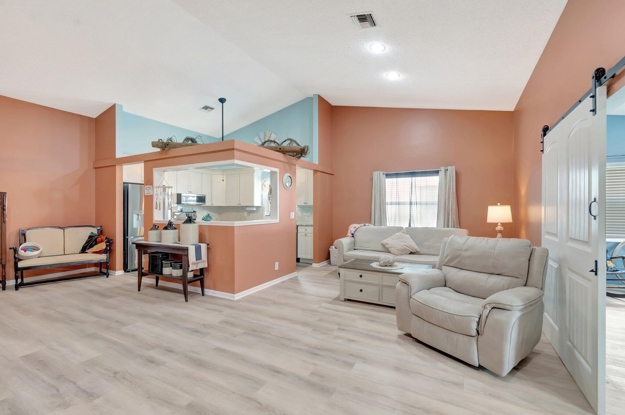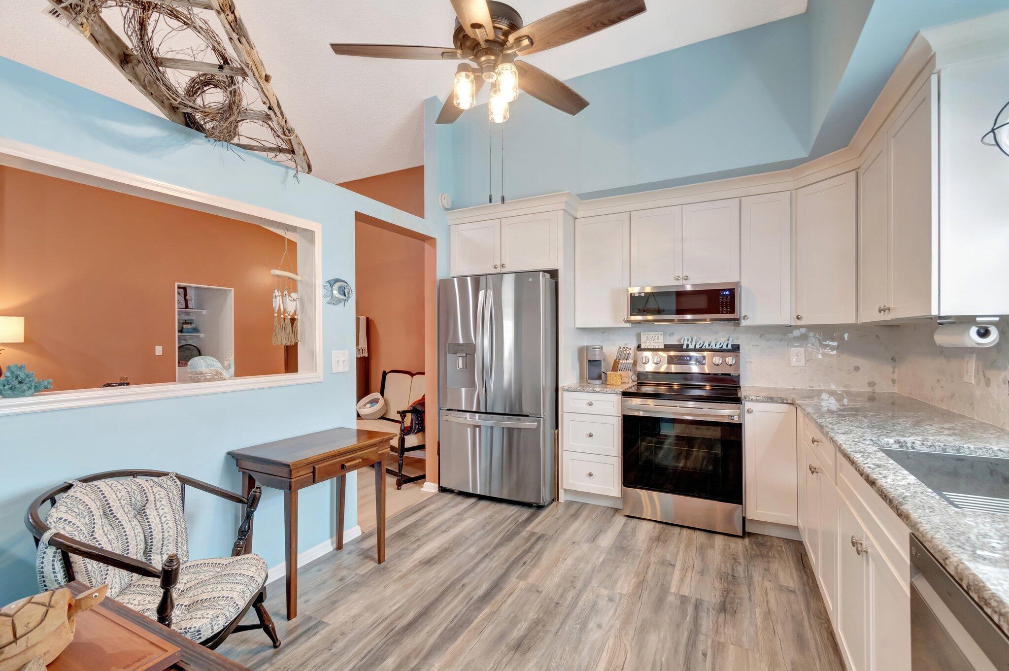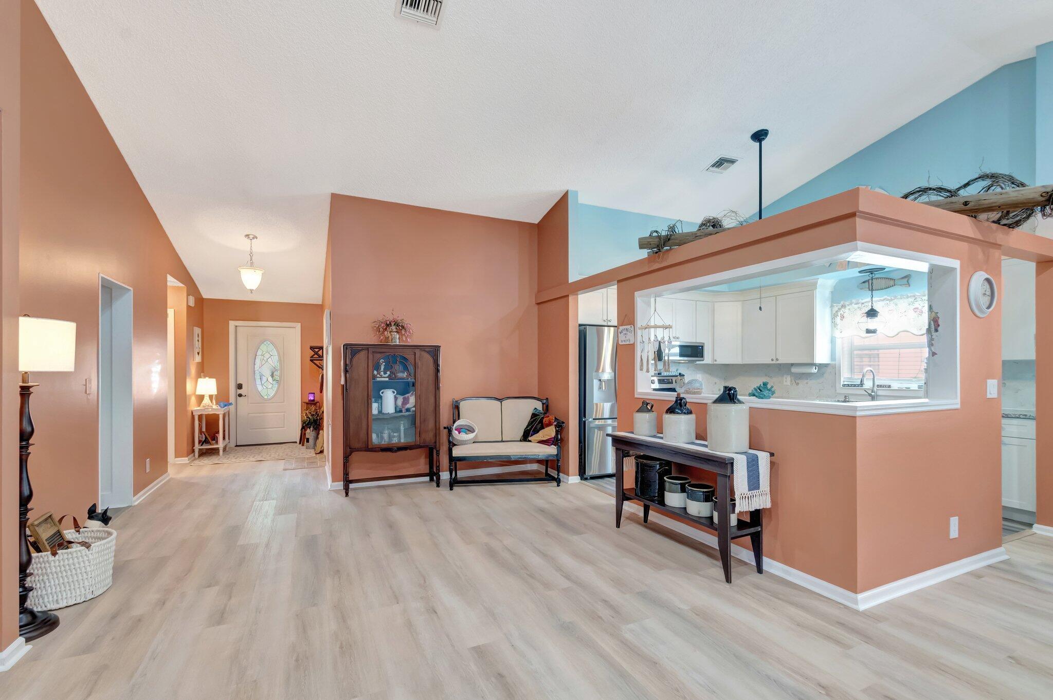 Enjoy this fully renovated 2 bedroom, 2 bathroom spacious villa with a 2 car garage. The open floor plan seamlessly blends functionality and style. Off the living area is the den office that connects to the enclosed patio. The bedrooms are situated in a split floor plan style. Off the primary suite is an enclosed patio that also connects to the den/office area. Impact windows, front door and garage door. Porch panels and windows are not hurricane rated.Air Conditioning is 2019. Washer & Dryer are 2024. Cypress Lakes is an Active Adult Community featuring an 18-hole golf course, swimming pool, athletic courts, fitness center, clubhouse and scenic lakes. One pet, 20 pounds or less permitted.