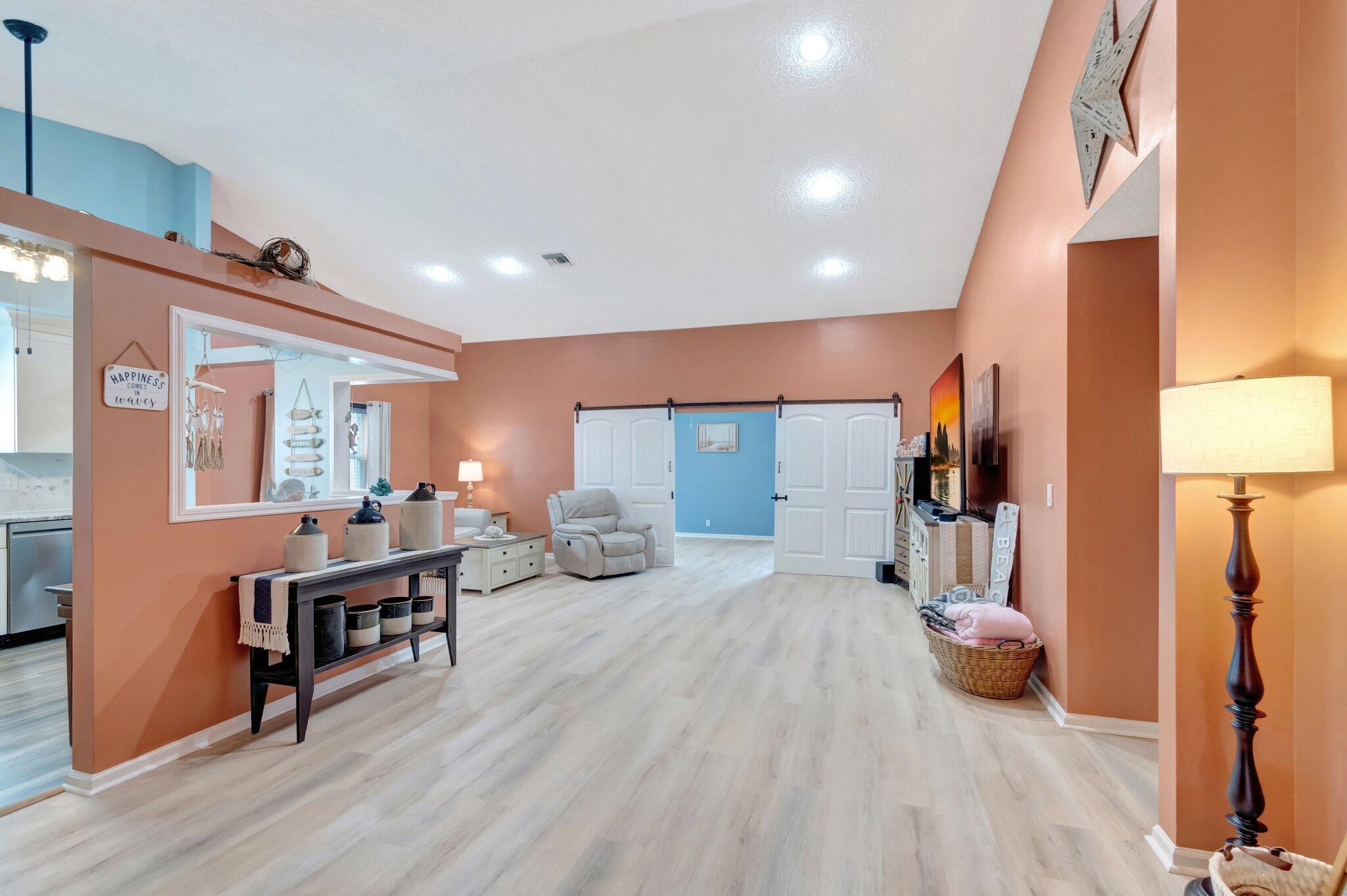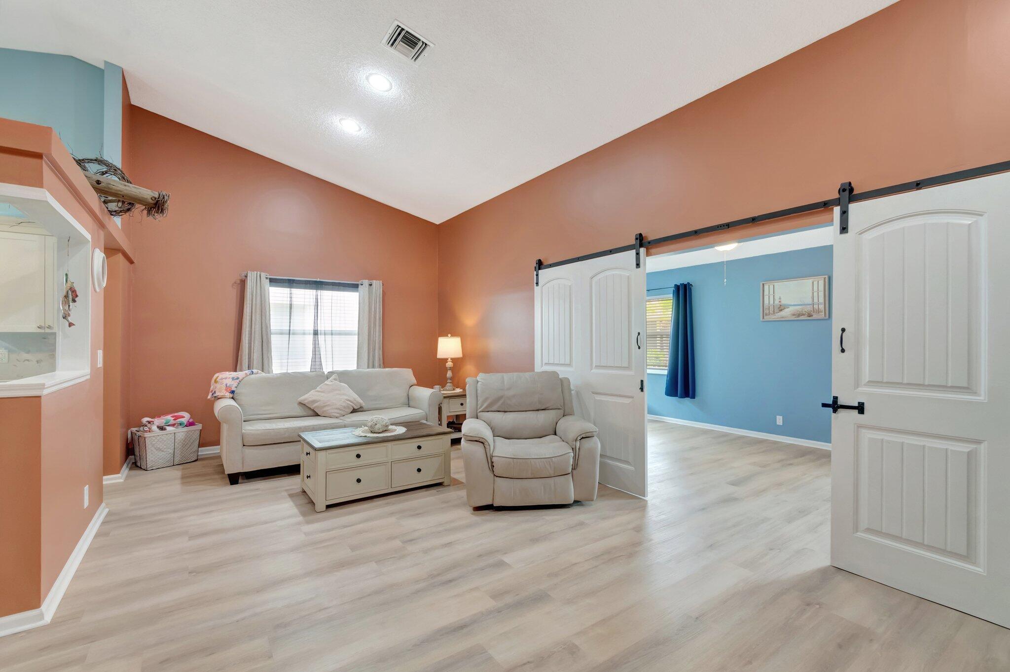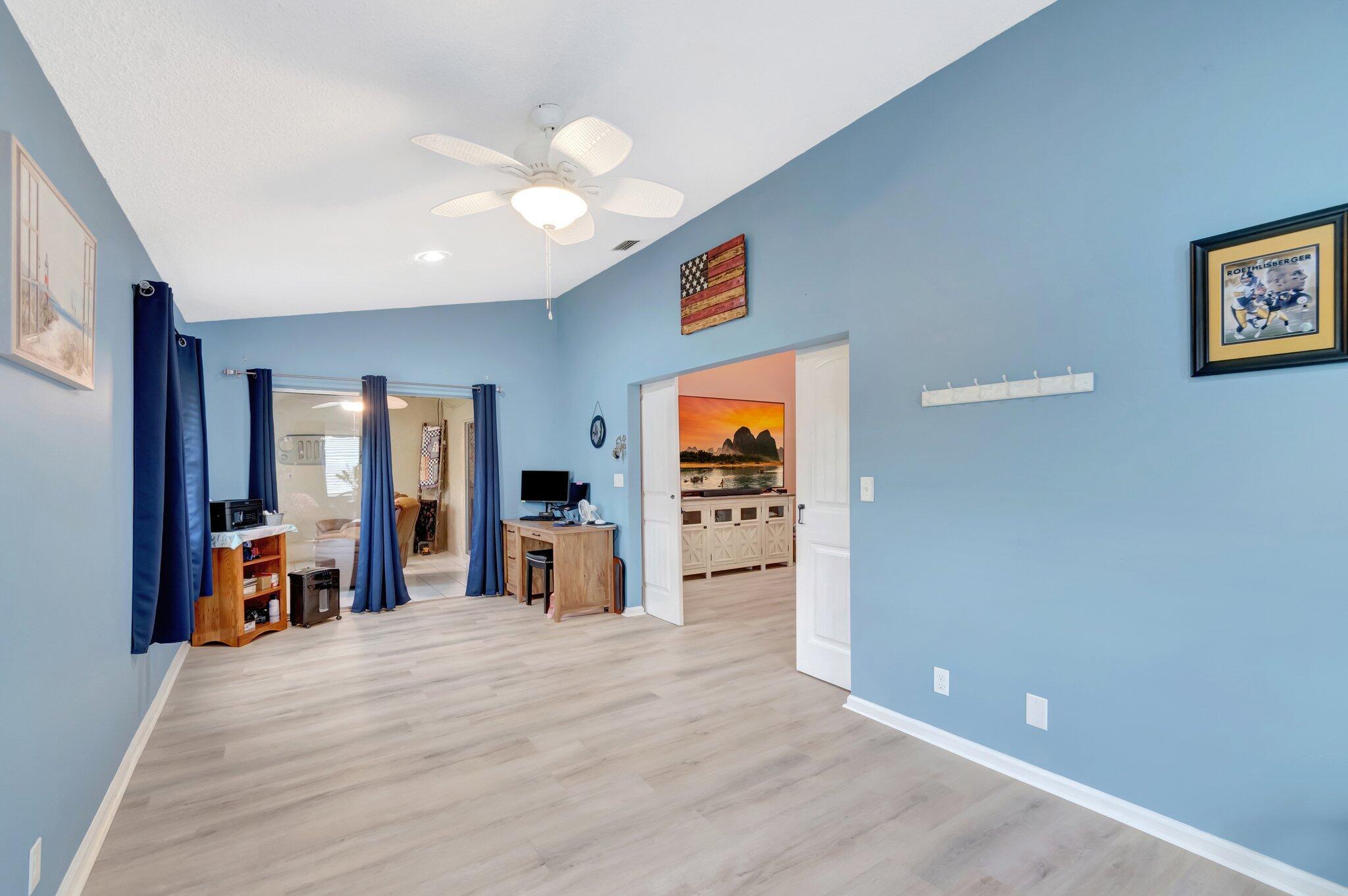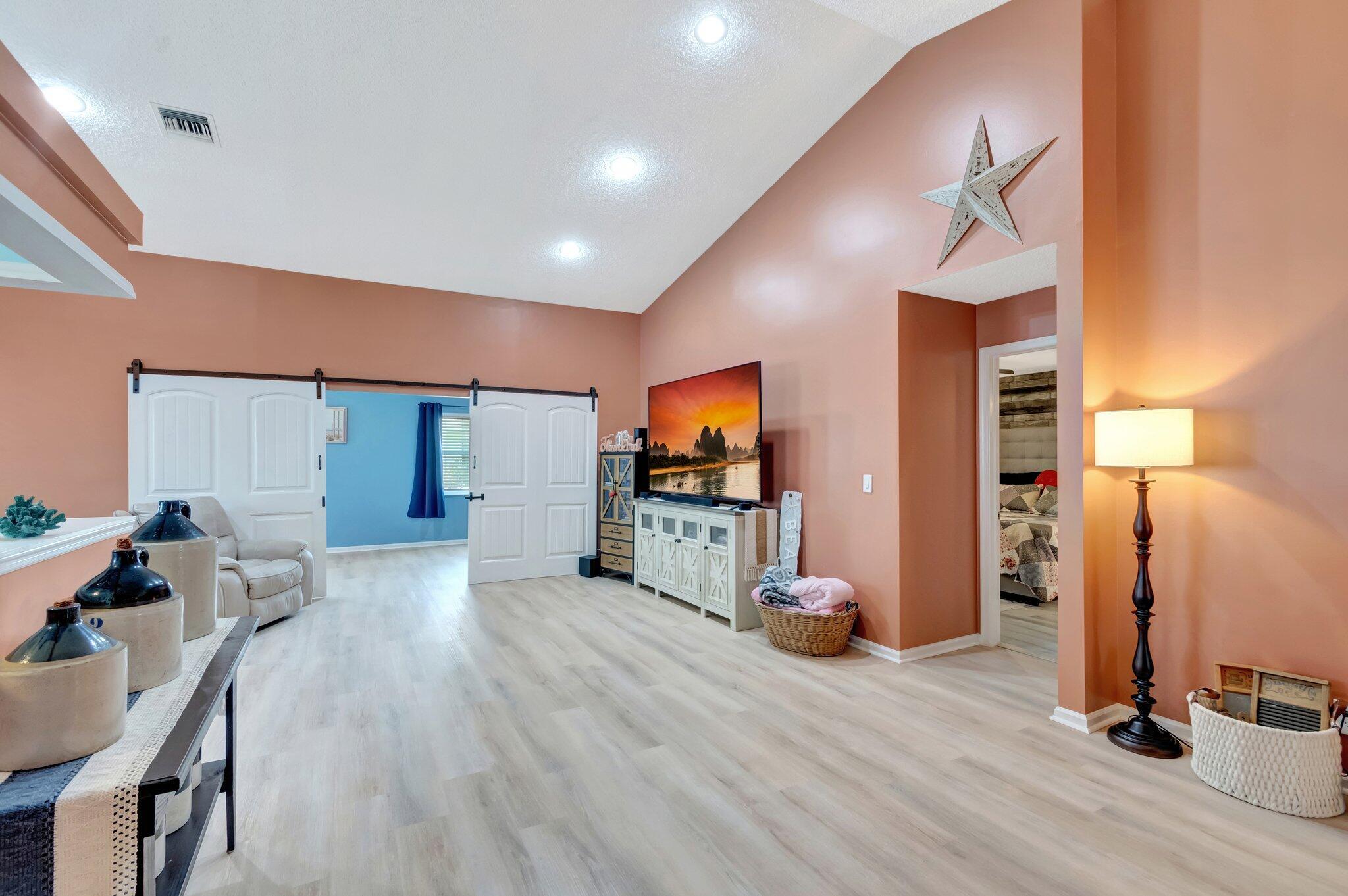 Enjoy this fully renovated 2 bedroom, 2 bathroom spacious villa with a 2 car garage. The open floor plan seamlessly blends functionality and style. Off the living area is the den office that connects to the enclosed patio. The bedrooms are situated in a split floor plan style. Off the primary suite is an enclosed patio that also connects to the den/office area. Impact windows, front door and garage door. Porch panels and windows are not hurricane rated.Air Conditioning is 2019. Washer & Dryer are 2024. Cypress Lakes is an Active Adult Community featuring an 18-hole golf course, swimming pool, athletic courts, fitness center, clubhouse and scenic lakes. One pet, 20 pounds or less permitted.