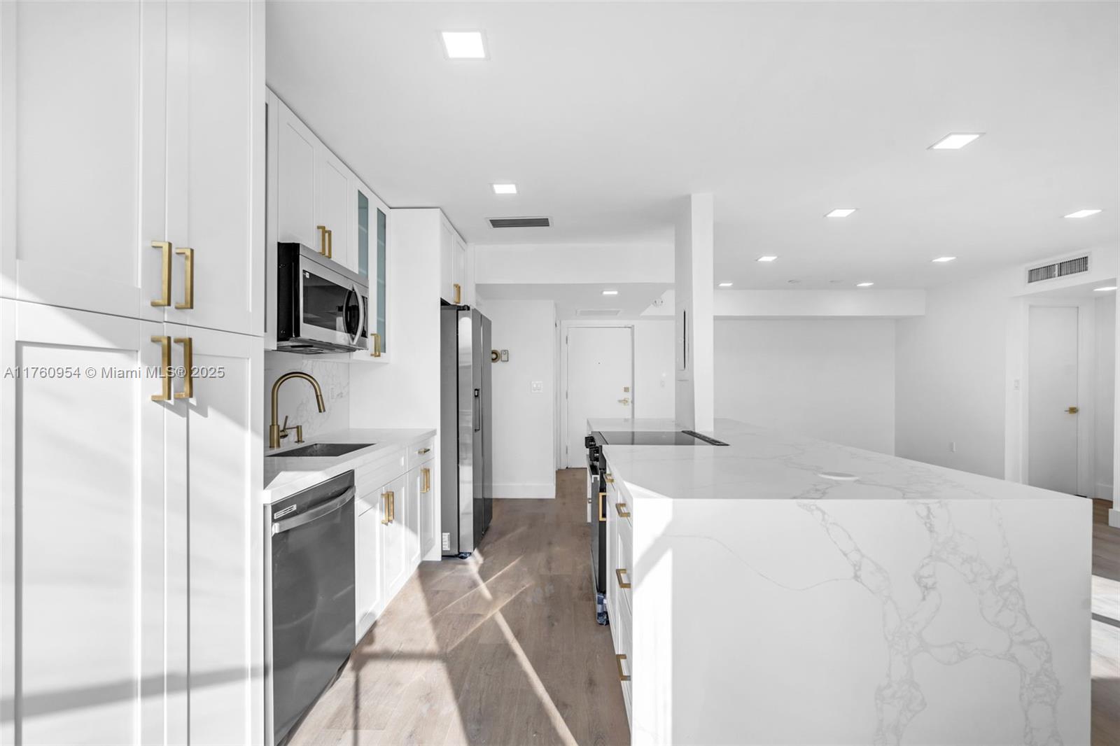 Welcome to the wonderful City of Sunny Isles at the Avila condominium. This 2 bedroom 2 bathroom beautiful masterpiece was completely renovated with nothing spared. Quartz countertops, stainless steel appliances with brass finishes. This condo has an earthy cozy home feeling waiting for you to call it home.