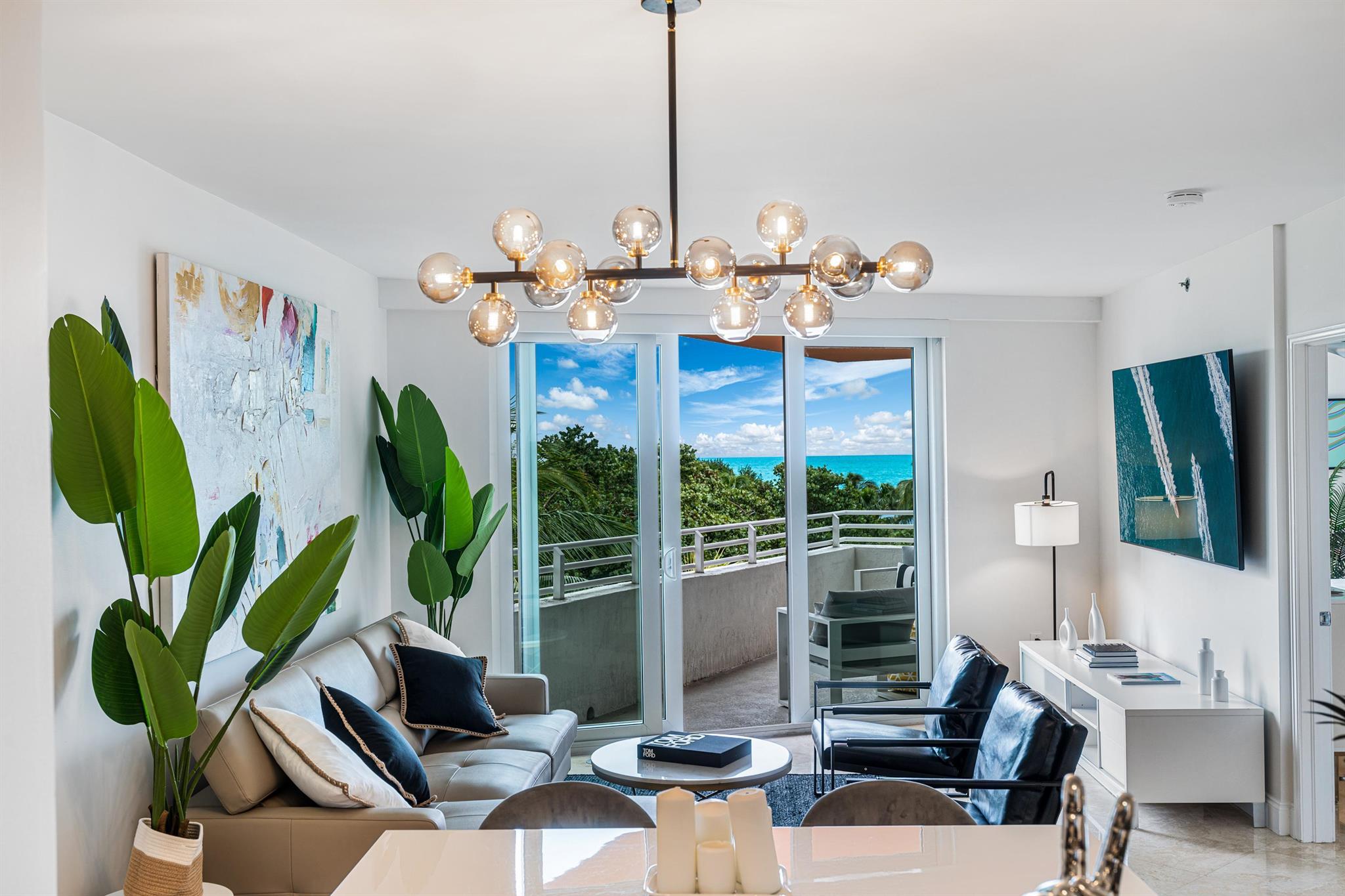 Amazing Oceanfront Condo in the Exclusive South of Fifth District! Immerse yourself in the epitome of Miami Beach luxury within one of the world's most sought-after neighborhoods, conveniently located just across from Marjorie Stoneman Douglas Park. This isn't just a residence; it's a lifestyle. Step into this 1-bedroom, 2-bathroom condo with a versatile extra room suitable for a den or office, doubling as a potential second sleeping area. The unit features a new refrigerator and washer and dryer, along with electric shades. The furniture can be included in the sale.
