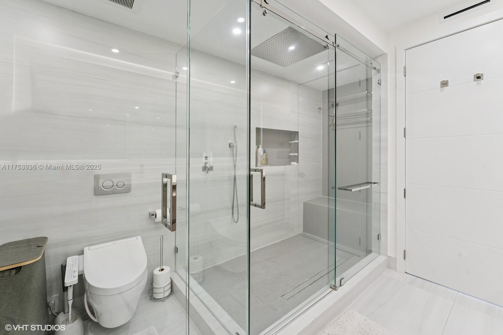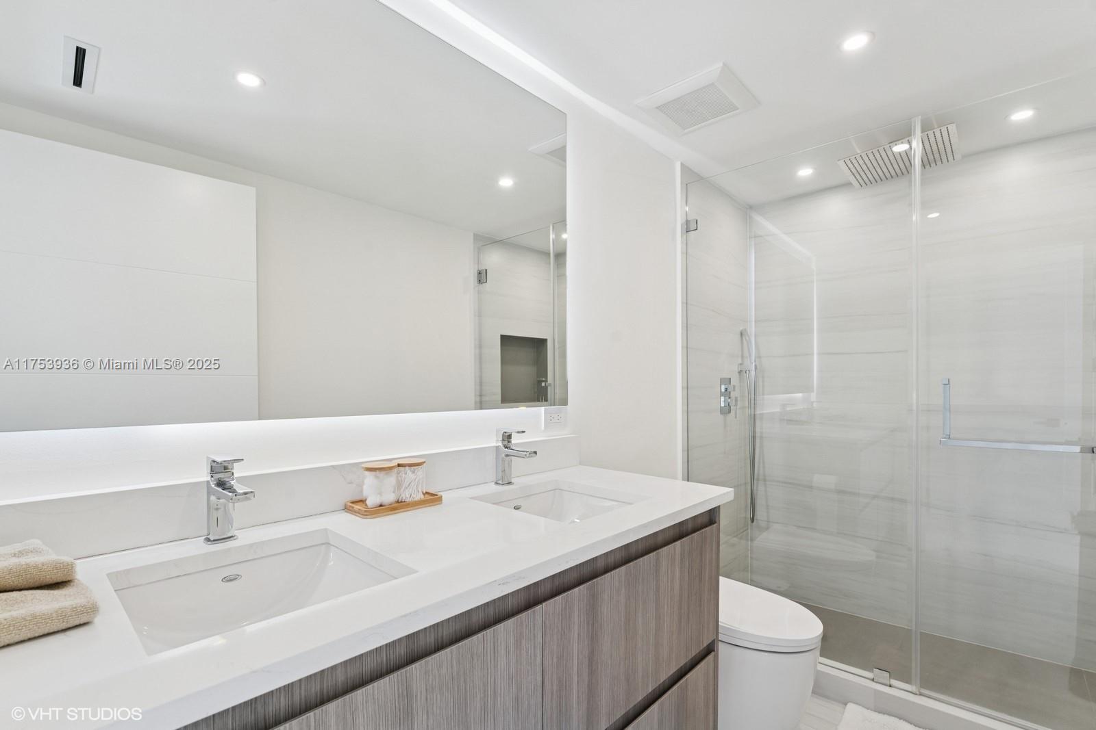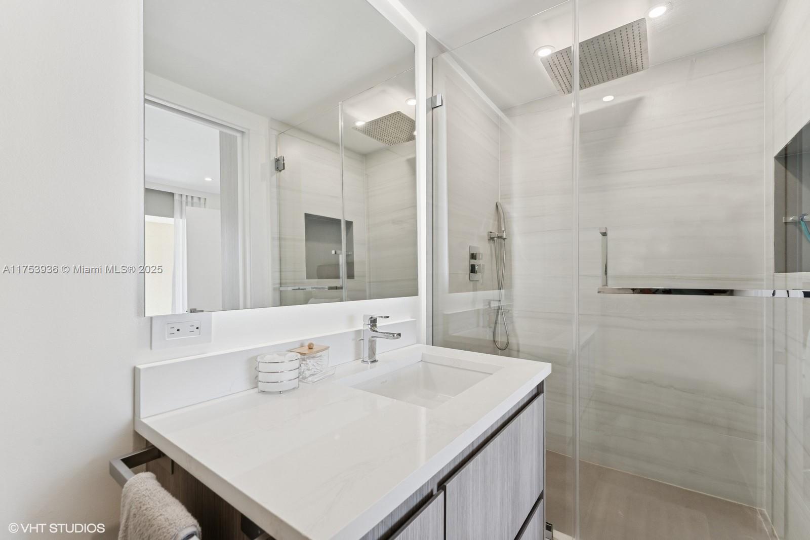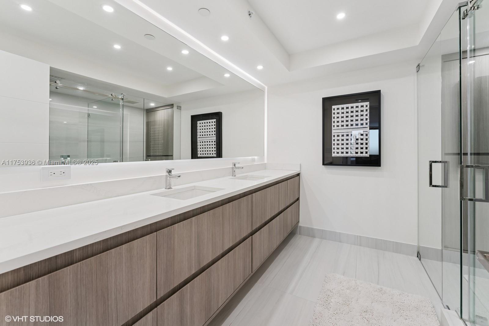 Lake Tower best unit. Just tastefully renovated, 3 beds 3,5 bath, move in ready, no money to spare. Private foyer and elevator. Extra-large porcelain floors. Top of the line renovation, appliances and fixtures. Over 2600 sqft with see through views, from 2 extra-large balconies, lake and greenage views. 3 suites with a powder room, and spacious laundry area w/ full size W/D. Open kitchen with breakfast counter for 4 with quartz countertop, SS monogram and Bosch appliances. Custom cabinetry and paneling throughout the unit. Electric blinds, in all rooms, redone electric system, w/ recess LED lights in all rooms. 2 assigned parking spaces & 1 storage. Lake Tower offers resort style amenities. Valet, concierge, security, gym, party room, pool, plus all Ocean club amenities, beach access.